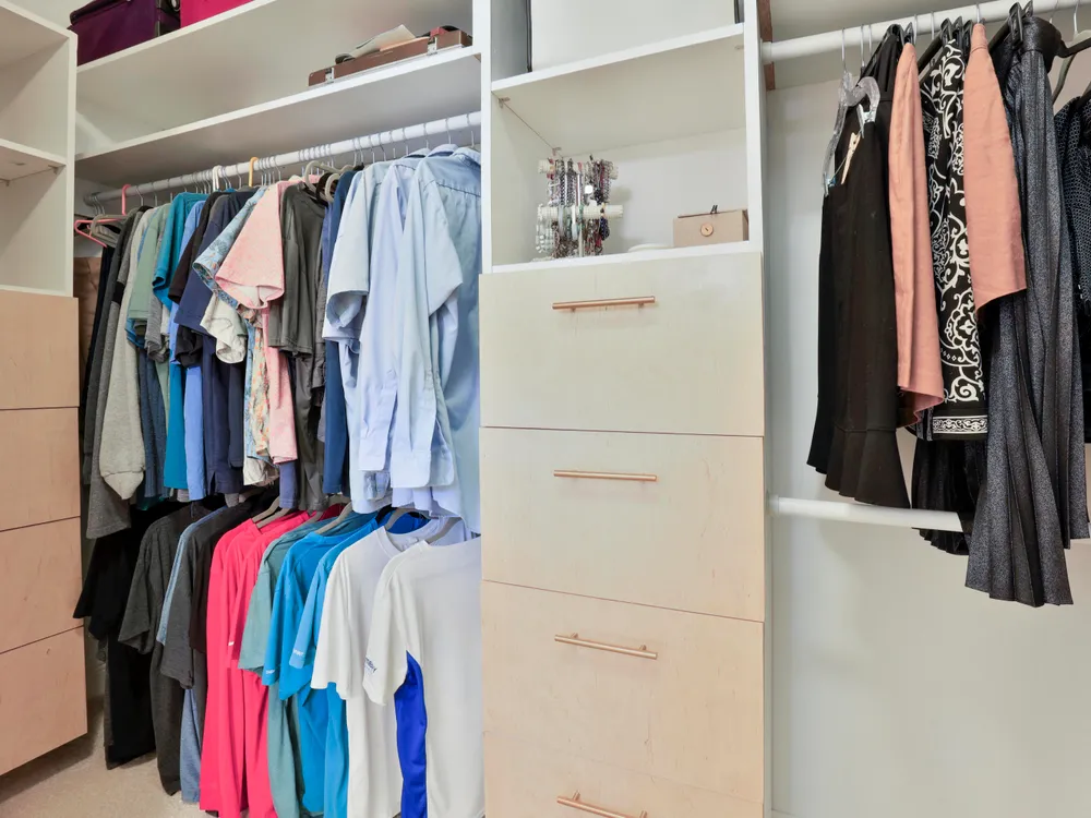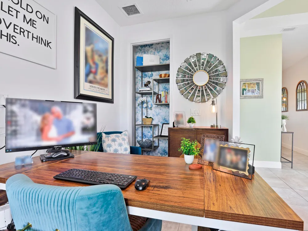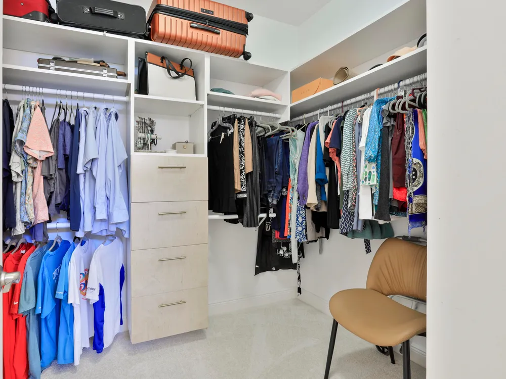 - Built-in Shelving, Closet Cabinetry, Entry Level Living Area, Kitchen Island, Pantry, Split Bedrooms, Walk-In Closet(s), Home Office, Family Room, Florida Room, Dual Sinks, Primary Downstairs