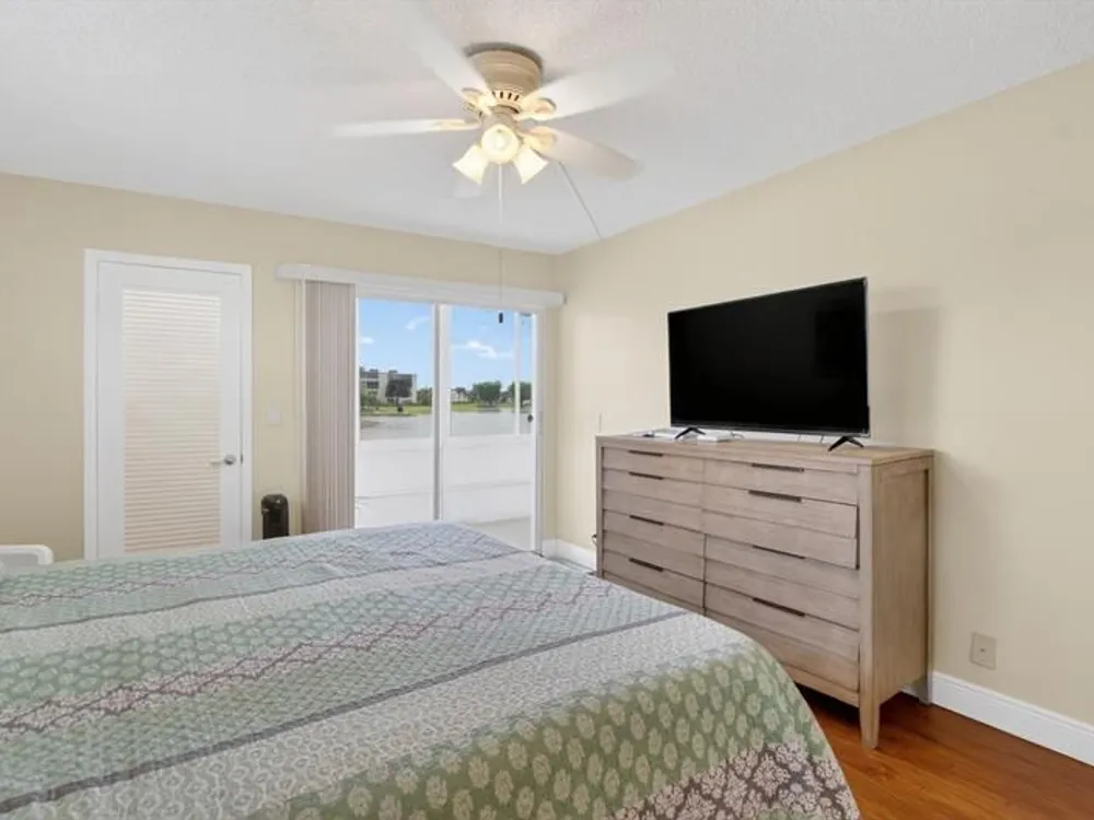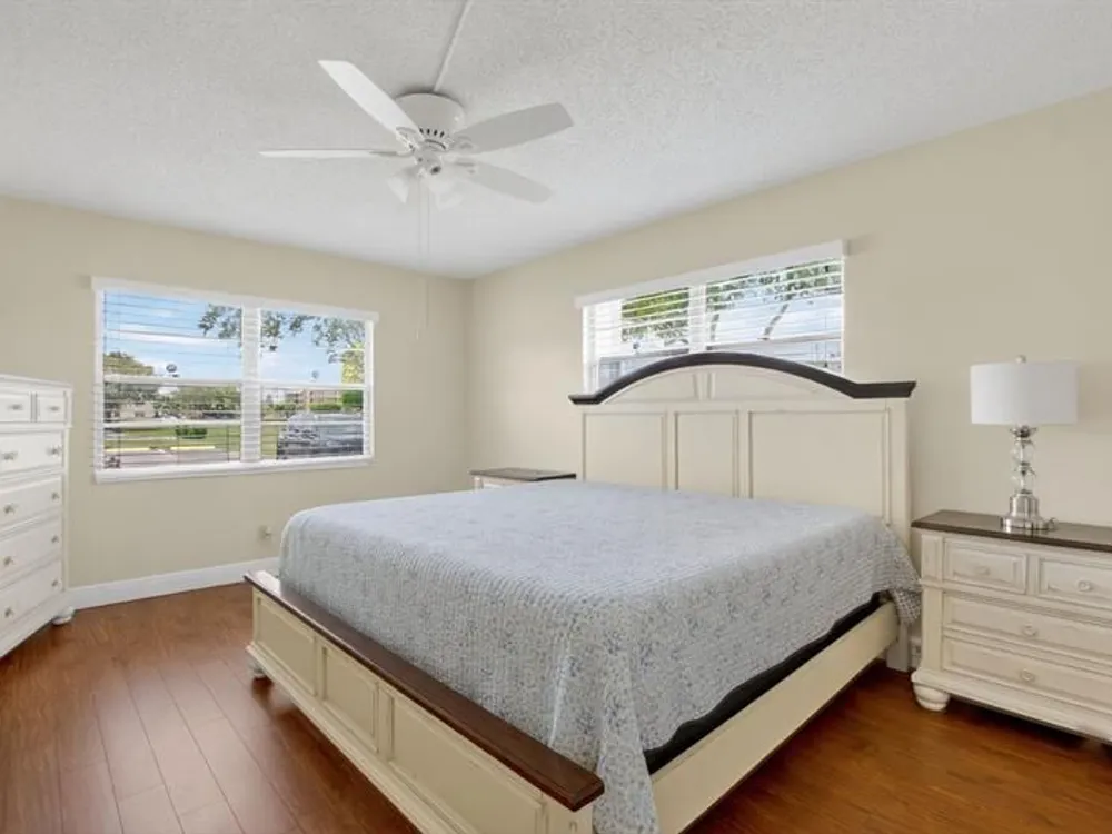 Largest corner unit in Century Village on the first floor, Lake View, 2/2 Tile floors, impact windows, screened patio + storage. Furniture is included in the Sale.HOA incl cable, internet, water, shuttle. Amenities: pool, gym, pickleball, clubhouse w/ activities & live entertainment. 1 assigned + plenty guest parking. HOA total (sub & master): $870.97/month. Seller is motivated—bring all offers!