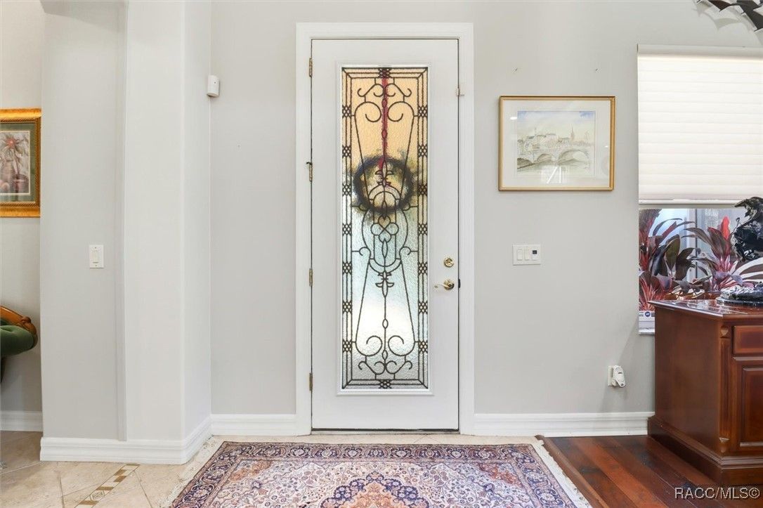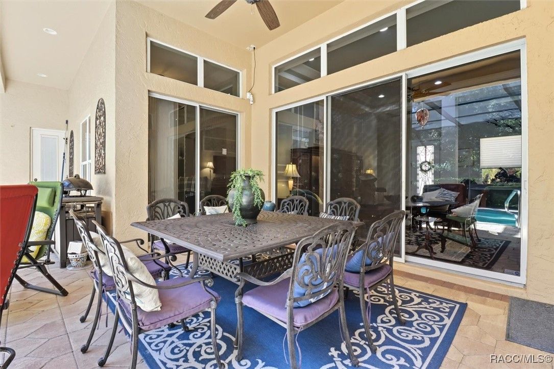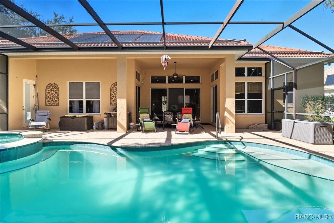 Welcome to your modern courtyard sanctuary nestled in the heart of Terra Vista—one of Florida’s most coveted gated communities. This exquisite 3-bedroom, 3.5-bath residence is a masterclass in elegance and thoughtful design, offering a lifestyle of serenity, sophistication, and resort-style amenities. Step through the grand entrance into a home that wraps gracefully around a tranquil garden courtyard, ensuring privacy and a seamless indoor-outdoor flow. The unique layout includes a fully appointed guest suite with its own entrance, perfect for hosting visitors or accommodating multi-generational living with comfort and discretion. At the heart of the home, a gourmet kitchen awaits, outfitted with high-end finishes and fixtures that speak to refined taste and culinary ambition. The expansive primary suite features a peaceful sitting area overlooking the expansive pool lanai—your personal retreat for morning coffee or evening reflection. Out back, a luxurious screened-in lanai frames the sparkling heated pool and spa, inviting you to entertain or unwind in true Florida style. And for added peace of mind, a secured safe room is discreetly accessible through the garage, offering protection without compromising design. Located within Terra Vista, residents enjoy maintenance-free living, access to a full-service spa, state-of-the-art fitness center, championship golf, tennis courts, scenic walking trails, and more—an unparalleled blend of leisure and luxury.