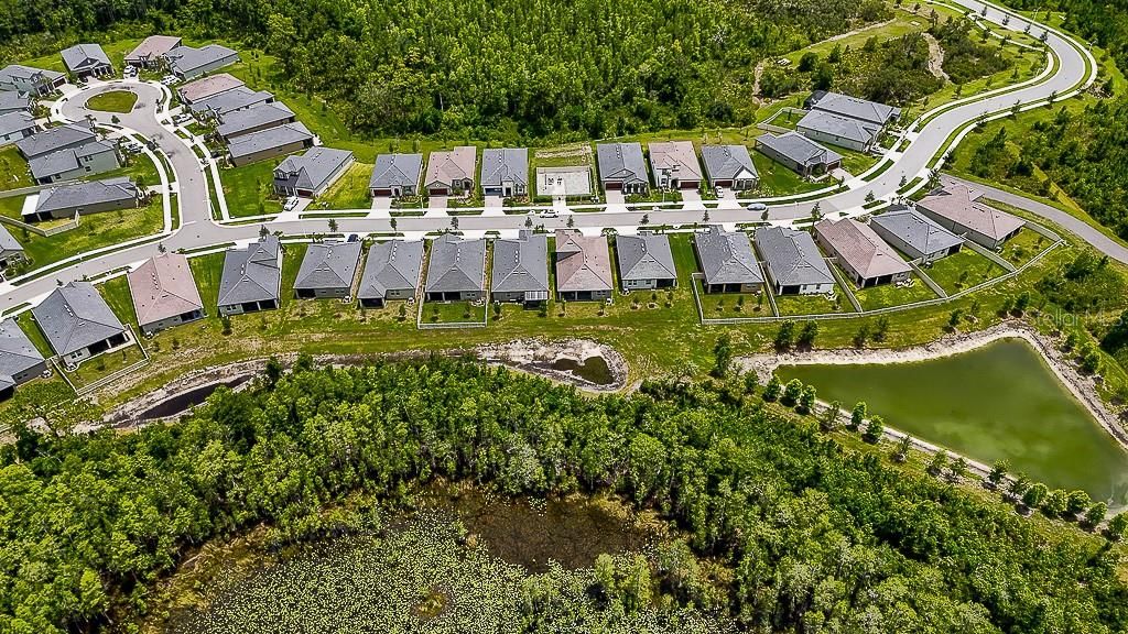 Closer to the Fun in Phase One! Better Than New w/Over $36,000 in Upgrades this home has 2,366 sq. ft. home offering a triple split plan w/3 bedrooms & 3 full bathrooms, bonus rooms on 1st and 2nd floor, and 3-car tandem garage. Over $36,000 in owner upgrades make this home truly better than new! Exterior highlights include no rear neighbors, home backs up to CDD owned wooded land & ponds, paver driveway, wood look garage door, tile roof, designer accents & trim, designer landscaping, covered paver entryway w/can lighting, 19x14 rear screened in patio w/side privacy & fan prewire, fences are allowed. Interior highlights include double pane impact windows, crown molding in the main living areas & owner’s suite, & lots of stone look plank tile! The owner added the following items since building: automated blackout shades in owner’s retreat, family room, & breakfast nook windows; whole house water softener; & alarm system. There are cabinets in the laundry room and crown molding downstairs. Kitchen highlights include island w/sink, lots of storage, & power; closet pantry for added convenience & storage; staggered 42” upper cabinets w/undercabinet lighting; quartz countertops; brushed nickel pulls; can lighting; crown molding; eating area large enough for a grand table so the flex space can be dedicated to another purpose. The owner added the following items since building: kitchen backsplash, BRAND NEW FULL SUITE OF KITCHENAID APPLIANCES! Livingroom highlights include can lighting, crown molding, ceiling fan, & sliders to huge rear patio & great views of the ponds & wooded area. The owner added the following items since building: four Surround sound speakers in ceiling in livingroom: Origin Acoustics Director D65 speakers are fully pivoting 2-way speakers; & additional can lighting. Owner’s retreat highlights include crown molding, can lighting, ceiling fan, & great views of the ponds & wooded area. The owner added the following items since building: additional can lighting. The bathroom highlights include large walk-in closet, quartz countertops w/dual sinks, sitting vanity, & walk in shower w/seating, a niche, brushed nickel pulls, & glass doors. Downstairs layout has foyer, welcome home center/desk, 3 car tandem garage, owner’s Suite, livingroom, bedroom 2, full guest bathroom, interior laundry room, kitchen, dining area in kitchen, office/Den/Dining Area/Flex Room, & 19x14 rear screened in patio w/side privacy & fan prewire. Upstairs layout has bedroom 3, 19x14 loft (flex space), & full bathroom. Community clubhouse highlights include an awe inspiring impact to the appearance of the neighborhood; covered portico drop off area; amazing resort style pool area w/beach style entry area, lap lanes, plenty of deck space & chairs, covered areas to avoid sun exposure; 2 full restaurant/bars – one inside & one overlooking the pool area; billiards room w/television; aerobics/fitness mirrored studio w/various equipment; huge fitness room w/advanced workout equipment; card/gaming room w/library; huge event hall w/stage; business workstations w/computers & a printer; shuffleboard; pickleball; & bocce ball. Additionally, the neighborhood is golf cart friendly & has lots of walking trails & other highlights such as plans for a future lagoon! Fees includes lawn, bushes and tree maintenance, common area maintenance, irrigation, mulch yearly, 2 GB internet, clubhouse/pool maintenance, and exterior home painting!