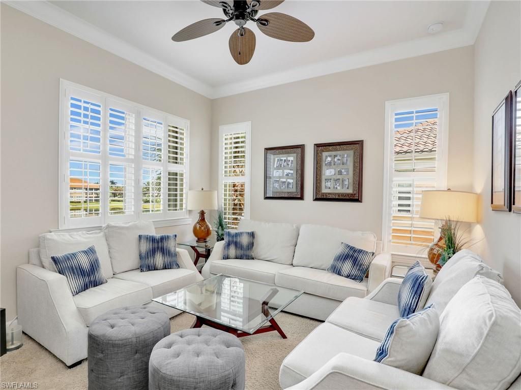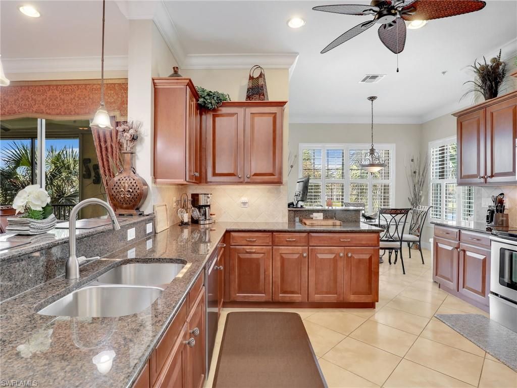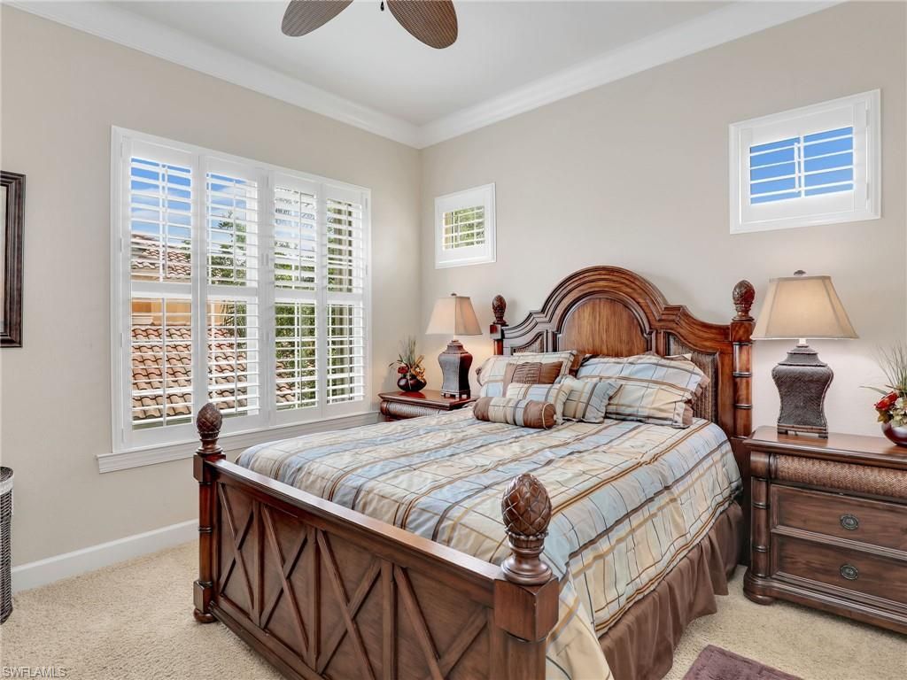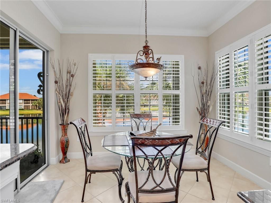 Skip the waitlist and enjoy golf membership access immediately when you purchase this home!This beautifully turnkey 4-bedroom + den, 3-bathroom second-floor condo offers the perfect blend of luxury, comfort, and convenience—including a private 2-car garage and elevator-ready access.From the moment you enter, you’ll notice the meticulous attention to detail that makes this home truly special. A graceful chandelier lights the staircase, welcoming you into an open-concept living space that includes a bright family room and an elegant formal dining area.The kitchen is both stylish and functional, featuring stainless steel appliances (dishwasher replaced in 2024), granite countertops, a decorative backsplash, and a cozy breakfast nook—perfect for your morning coffee or casual meals. Crown molding flows throughout the home, adding a refined touch to every room.The formal dining area shines under its own chandelier, while the casual dining space is bathed in natural light from large windows. The spacious primary suite is a private retreat, offering a tray ceiling, ceiling fan, lanai access, and a spa-like en-suite bath with a soaking tub, walk-in shower, and dual vanities.Your guests will love the privacy offered by two guest bedrooms, each with its own full bathroom—one even opens to a charming private balcony through French doors.Additional features include plantation shutters on every window, a new AC installed in 2022, a new water heater added in 2025, electric shutters on the front door and lanai, and accordion shutters on the side windows.Step out to the expansive screened lanai and enjoy peaceful lake views with desirable northern exposure—an ideal setting to relax and unwind.Located in the prestigious Plantation Somerset community, residents enjoy access to a Hurdzan-Fry designed golf course (with no waiting list for membership!), plus a spectacular 38,000 sq. ft. clubhouse. Resort-style amenities include a sparkling pool and spa, tennis and pickleball courts, a modern fitness center, sauna, and more.Conveniently close to I-75, this home offers quick access to top shopping, dining, and entertainment—as well as Southwest Florida International Airport.Don’t miss your chance to own this spacious, move-in-ready condo in one of Southwest Florida’s most desirable communities!