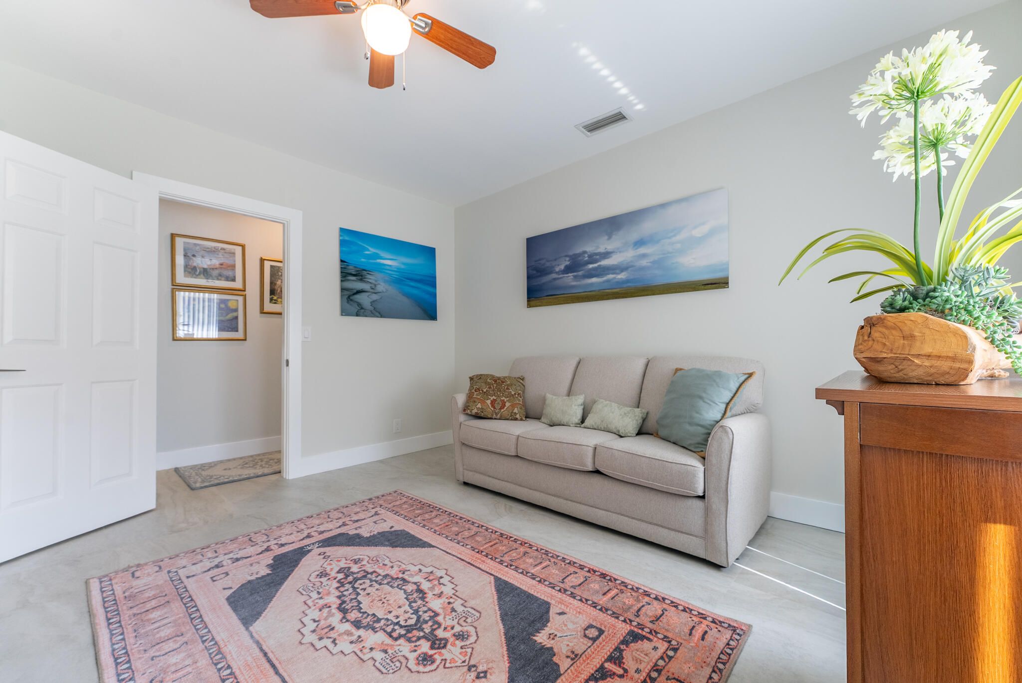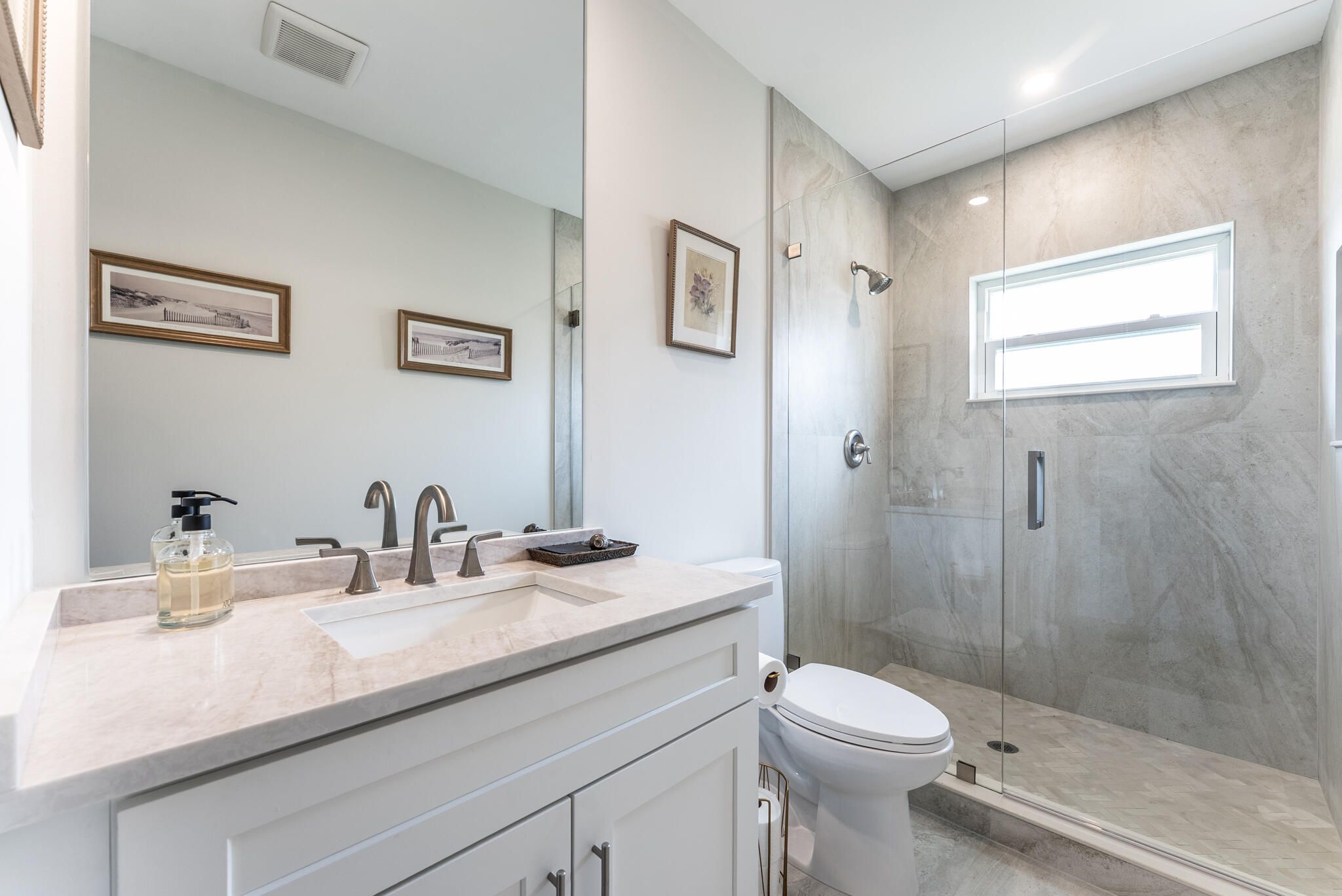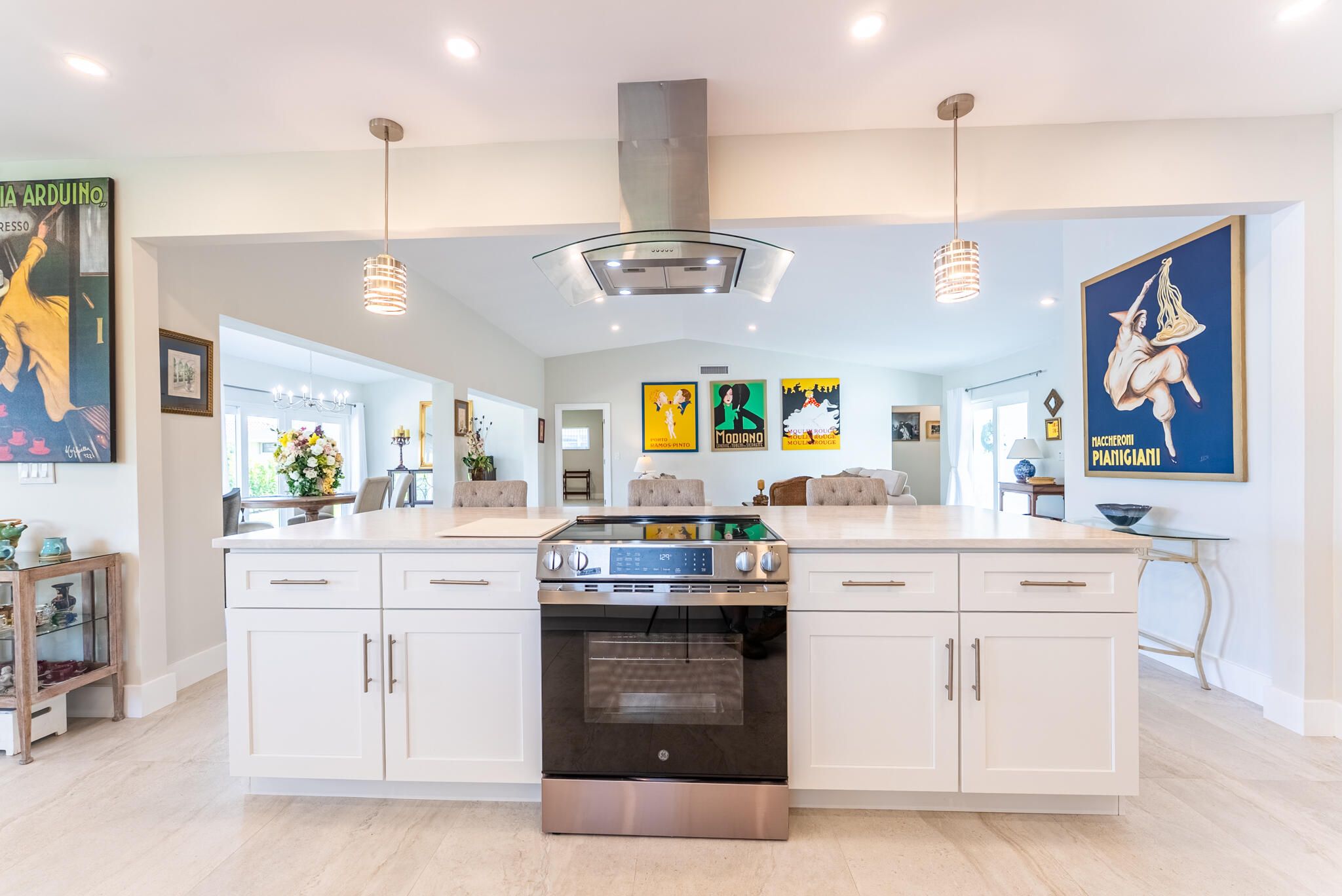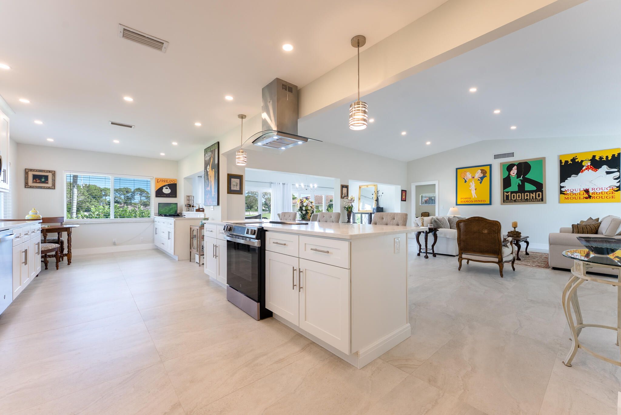 This fully reimagined single-story masterpiece has been meticulously renovated from top to bottom, offering over 2,300 square feet of sun-filled living space designed for today's refined lifestyle. From the brand-new roof and impact windows and doors throughout to the seamless open-concept layout, every detail reflects superior craftsmanship and intentional design. Elegant 24'' x 48'' porcelain tile flooring, smooth ceilings, and an abundance of natural light set the stage for a home that is as sophisticated as it is welcoming. Ideally positioned on inarguably the best lot within the entire community, this exceptional residence showcases expansive, unobstructed long lake views and breathtaking sunrise vistas. The open living and dining areas are framed by water views, creating an effortles flow ideal for both intimate evenings and large gatherings. The gourmet kitchen is a true centerpiece, featuring solid wood white shaker cabinetry, gleaming Quartz countertops, a statement island with decorative hood, GE smudge-proof stainless steel appliances, and designer LED and pendant lighting. The grand primary suite offers two walk-in closets and a spa-inspired bath with custom vanity, Quartz counters, frameless glass shower, and elegant tile work. A split-bedroom layout provides privacy with two additional bedrooms and a beautifully renovated guest bath. Additional highlights include all-new fans and fixtures, interior and closet doors, tankless water heater, hurricane-rated garage door, and impact sliders opening to beautiful, tropical landscaping and overlooking the tranquil lake. Located in a highly desirable East Boynton 55+ community with low HOA fees, pool, tennis, pickleball, and close proximity to shopping, dining, highways, and South Florida's best beaches.
