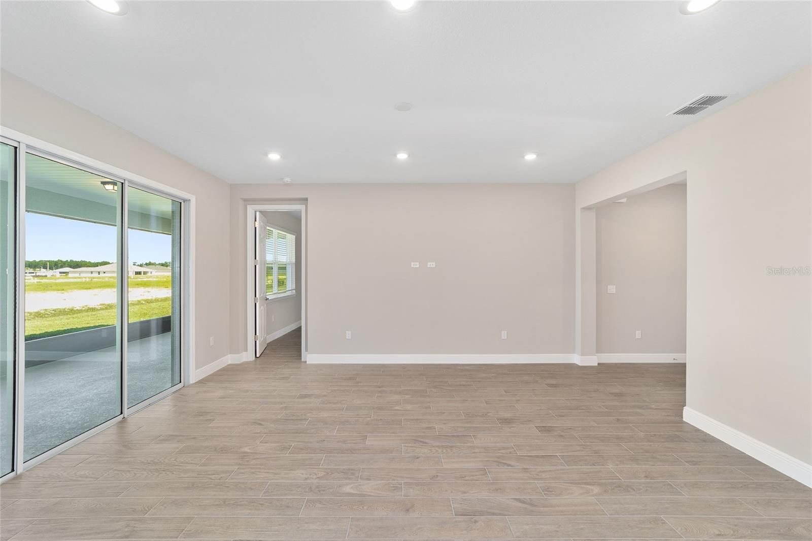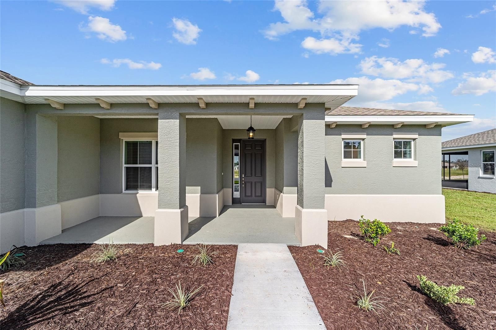 Welcome to the Livingston Model, a beautifully designed new construction home in LongLeaf Ridge at On Top of the World, Ocala’s premier 55+ active adult community. This thoughtfully planned home offers 2 bedrooms, 2 bathrooms, an oversized 2-car garage with separate golf cart parking, and a versatile open flex space—perfect for a home office or hobby area. Tile flooring extends throughout the home, combining elegance with easy maintenance. At the heart of the home, the gourmet kitchen features stainless steel appliances, rich brown cabinetry with crown molding, quartz countertops, elegant backsplash, under-cabinet lighting, a pantry, and a spacious island, ideal for both meal prep and entertaining. The dining area, highlighted by a chandelier and backyard views, flows seamlessly into the open living space. From the living area, a 3-panel sliding door opens to the screened lanai, creating a perfect indoor-outdoor lifestyle. The primary suite is a serene retreat with two windows overlooking the backyard, a large walk-in closet, and a spa-like en suite complete with double vanity sinks, quartz counters, tiled flooring, and a zero-entry tiled shower with built-in bench. The guest bedroom is conveniently located near the full guest bathroom, which features a single quartz vanity and a tiled tub/shower combination. With elegant finishes, tile flooring throughout, an open design, and access to world-class amenities in a gated, golf cart-friendly community, the Livingston model offers the perfect blend of comfort and style. Schedule your private showing today and experience why so many choose to call On Top of the World home!