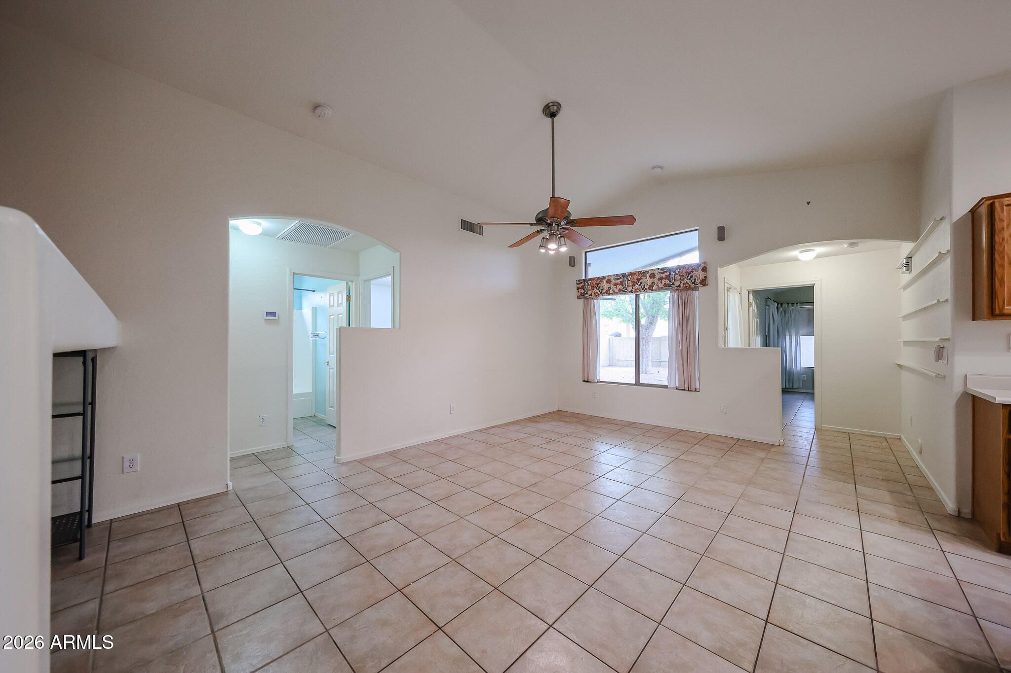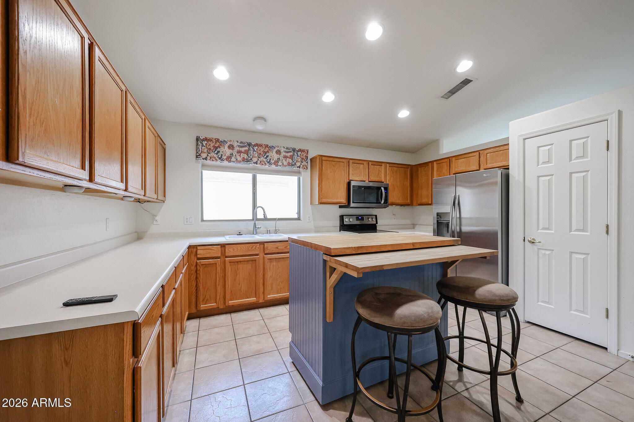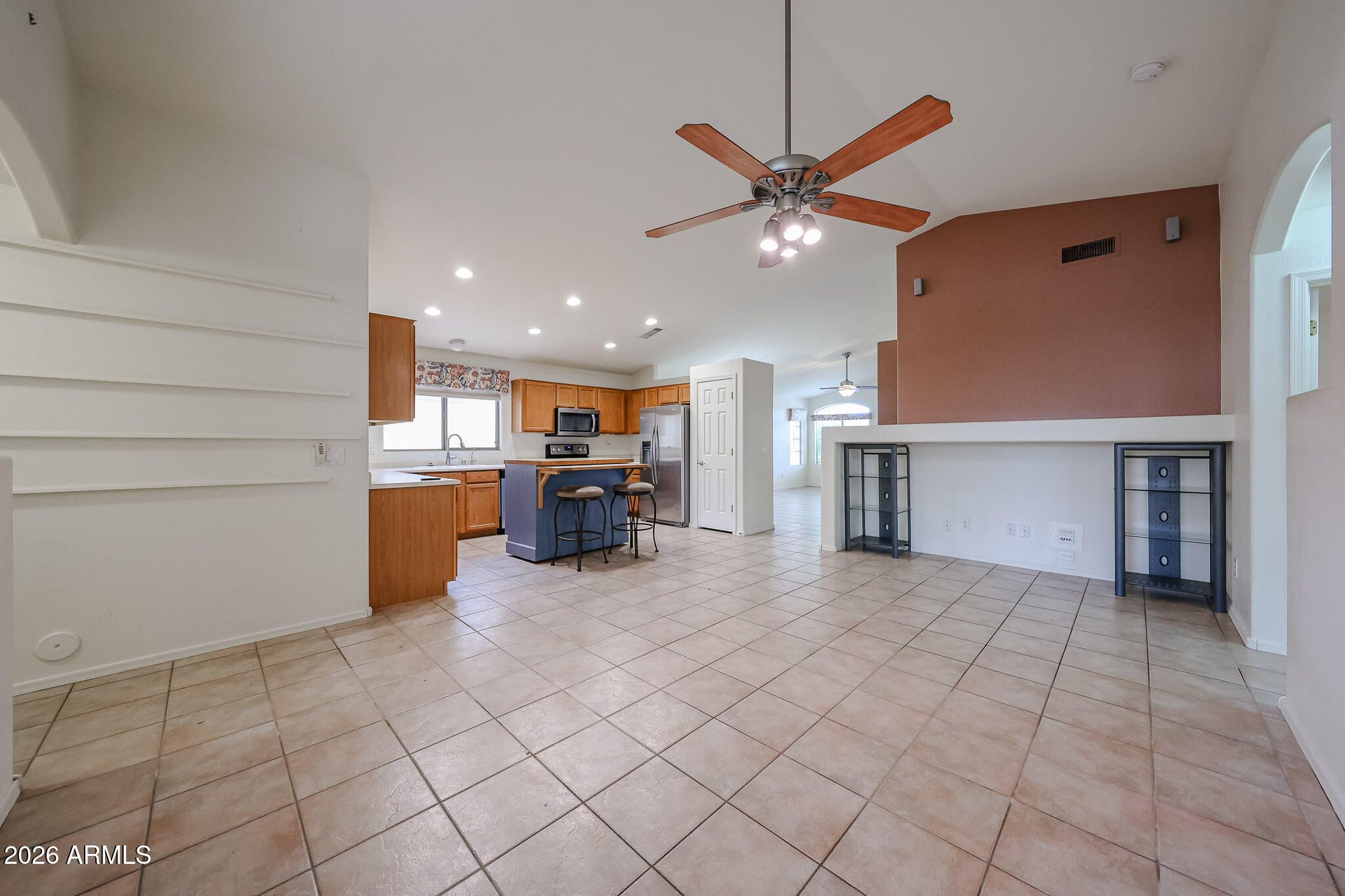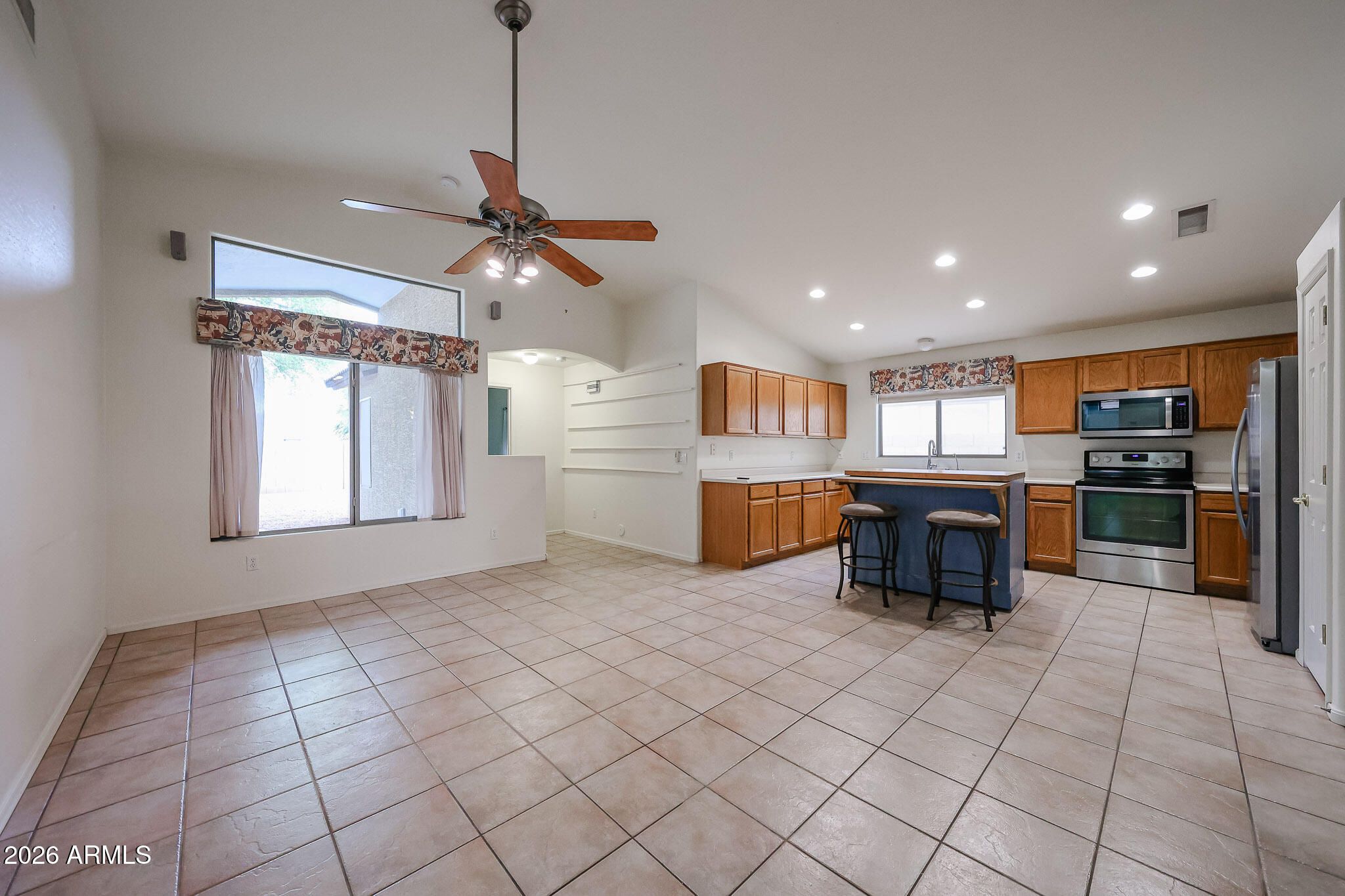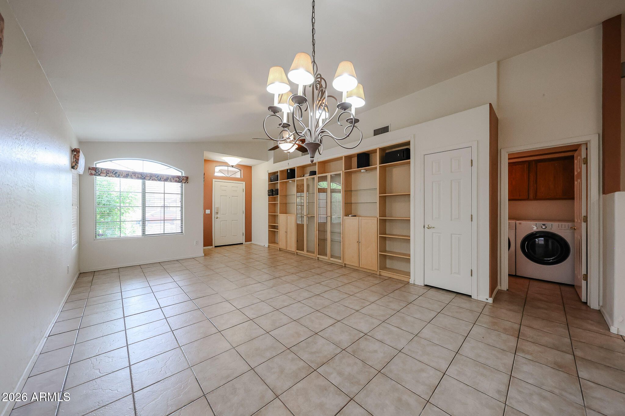 Welcome to this beautifully maintained single story home in Peoria's sought-after Ventana Lakes Community. Offering 3 bedrooms, 2 bathrooms, and 1471 sq. ft., this home features and open layout with cermic tile throughout for easy maintenance and clean, cohesive feel. The kitchen is designed for both funtionn and flexability, complete with a movable island on wheels, ample storage, and all appliances included, giving you the option to configure the space to fit your needs. Built-in cabinetry in the livingroom. Step outside to a low-maintenance backyard with plenty of shade and a covered patio-perfect for relaxing mornings or casual entertaining. Located is a quite neighborhood with community amenities, this home offers comfort, and convenience. Professional pictures to be added 4/7/2026