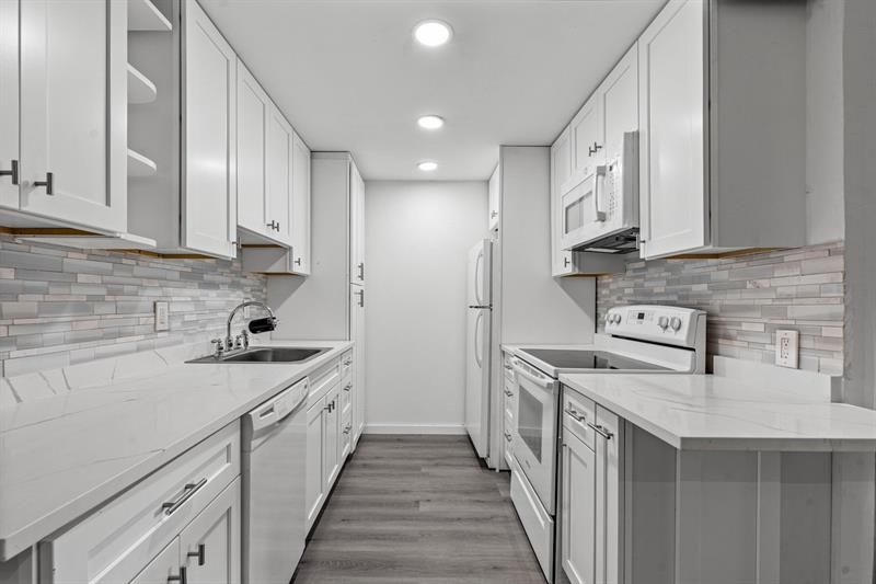 Completely renovated from top to bottom. This unit features: brand new flooring, modern kitchen with quartz countertops, new electric panel, new water heater and fresh finishes throughout. Convenient first-floor location with parking right in front and a serene lake view to enjoy from your private patio. Perfect exposure allows you to sip morning coffee or relax in the afternoon without direct sun. The building offers peace of mind with a new roof, fully funded reserves, and no special assessments. Move-in ready and designed for comfortable Florida livingCentury Village is a 55+ community with numerous amenities and activities available to residents.