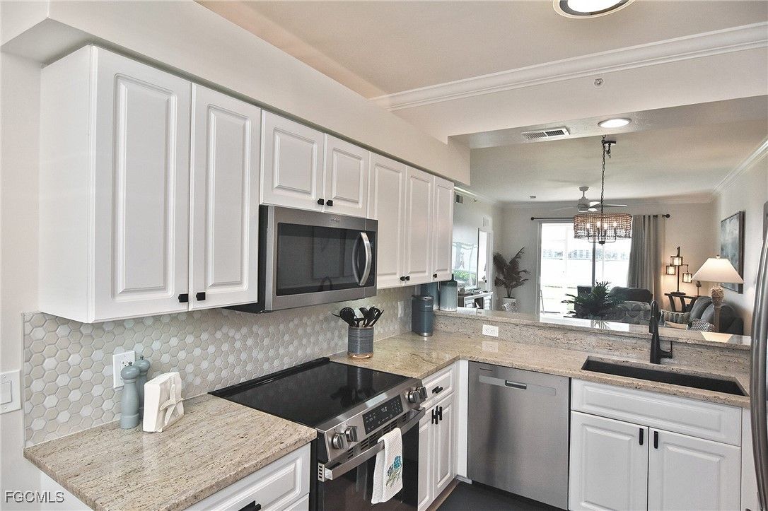 Don't miss this beautifully updated condo in Heritage Palms Golf & Country Club. With amazing views of the big lake and golf course, this 2-bedroom, 2-bathroom condo is sure to impress! New LVP flooring throughout, new kitchen countertops & backsplash, custom vanities in both bathrooms with soft-close drawers, newer appliances in past 2 years include washer, dryer, range, microwave and dishwasher. AC unit was replaced in 2023. This unit is being sold turnkey- with much of the furniture new as of 2024/2025! Heritage Palms has something for everyone. Two 18-hole golf courses, 8 tennis courts, 6 pickleball courts, fitness center, 9 pools, lots of social activities such as Bingo, live music, book clubs and more. New Tiki Oasis will be open early 2026! And if that is not enough, HP is conveniently located near entertainment like Top Golf, Pop Stroke, Twins & Red Sox training fields, great dining with the new Capital Grill, Coopers Hawk and short drive to FGCU and airport! Check out the virtual tour and schedule your showing today!