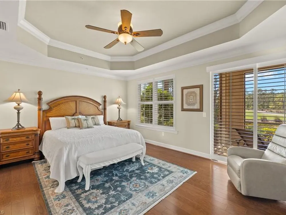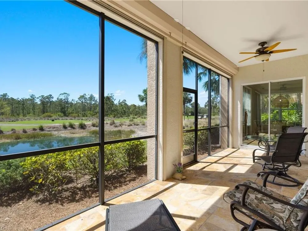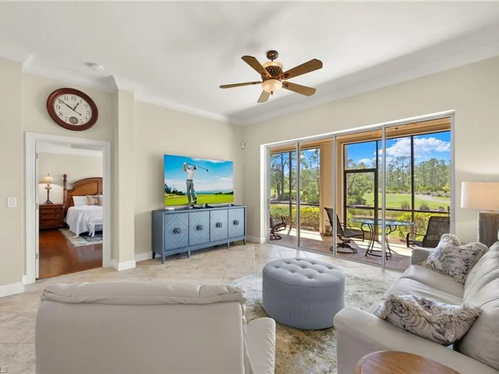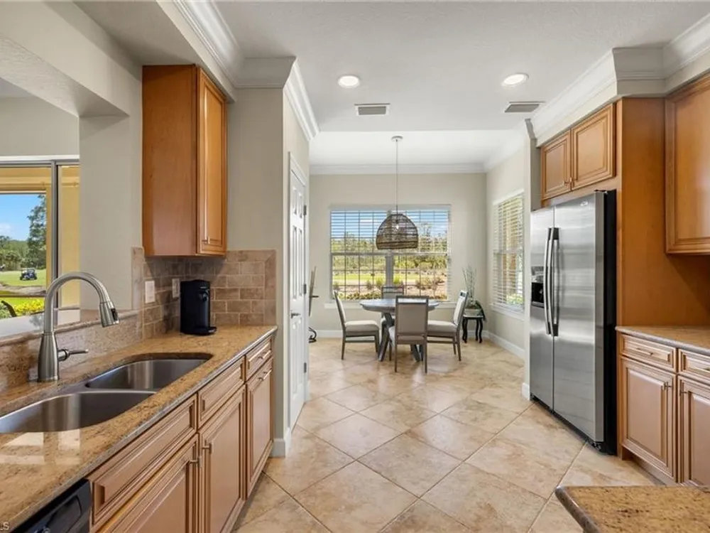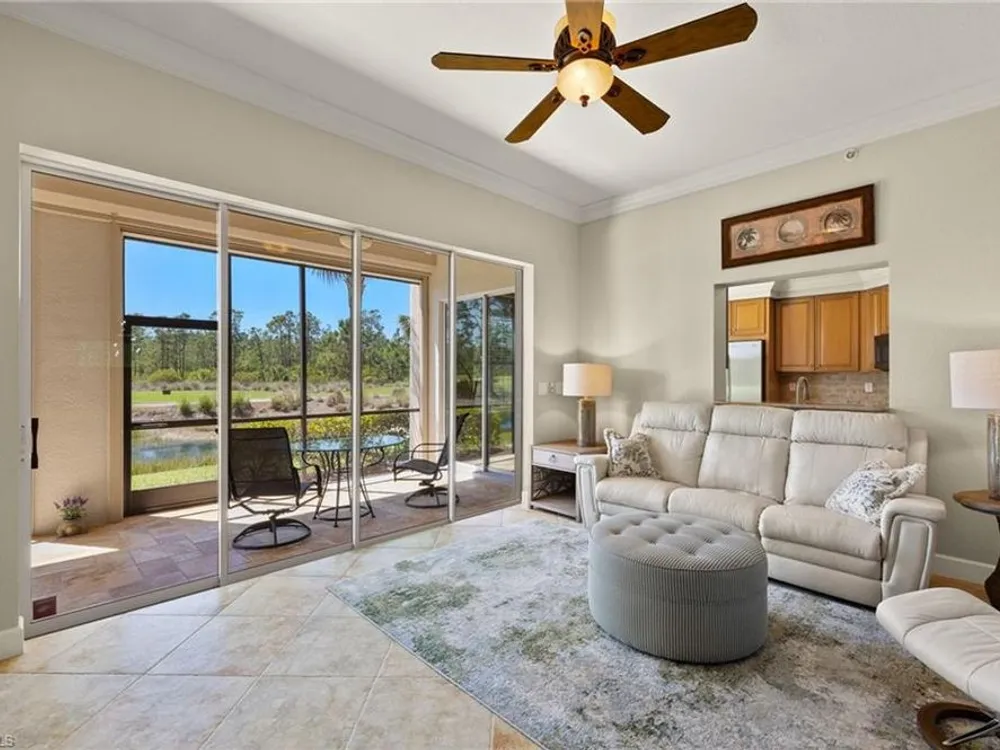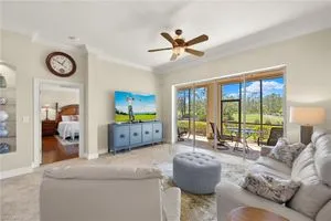 Enjoy stunning views of the 9th green, lake, and preserve from this spacious first-floor end-unit Carriage Home in Somerset at The Plantation—your perfect seasonal escape or year-round retreat. With over 2,000 square feet of living space, this 3-bedroom, 2.5-bathroom residence features two en-suites and an oversized attached 2-car garage, ideal for storing beach gear, bikes, and golf clubs.The beautifully appointed kitchen offers granite countertops, rich wood cabinetry, a new double oven electric range with air fryer, pantry, and a cozy breakfast nook with access to the screened lanai—perfect for morning coffee with a view. The great room features tile laid on the diagonal and opens to an expansive tiled lanai with new screens and Storm Smart electric roll-down shutters, offering peace of mind and easy lock-and-leave convenience.The spacious primary suite includes a custom-built walk-in closet, dual sinks, vanity, soaking tub, and walk-in shower. A private guest suite with its own bath and walk-in closet ensures comfort for visiting friends and family, while the third bedroom—with French doors and lake/golf views—makes an ideal den or home office.A separate laundry room includes a new washer and dryer (2023), laundry tub, and built-in cabinetry. Additional upgrades include a new Lennox AC (2023), new hot water heater (2024), crown molding, plantation shutters, LED lighting, and freshly painted interior. Best of all, this home is not located in a flood zone.HOA fees cover cable, high-speed internet, lawn care, landscaping, pest control, water, trash, exterior insurance and maintenance—making seasonal living effortless. Residents enjoy access to tennis, pickleball, bocce, a fitness center, resort-style pool and spa, and a variety of social clubs and activities.The Plantation Golf & Country Club—within the gated community—features a Hurdzan-Fry championship 18-hole golf course, clubhouse, and restaurant. Golf and social memberships are optional, giving you the flexibility to enjoy amenities your way.Conveniently located near I-75, shopping, dining, RSW airport, and Gulf beaches. Whether you're escaping the cold or settling into sunshine, this home offers the perfect blend of comfort, connection, and carefree living.