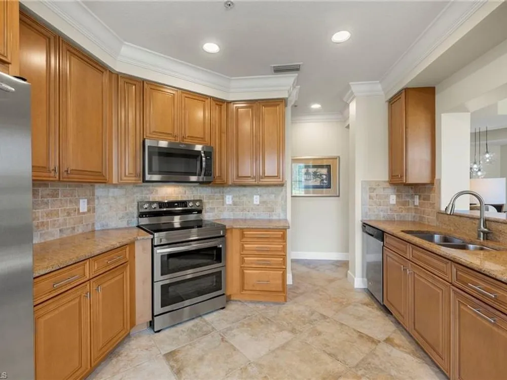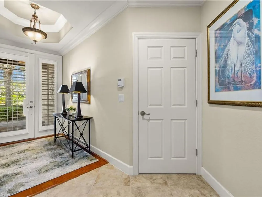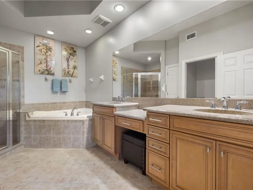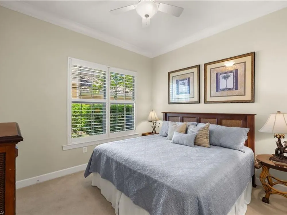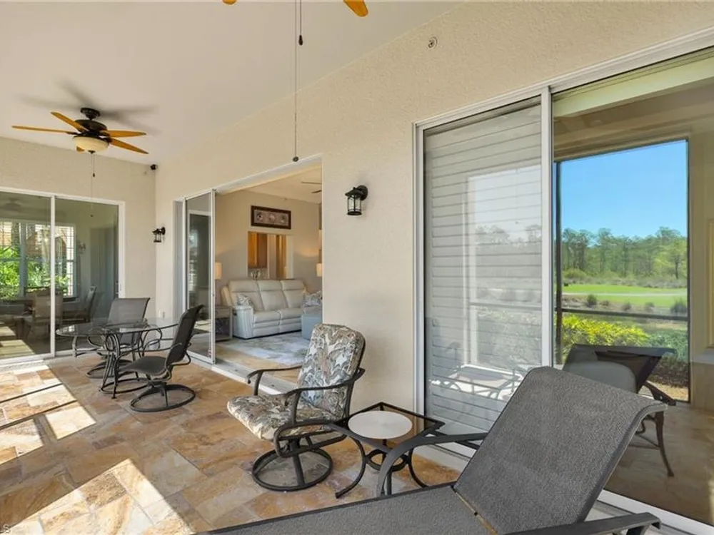 Enjoy stunning views of the 9th green, lake, and preserve from this spacious first-floor end-unit Carriage Home in Somerset at The Plantation—your perfect seasonal escape or year-round retreat. With over 2,000 square feet of living space, this 3-bedroom, 2.5-bathroom residence features two en-suites and an oversized attached 2-car garage, ideal for storing beach gear, bikes, and golf clubs.The beautifully appointed kitchen offers granite countertops, rich wood cabinetry, a new double oven electric range with air fryer, pantry, and a cozy breakfast nook with access to the screened lanai—perfect for morning coffee with a view. The great room features tile laid on the diagonal and opens to an expansive tiled lanai with new screens and Storm Smart electric roll-down shutters, offering peace of mind and easy lock-and-leave convenience.The spacious primary suite includes a custom-built walk-in closet, dual sinks, vanity, soaking tub, and walk-in shower. A private guest suite with its own bath and walk-in closet ensures comfort for visiting friends and family, while the third bedroom—with French doors and lake/golf views—makes an ideal den or home office.A separate laundry room includes a new washer and dryer (2023), laundry tub, and built-in cabinetry. Additional upgrades include a new Lennox AC (2023), new hot water heater (2024), crown molding, plantation shutters, LED lighting, and freshly painted interior. Best of all, this home is not located in a flood zone.HOA fees cover cable, high-speed internet, lawn care, landscaping, pest control, water, trash, exterior insurance and maintenance—making seasonal living effortless. Residents enjoy access to tennis, pickleball, bocce, a fitness center, resort-style pool and spa, and a variety of social clubs and activities.The Plantation Golf & Country Club—within the gated community—features a Hurdzan-Fry championship 18-hole golf course, clubhouse, and restaurant. Golf and social memberships are optional, giving you the flexibility to enjoy amenities your way.Conveniently located near I-75, shopping, dining, RSW airport, and Gulf beaches. Whether you're escaping the cold or settling into sunshine, this home offers the perfect blend of comfort, connection, and carefree living.
