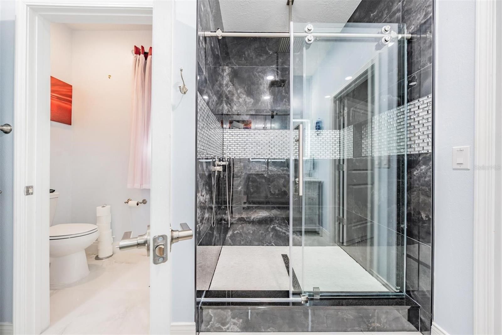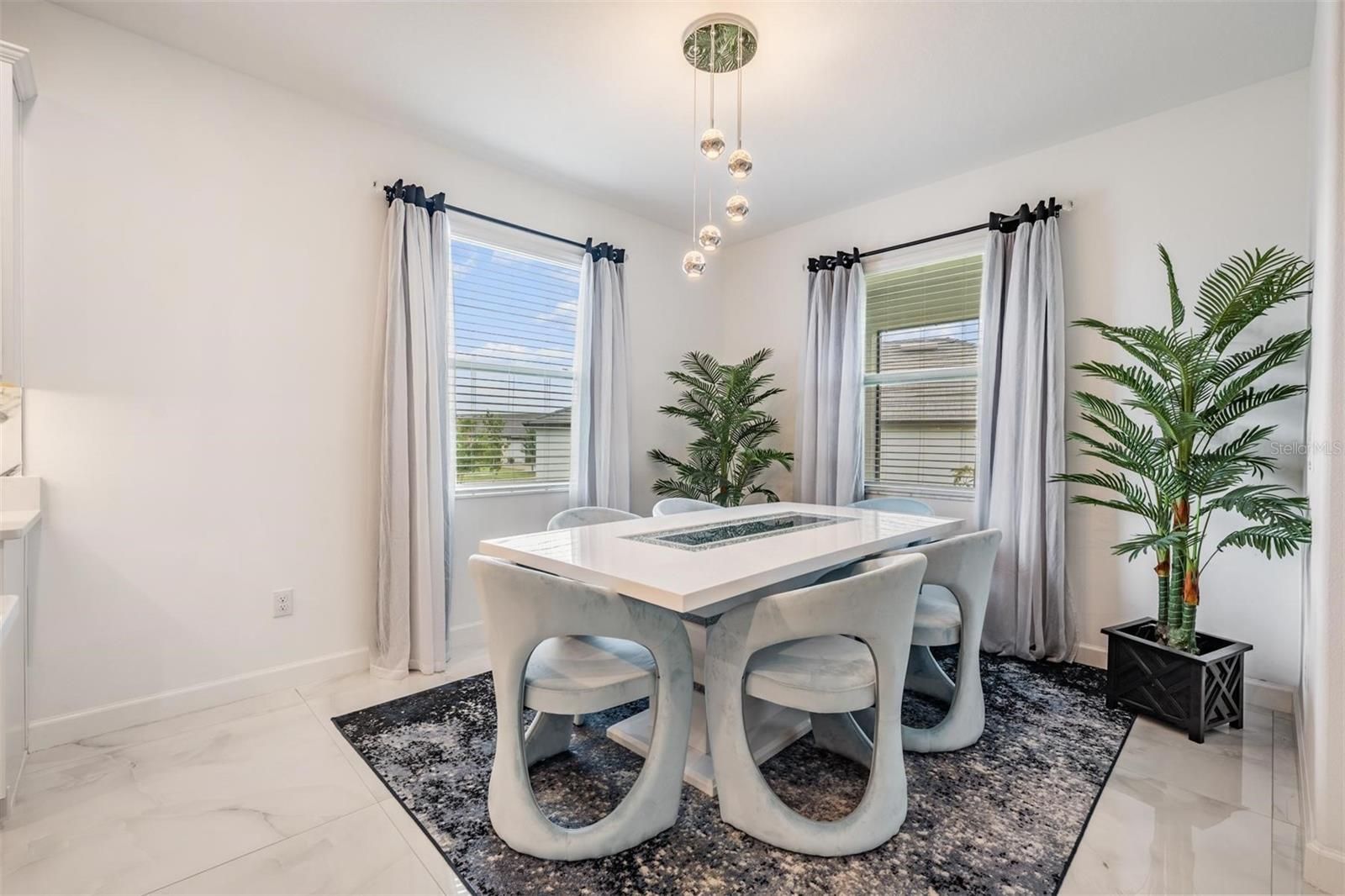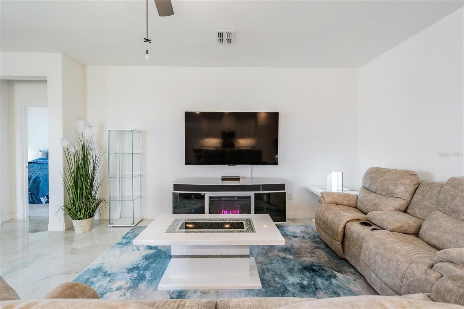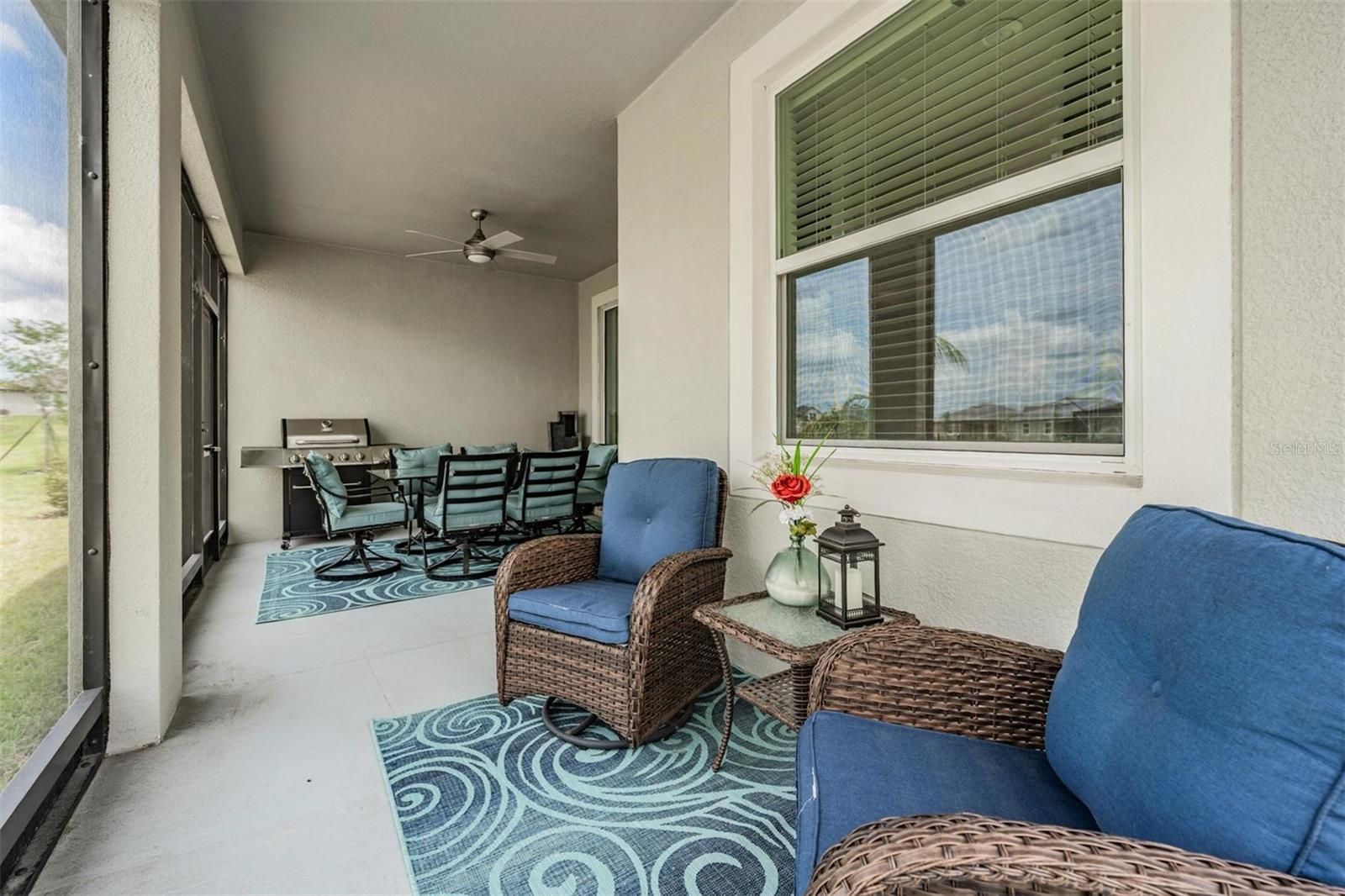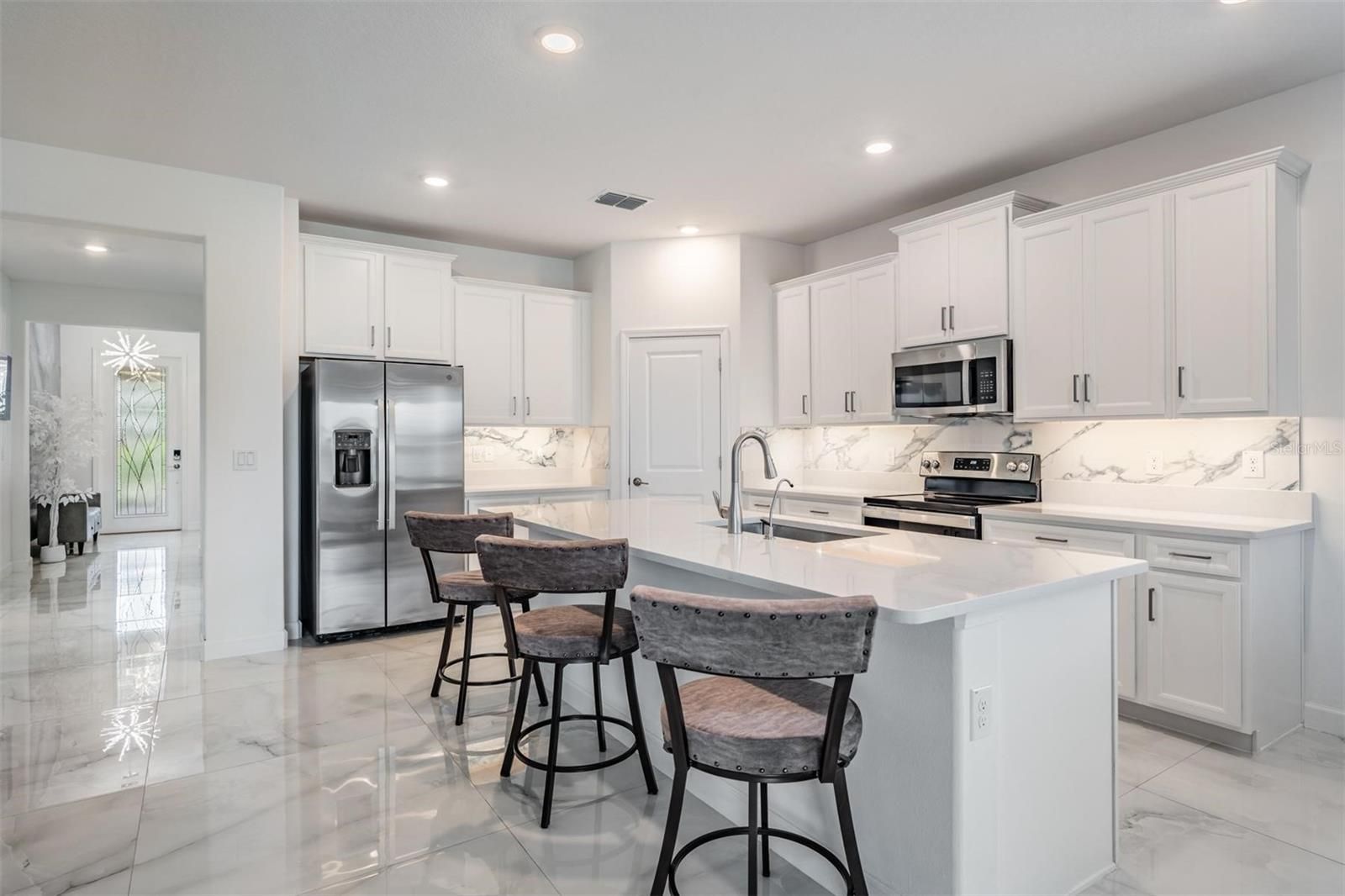 LUXURY MODEL HOME WITH + $50K in UPGRADES + DOUBLE CORNER LOT! Welcome to resort-style, maintenance-free living in the exclusive 55+ gated community featuring private amenities along with access to Florida’s 15-acre Crystal Lagoon! This stunning 2-bed | 2-bath + flex room home (1,968 sq. ft) is situated on a rare double corner lot with serene pond views. When you enter the home through the 8-foot etched glass door, you encounter beautiful 40"x 40" porcelain tiled floors. The foyer has a porcelain tile signature wall with a modern chandelier. The open concept living and dining areas create a welcoming atmosphere with plenty of natural light. The kitchen features a large island with quartz countertops, a custom porcelain tile backsplash, and a large walk-in pantry. Step outside through the 3-panel glass sliding doors onto your screened lanai with a pond view. It is a perfect spot for morning coffee. Shades have been installed on the lanai. The primary suite serves as a peaceful retreat, complete with a walk-in closet, en-suite bathroom upgraded with dual vanities, frameless, adjustable LED vanity mirrors, and a custom porcelain-tiled walk-in shower with 2 shower heads, including a rainfall shower head. The laundry room is spacious and is connected to the primary bedroom's walk-in closet. The guest bathroom has floor-to-ceiling porcelain tile with a LED Spa Shower Tower, a rain and waterfall head, and four massage body jets. The home also features upgraded modern lighting, ceiling fans, and a brick-paver driveway. Enjoy resort-style living at The Medley in Mirada, which includes a clubhouse, restaurant, fitness center, pool, pickleball, and tennis courts. A monthly calendar of events offers Water Aerobics, Mahjong, Zumba, Tai Chi, and much more. Bring your golf cart and drive to the 15-acre Lagoon, which offers Sandy Beaches, Swim-up Bar, Paddle Boarding, Kayaking, an Obstacle Course, Cabanas, Aqua Banas, and Live Music Events. A monthly calendar of events includes Bingo, Trivia Night, and Movies on the Lawn. The Master HOA's quarterly fee includes cable and the Ultra-Fi. Lawn Maintenance is included at the Medley. This home is about 40 minutes north of Downtown Tampa, 45 minutes from Tampa International Airport, 60 minutes from the Gulf Beaches, and 75 minutes from Orlando and Walt Disney World. Buyer and Buyer's Agent to confirm all room measurements.