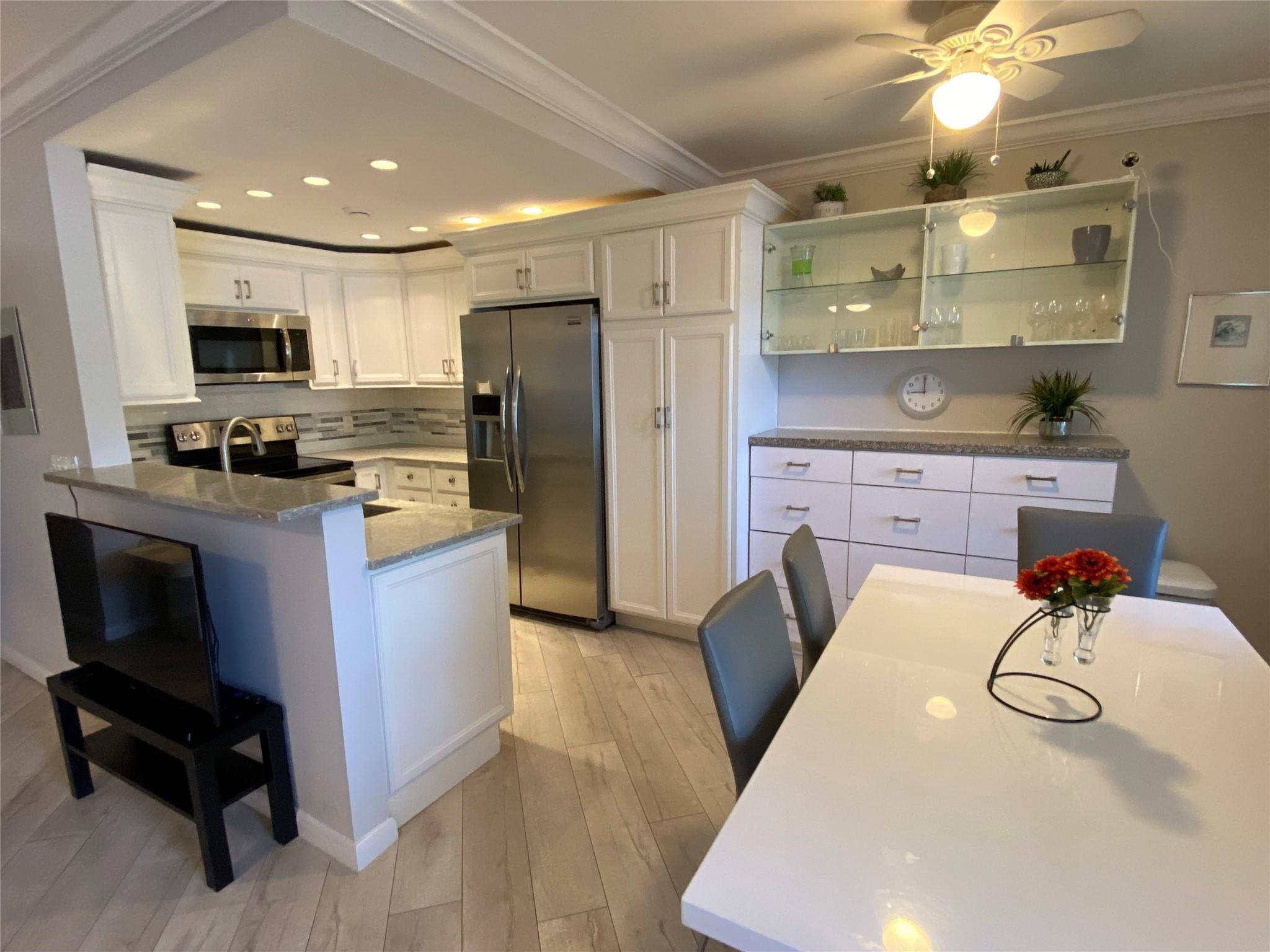 FIRST FLOOR UNIT! 2 BEDROOM, 1.5 BATH,OPEN KITCHEN WITH GRANITE COUNTERTOPS, CUSTOM PANTRY, STAINLESS STEEL APPLIANCES, TASTEFULLY FURNISHED, CROWN MOLDING. GUEST BATH IS REMODELED, MASTER BATH HAS WALK IN SHOWER, CLOSETS HAVE CUSTOM BUILD IN FEATURES, ALL WINDOW OPENINGS HAVE ACCORDION HURRICANE SHUTTERS, PATIO IS ENCLOSED, BUILDING HAS NEW ROOF AND ELEVATOR, PARKING IN FRONT OF UNIT, SHORT WALK TO PLAZA, CLUBHOUSE AND BERKSHIRE POOL. THIS UNIT IS PRICED TO SELL! CLUBHOUSE HAS LIVE SHOWS, CRAFT ROOMS, FITNESS CENTER, NEW ZERO ENTRY POOL, FREE SHUTTLE TO MALLS AND GROCERY STORES, CAFE ON PROPERTY. PROOF OF FUNDS MUST ACCOMPANY ALL OFFERS SEE SHOWTIME FOR ACCESS. SEACREST MANAGED FEE $431.80 CVEMM $185, CENCLUB $120 MAINTENANCE INCLUDES CABLE TV, WATER, SEWER, TRASH & BLDG RESERVES