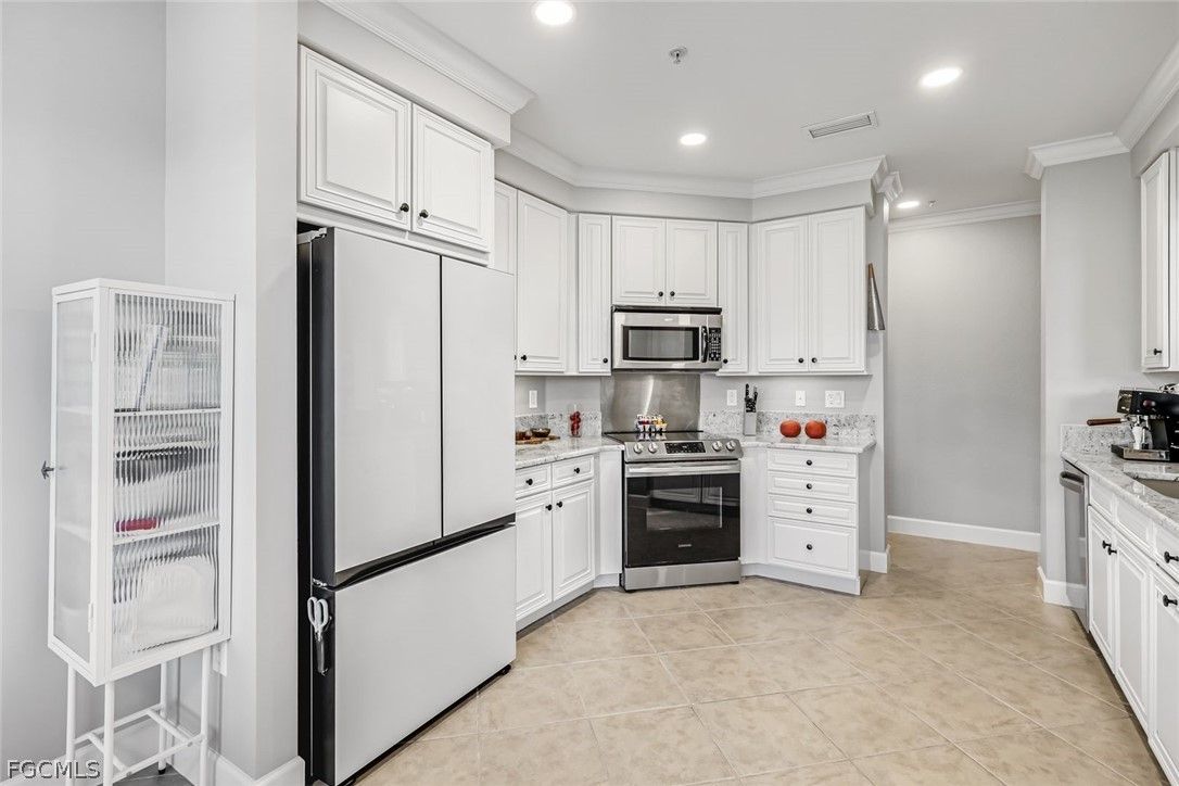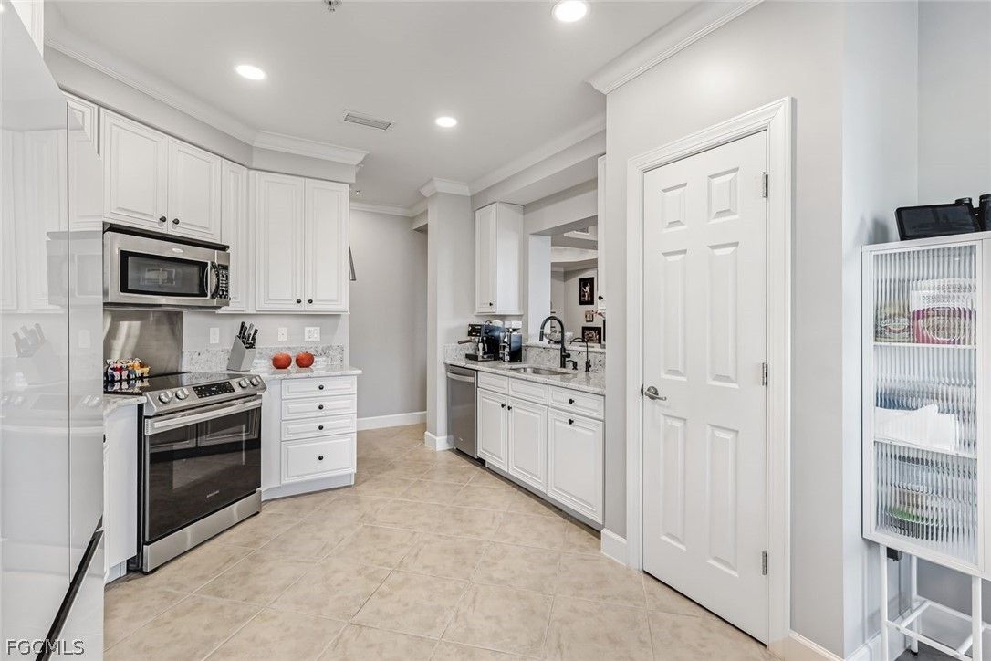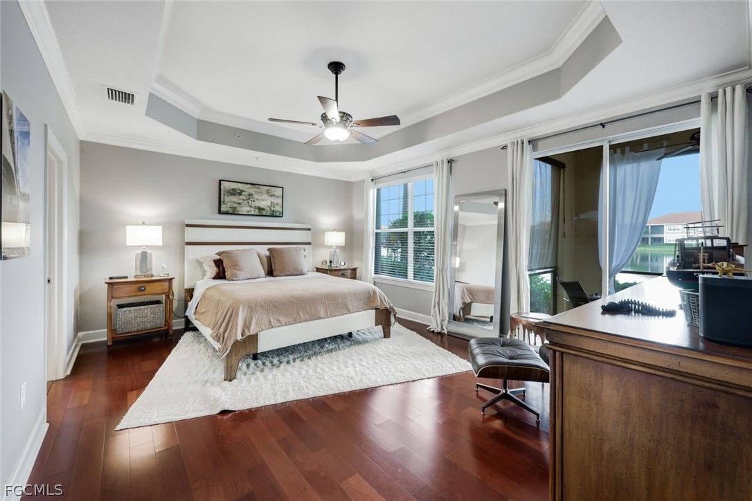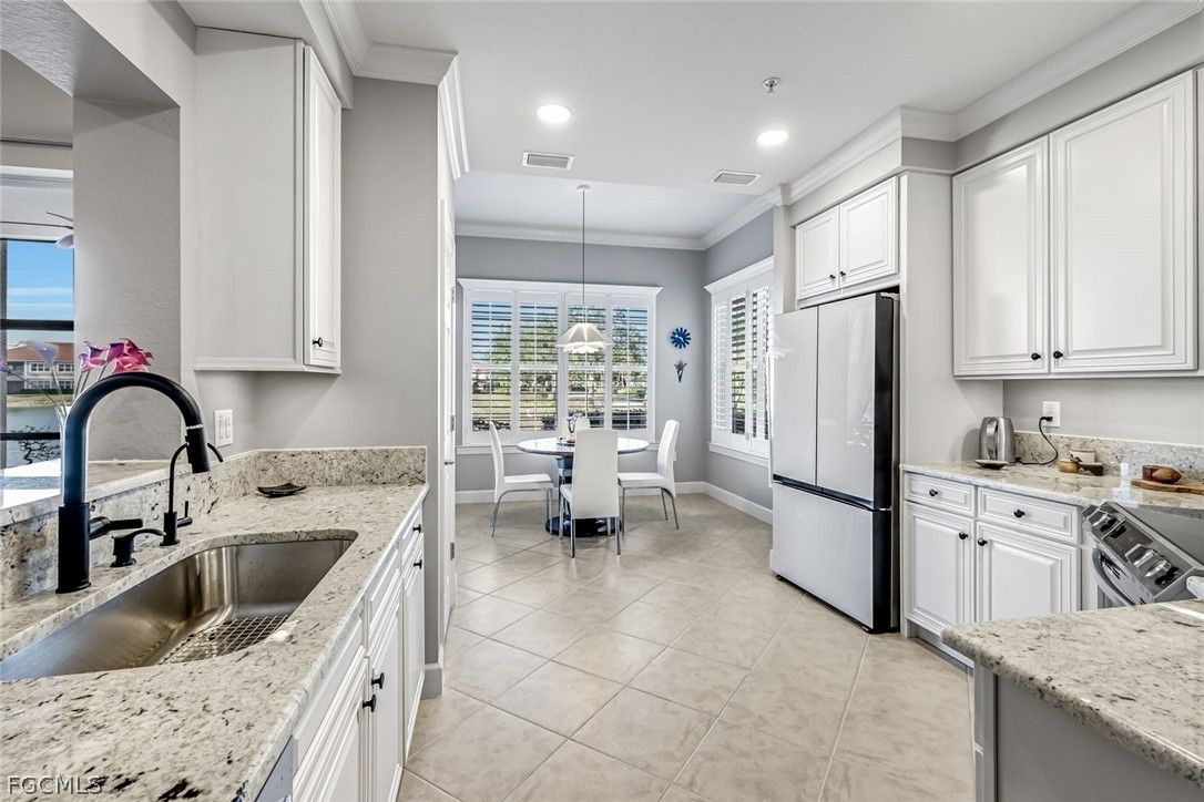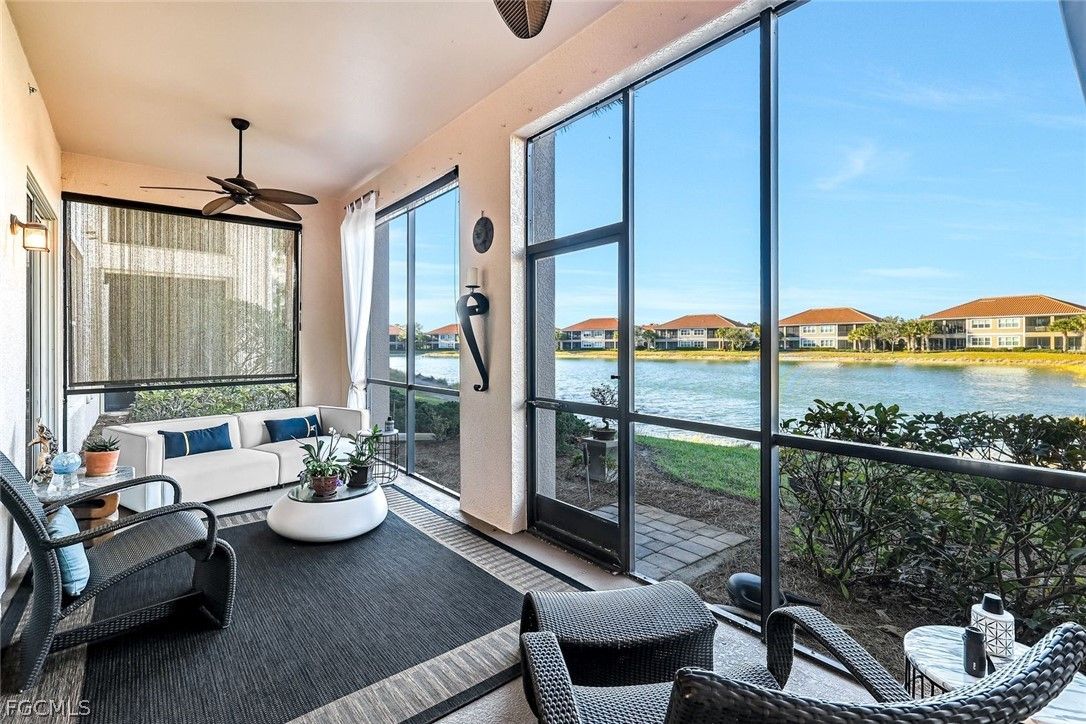 NEWLY UPDATED KITCHEN and PRIMARY BATH. Welcome to 10390 Glastonbury Circle #102, the largest first-floor coach home in Somerset at The Plantation, set in a quiet, private section of the community. This rarely available Ellington floor plan offers over 2,000 sq ft, no stairs, and peaceful lakefront wildlife views, away from road and interstate noise. Furniture is negotiable. This spacious 3BR/2.5BA home features soaring ceilings, crown molding, wood flooring in all bedrooms, plantation shutters, an updated half bath, and no carpet. The largest open kitchen in the floor plan includes new granite countertops, new stainless single-bowl sink and faucet, 2023 appliances, French-door refrigerator with auto-fill water pitcher, induction range, and three-drawer dishwasher. New designer LED lighting enhances the entry and dining area. The owner’s suite is a quiet retreat with serene lake views and a custom-designed oversized walk-in closet. The spa-style bath offers dual sinks, soaking tub, makeup vanity, and walk-in shower. Storm-smart for peace of mind, this home is located on the airport power grid with no flood damage history and no past power loss. The building features new exterior paint, roof cleaning with roof-icide, strong HOA reserves, and a north-facing lanai that stays cooler and quieter. Additional highlights include a private driveway, EV-ready 2-car garage with 240V outlet, SimpliSafe security with cameras, mature trees, and a calm, low-traffic neighborhood setting. Condo fees include cable, internet, water, landscaping, building insurance, and resort-style amenities. Enjoy pickleball, tennis, bocce, fitness center, spa, pool, clubhouse, and optional golf. Located just 10 minutes to RSW Airport, shopping, and dining, yet set back for peace, privacy, and quiet​​‌​​​​‌​​‌‌​‌‌​​​‌‌​‌​‌​​‌‌​​​‌ living.