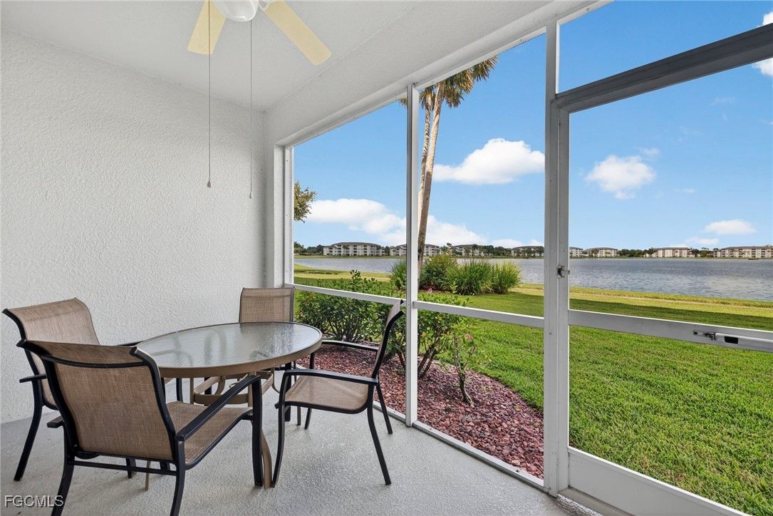 Welcome to your dream retreat in the heart of Heritage Palms Golf & Country Club! This beautifully maintained and tastefully decorated 2-bedroom, 2-bath, first-floor condo upgraded with crown molding, is being offered turnkey, making it the perfect choice for a second home, investment property, or full-time residence. Enjoy stunning panoramic views of the expansive lake and lush golf course right from your private screened lanai—ideal for relaxing evenings and unforgettable sunsets. Just steps from the Terrace pool, this unit offers both convenience and tranquility. Heritage Palms is a vibrant bundled community featuring 36 holes of championship golf, tennis, pickleball, bocce ball, live entertainment, and a full calendar of social activities. Residents also enjoy on-site dining options and the exciting new Tiki Oasis, set to open in Fall 2025. Located just minutes from shopping, dining, Top Golf, movie theaters, RSW airport, and the breathtaking Gulf beaches. Additional perks include a locked storage closet right outside your door and covered parking.