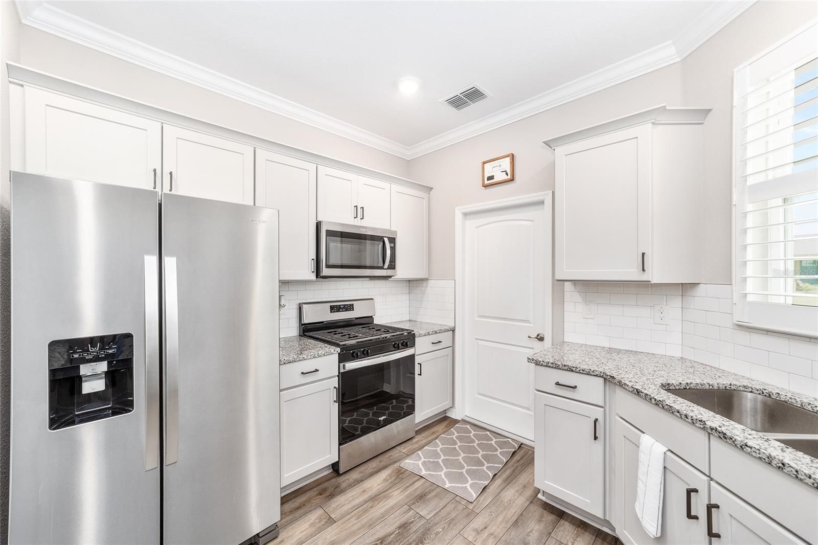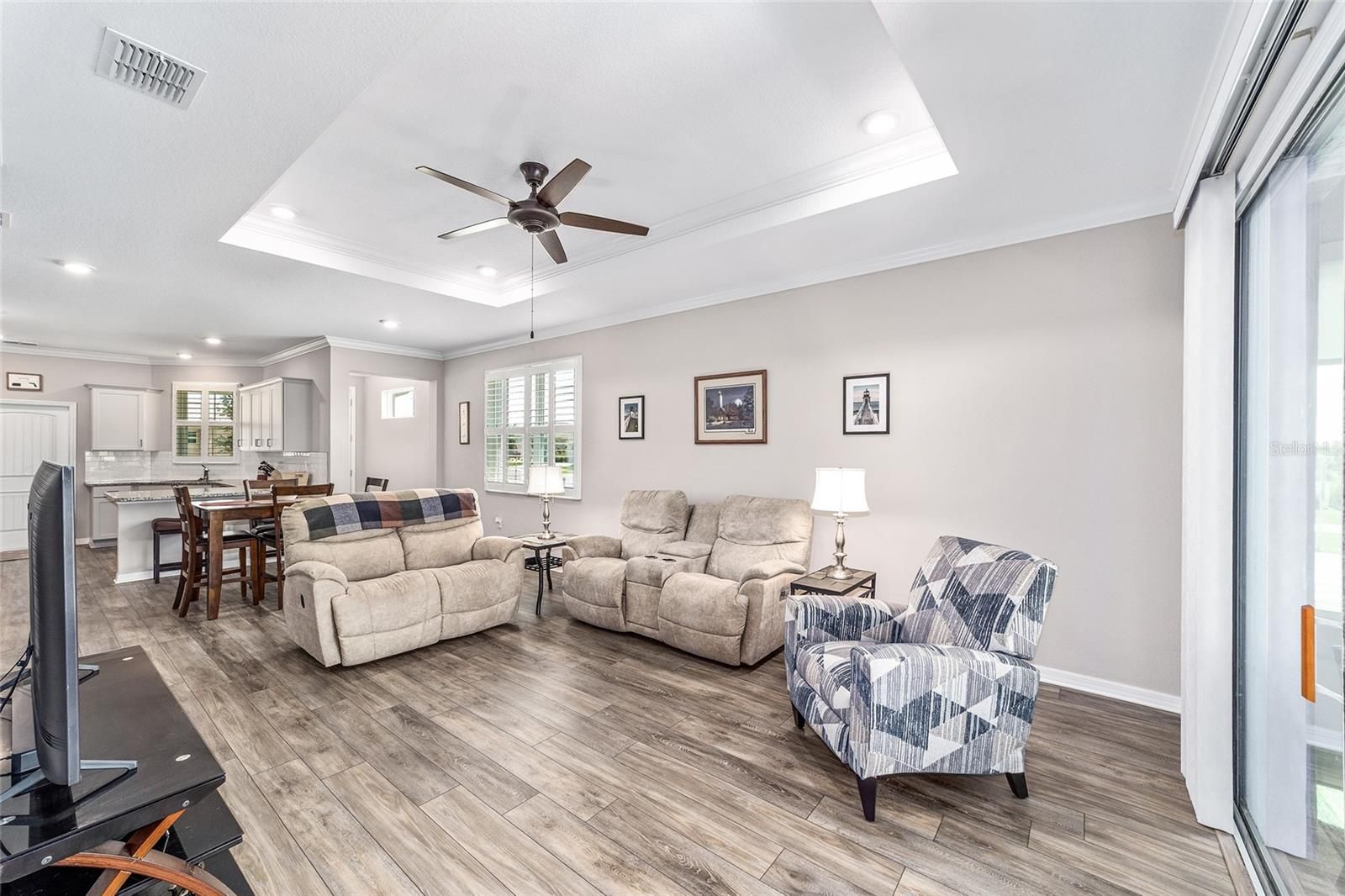 - Ceiling Fan(s), Crown Molding, Open Floorplan, Stone Counters, Tray Ceiling(s), Walk-In Closet(s), Window Treatments