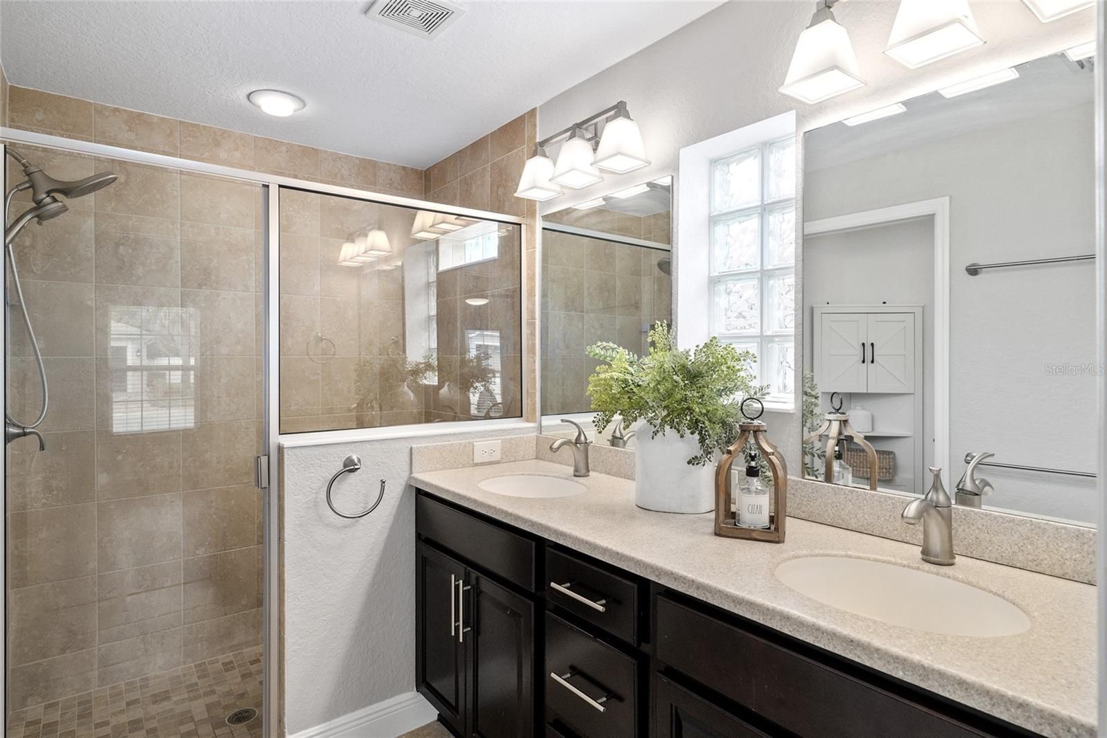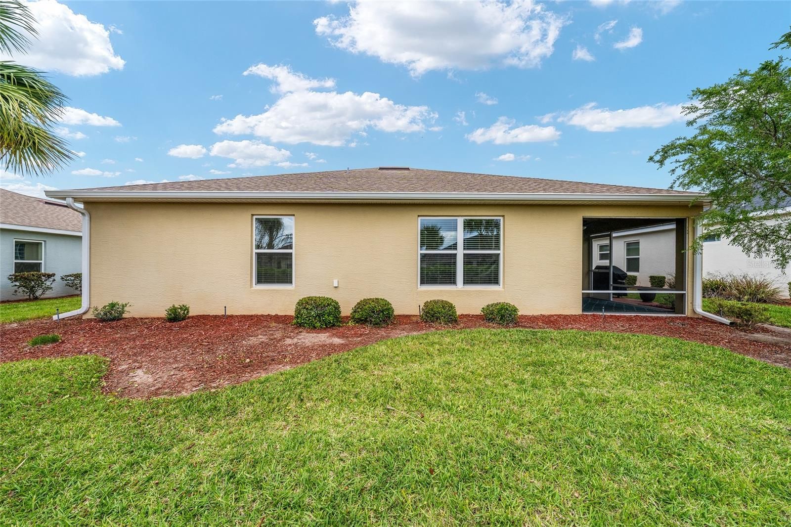 This OSPREY Model with STUCCO exterior is located in the highly sought-after GATED community of LAKESIDE LANDINGS, offering one of the most convenient and desirable locations in the area. Ideally positioned just a 12-minute golf cart ride to SUMTER LANDING, approximately 15 minutes to SPANISH SPRINGS, and less than 10 minutes to everyday essentials including multiple grocery stores, medical and dental offices, HOME DEPOT, LOWE’S, and the NEW COSTCO and TARGET, this home blends lifestyle and accessibility. From the moment you arrive, you’ll notice the curb appeal with LUSH LANDSCAPING, newly sodded (front) MAINTENANCE-FREE LAWN, STUCCO finish, and PAVER WALKWAY AND DRIVEWAY. Inside, the OPEN-CONCEPT floorplan is enhanced by 10-FOOT CEILINGS, creating a light and spacious feel throughout the main living areas, featuring CERAMIC TILE flooring, with LUXURY VINYL PLANK in the primary bedroom for added comfort. The kitchen is designed for both everyday living and entertaining, offering SOLID WOOD CABINETS, QUARTZ COUNTERTOPS, STAINLESS STEEL APPLIANCES, and a layout that flows seamlessly into the dining and living spaces. The PRIMARY SUITE provides a private retreat with a QUARTZ-TOPPED DUAL VANITY, TILED WALK-IN ROMAN SHOWER, and TWO LARGE CLOSETS. Step outside to the LANAI overlooking a LARGE BACKYARD with ROOM FOR A POOL, offering flexibility to create your own outdoor oasis. The 2-CAR GARAGE provides ample space for both vehicles and a GOLF CART, along with additional overhead storage for seasonal items. The HOA enhances the low-maintenance lifestyle by covering EXTERIOR PEST CONTROL, LAWN CARE, TRASH REMOVAL, and IRRIGATION (including water for the lawn). LAKESIDE LANDINGS is a TRUE GATED COMMUNITY with impressive wrought iron gates and RESORT-STYLE AMENITIES including TWO POOLS (one RESORT-STYLE), TWO IN-GROUND JACUZZIS, a CLUBHOUSE with LIBRARY and BILLIARD ROOM, FULL FITNESS CENTER, CARD ROOM, PUTTING GREENS, PLAYGROUND, and courts for BASKETBALL, TENNIS, and PICKLEBALL—all reserved exclusively for residents. For those who enjoy the outdoors, you’ll also appreciate access to LAKE MIONA for kayaking and relaxing days in the Florida sunshine. This home is prewired for a security system and offers peace of mind within a gated setting. NO BOND. ROOF, HVAC, AND WATER HEATER ARE ORIGINAL (2019). NO BOND!