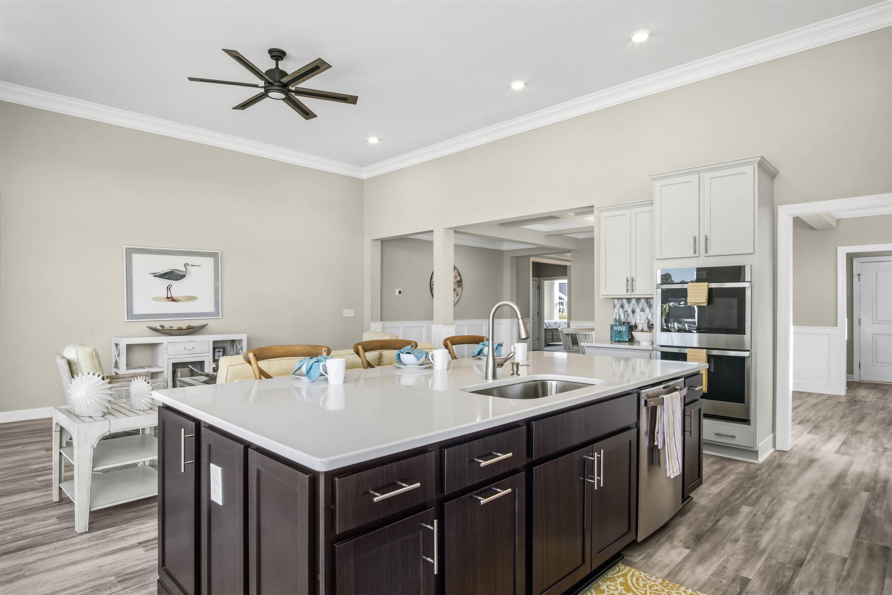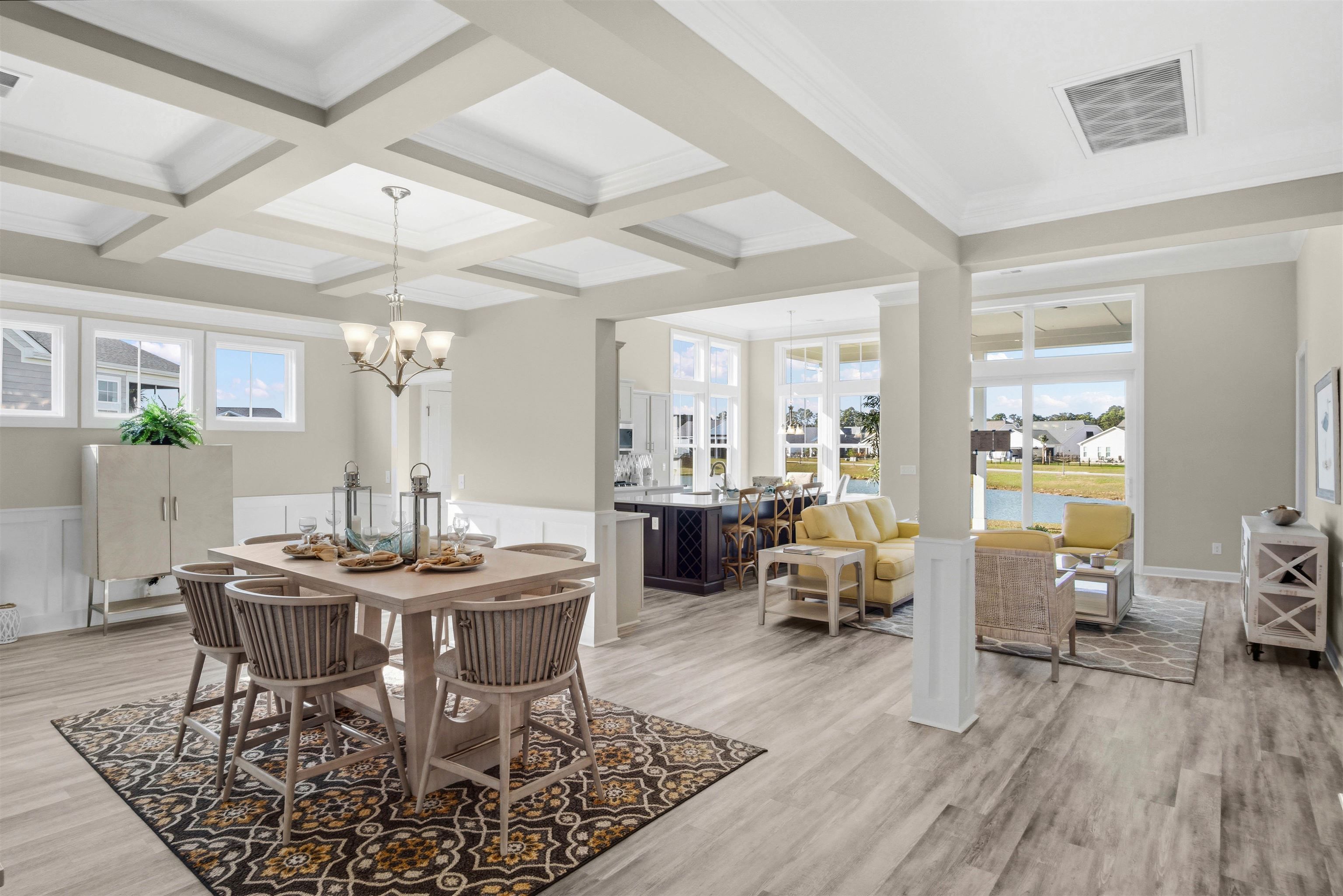 Welcome to the Goldenrod. Upon entering, discover a foyer with a tray ceiling leading to a spacious wide-open living area. Two bedrooms with large closets and a full bath are located on the left with an open dining area just ahead with a coffered ceiling. The great room features a 12' tray ceiling. A large, gourmet island in the kitchen offers additional seating and a surplus of counter space for large dinner parties or cooking large meals. Enjoy smaller meals with a breakfast area looking out onto the beautiful view of your backyard. From the great room, breeze through sliding glass doors onto a large, covered porch. The Goldenrod’s owner's suite offers an enormous walk-in closet accompanied by a beautiful owner's bath. With options for personalizing this model to fit your every need, the Goldenrod is full of possibilities. Make the Goldenrod the model you call “home” today! Former Model Home being sold furnished.