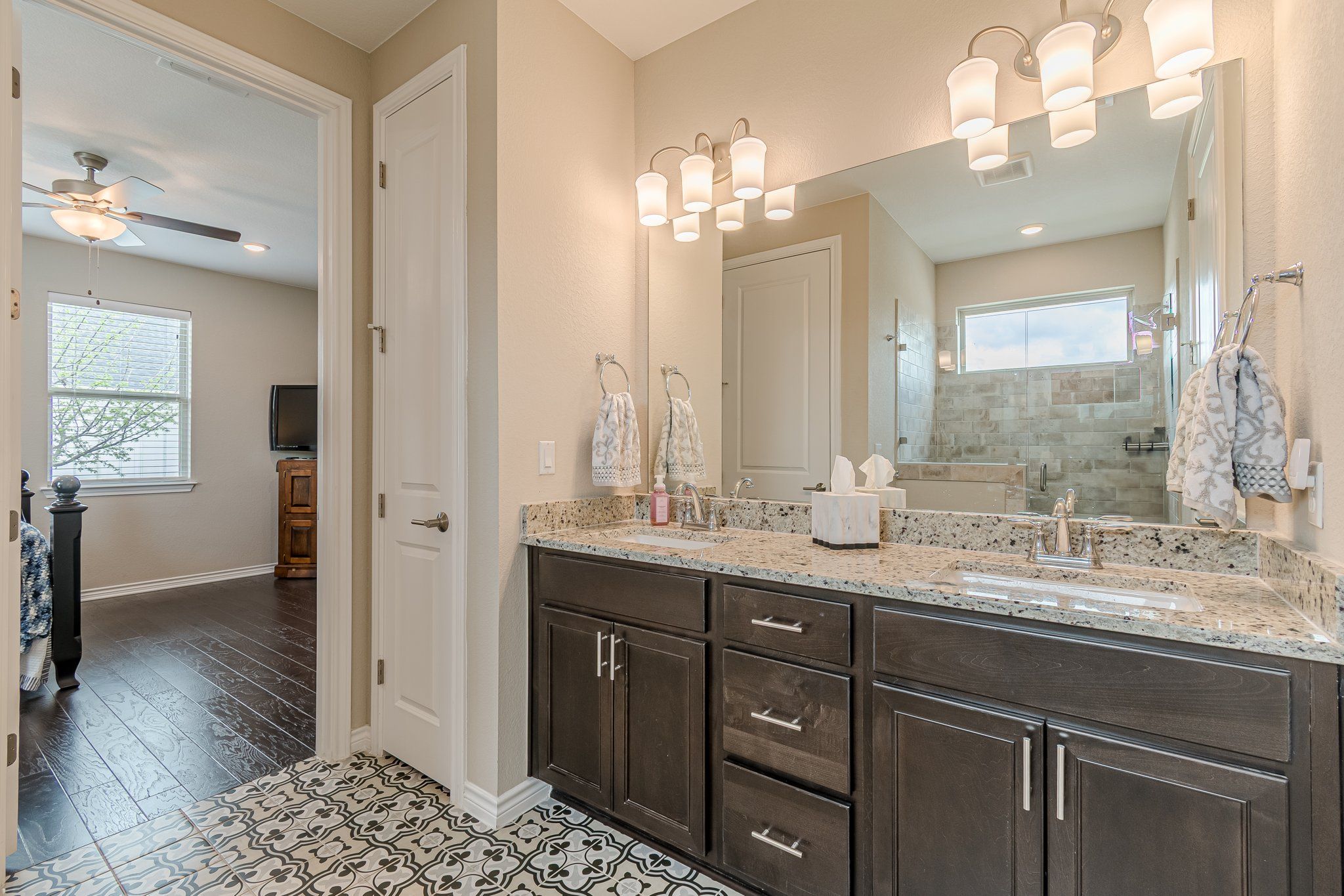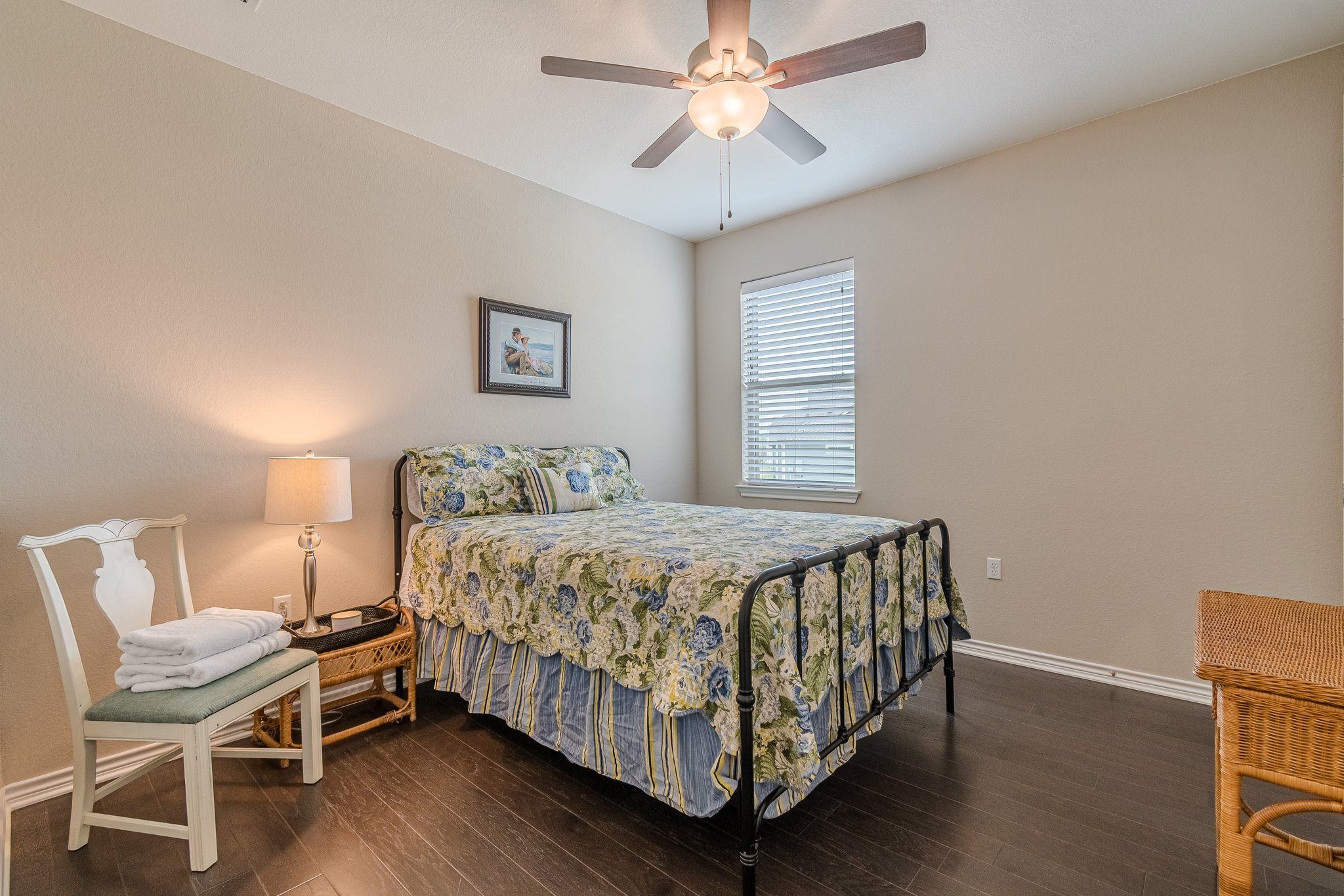 SUPER cute and hard to find Galvez villa - features 2 bedroom and 2 bath - with beautiful hardwood floors, dark cabinetry and granite counters. This villa location is at the back of the community in a small cove section. This villa is ready for you offering a Main bedroom that has generous space enough for king bed and desk - the ensuite bathroom has a stand up shower with a fresh look tile flooring. Large open concept kitchen, living, dining room - means you can entertain friends and family with ease! The large island kitchen gives plenty of cabinet and counter space - and has a large walk in pantry. The front covered patio is a great place to relax and enjoy the outdoors. Schedule your private showing today!