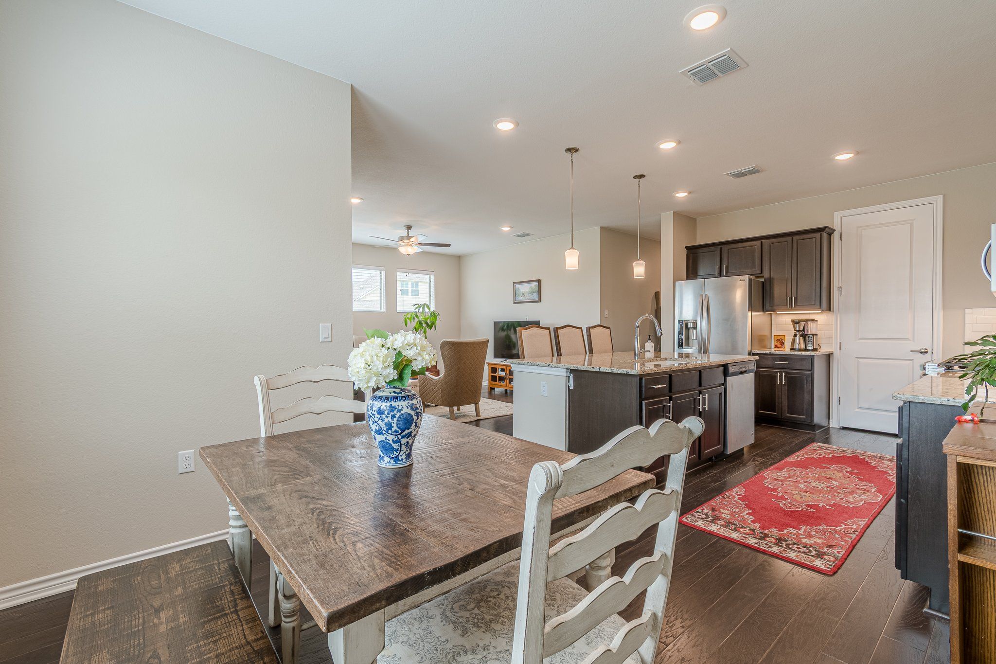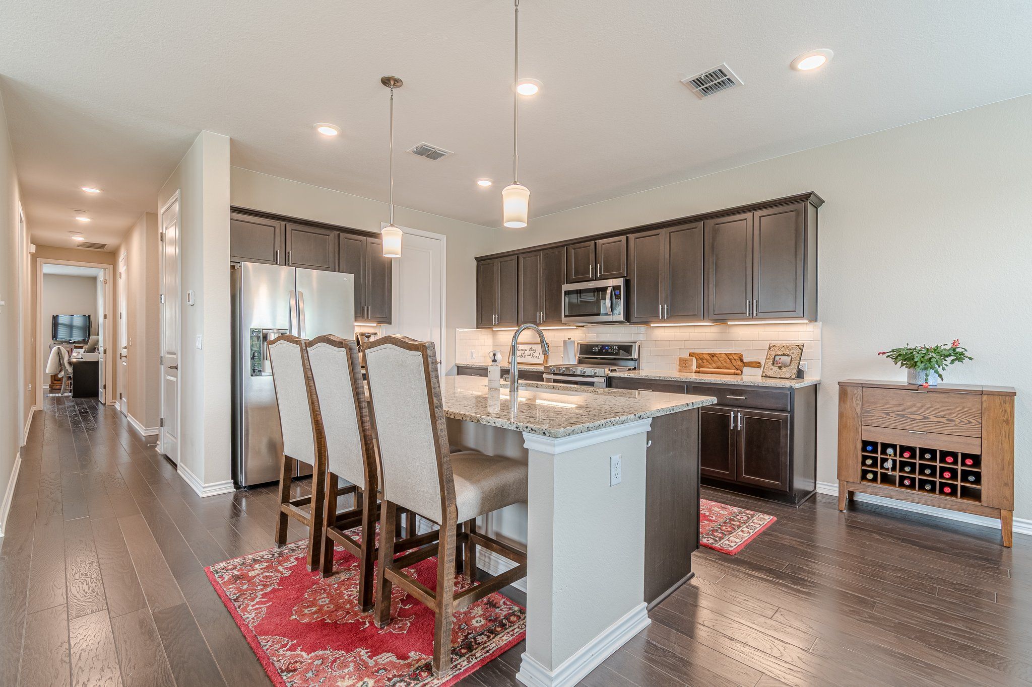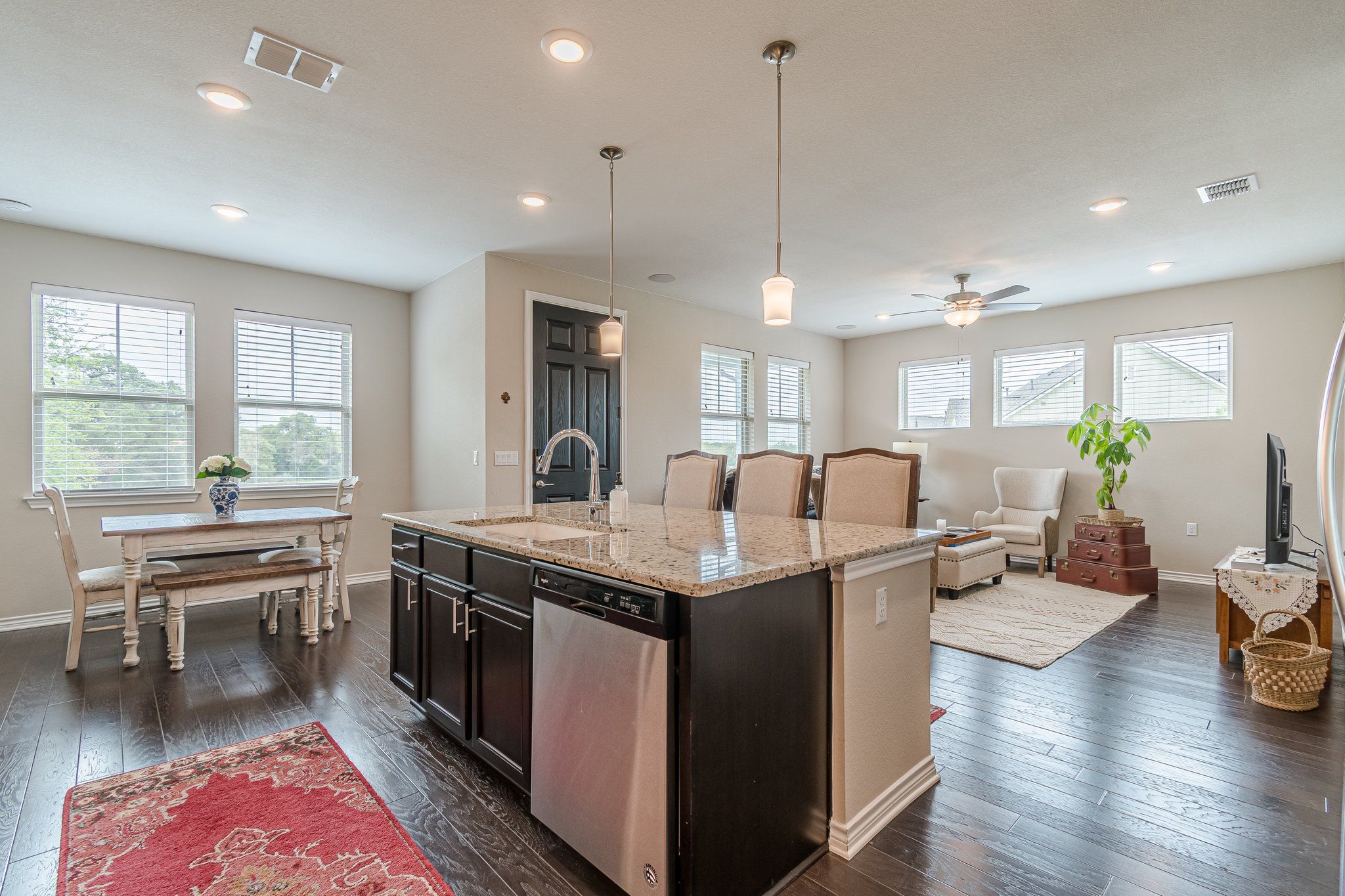 - Breakfast Bar, Ceiling Fan(s), Granite Counters, High Speed Internet, Kitchen Island, Main Level Primary, Pantry