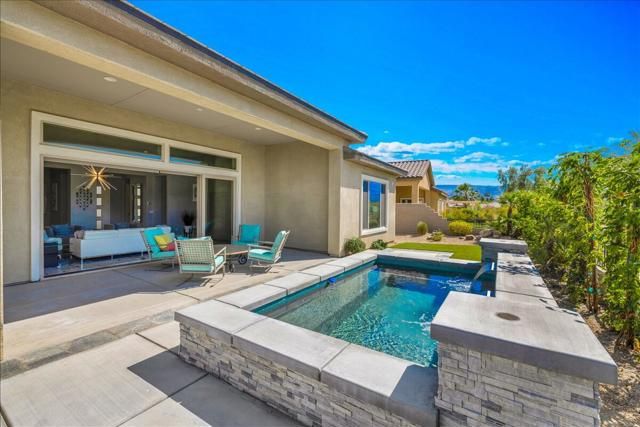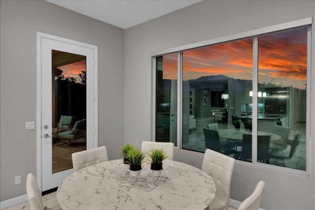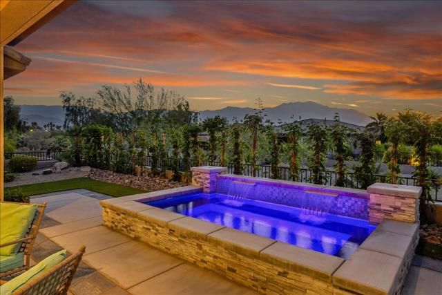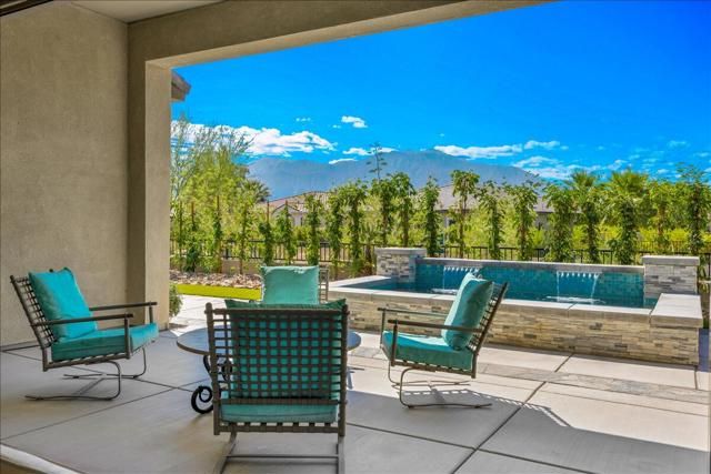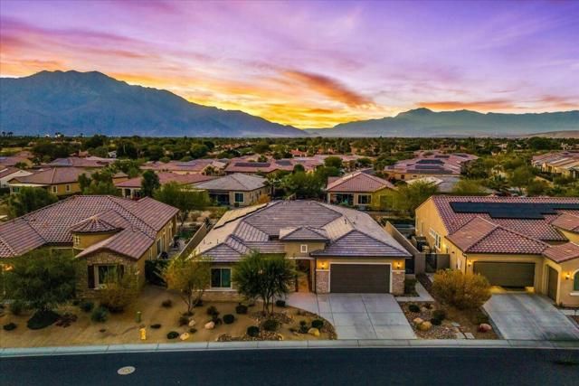 Discover the home dreams are made of--an elevated VIEW lot awaits in Del Webb at Rancho Mirage. Embrace upscale 55+ active adult living. Custom upgrades & amenities abound in this popular JOURNEY plan (one of the larger models built). IDEAL phase one location. Elevated, premium lot. Unobstructed West San Jacinto mountain views. Private courtyard. 2 Bedrooms, 2.5 Bath + den home. Soaring 12' ceilings. 15' rolling glass wall beckons to inviting outdoors with spool (combination pool & spa with jets). INSIDE, great room boasts porcelain tile floors. Gourmet kitchen--island/breakfast bar, tile, stainless appliances, extended cabinetry. Butler's pantry w/additional storage, walk-in pantry & laundry. Enjoy views from adjacent dining area or utilize formal dining room. Large primary features spa-like bath, custom designed walk-in closet & direct access to patio. Guest wing provides 2nd suite & (flex room). Home exudes atmosphere of luxury & sophistication. Furnished per inventory. 2-Car PLUS separate golf cart garage. Tesla leased solar. Must see to appreciate finer details. Guard-gated community offers: clubhouse, pools & spa, tennis, pickleball, bocce, fitness, putting green, miles of meandering pathways. Enjoy gorgeous interior, lounge poolside, stargaze, entertain--this resort-like property is the IDEAL place to call HOME!
