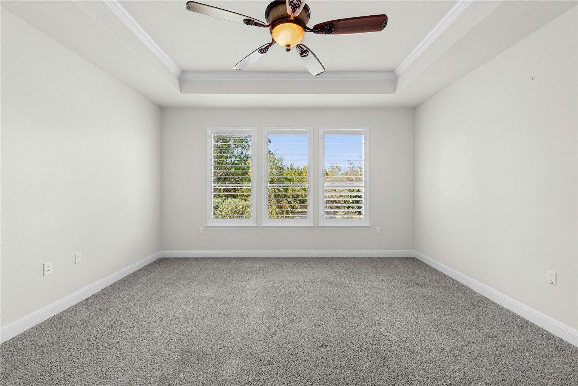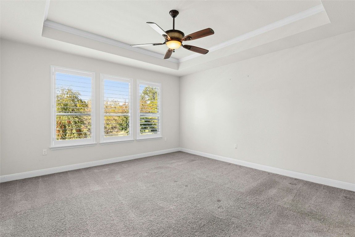 - Breakfast Bar, Built-in Features, Tray Ceiling(s), Ceiling Fan(s), Crown Molding, Separate/Formal Dining Room, Double Vanity, Entrance Foyer, French Door(s)/Atrium Door(s), Granite Counters, High Ceilings, Kitchen Island, Multiple Dining Areas, Main Level Primary, Open Floorplan, Pantry, Recessed Lighting, Storage, Soaking Tub, Walk-In Closet(s), High Speed Internet