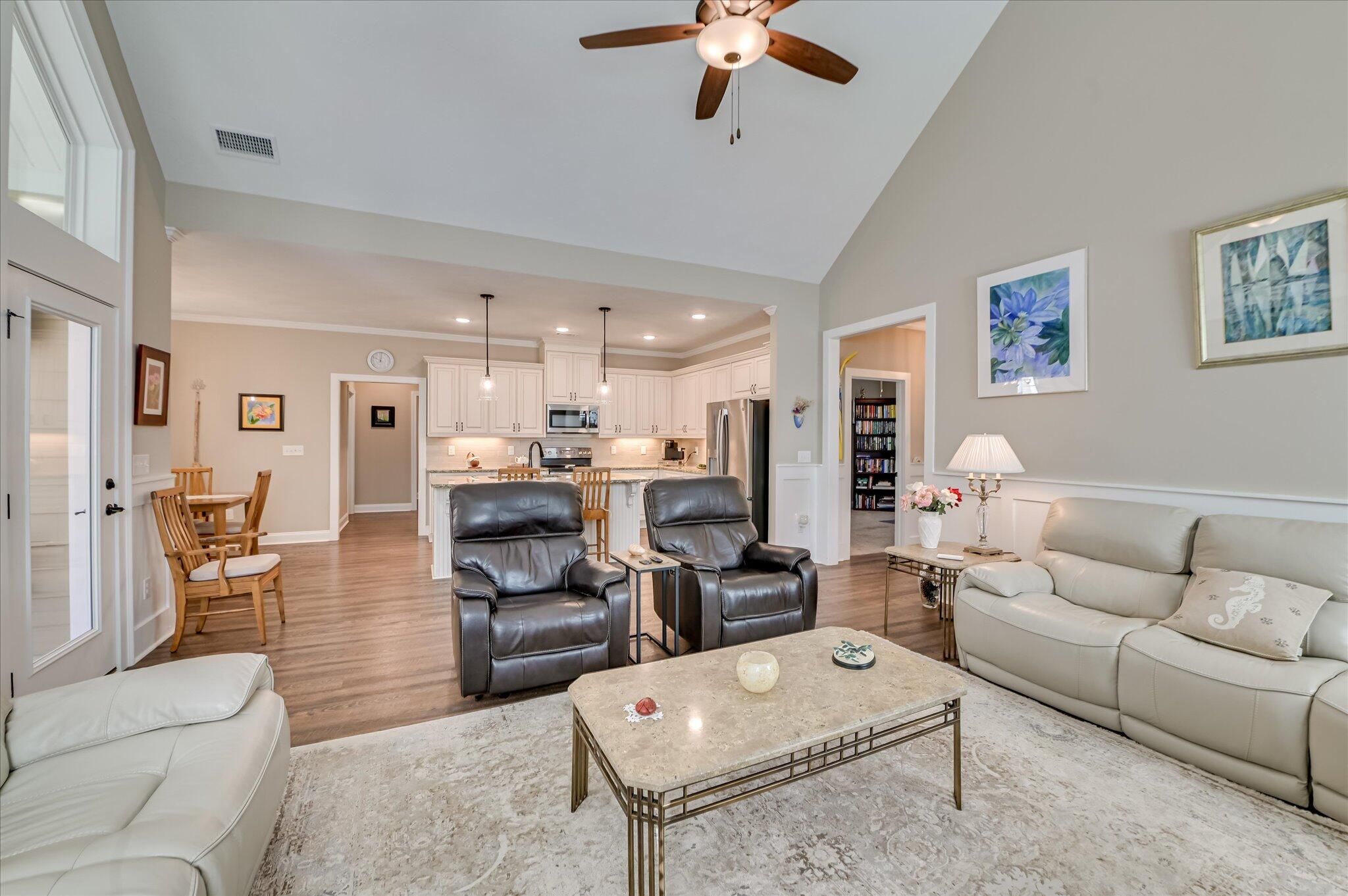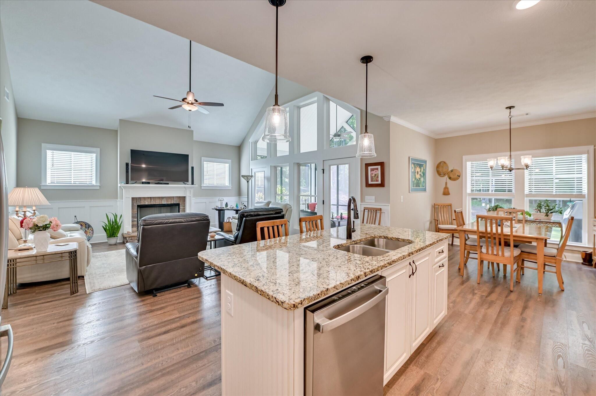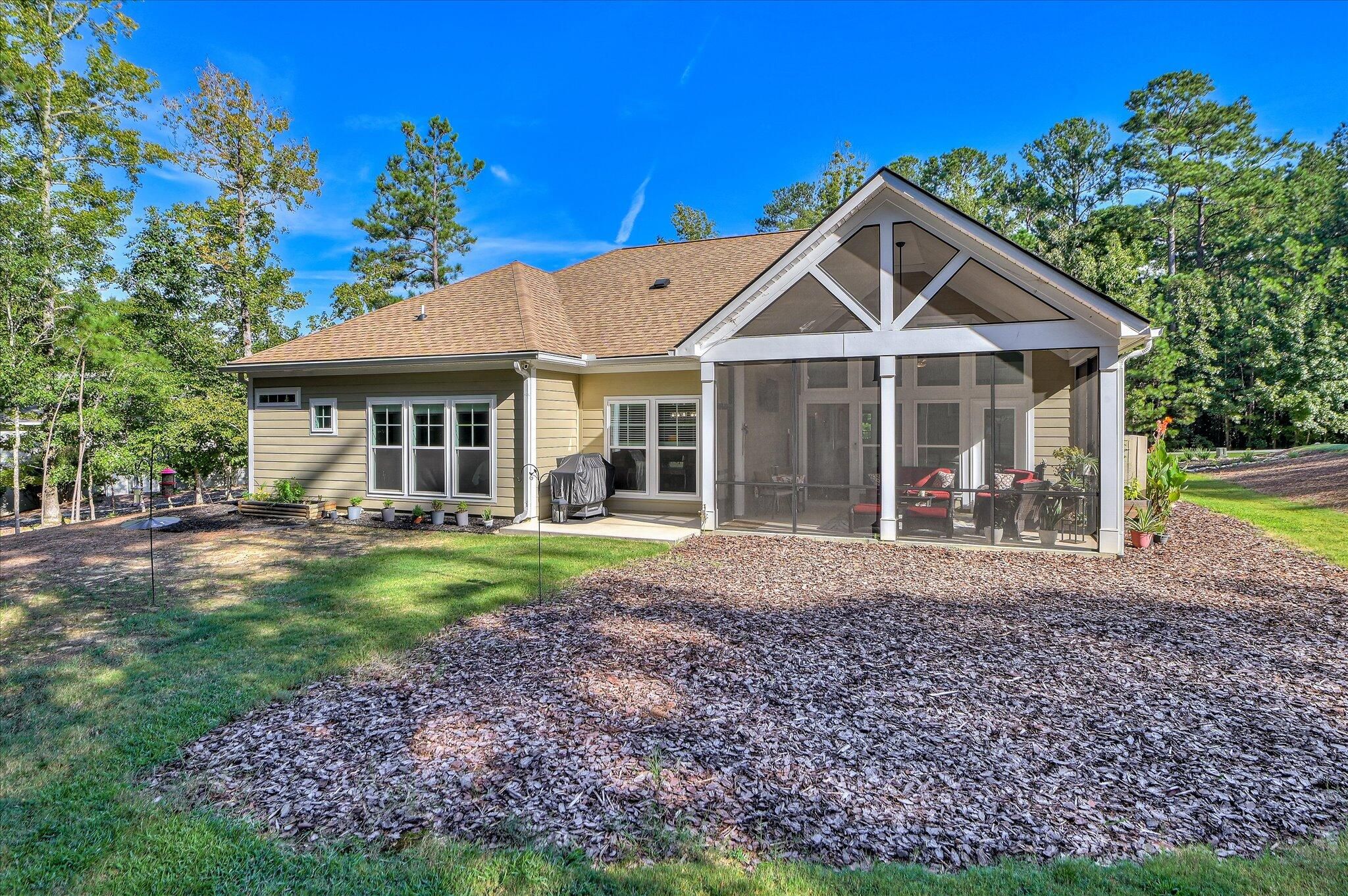 Welcome to 104 Esmont Drive—a nearly new, single-level Preston Floorplan by Lee Builders set on a serene ½-acre cul-de-sac homesite in Savannah Lakes Village. This property backs up to 5.86 acres of wooded SLV common property, ensuring lasting privacy and natural views right from your backyard. Step inside to a light-filled great room with cathedral ceilings, a wall of windows, and a cozy ventless gas-log fireplace. The designer kitchen pairs style and function with solid wood custom cabinetry (not vinyl), a center island, a walk-in pantry, and a seamless flow to the dining area—perfect for everyday living or entertaining. The split-bedroom layout gives the spacious primary suite privacy, highlighted by ceramic-tiled finishes including a zero-entry shower and a generous walk-in closet. Two additional guest bedrooms share a well-appointed hall bath. Durable luxury vinyl plank flooring runs through the main living areas, and the screened rear porch invites you to unwind overlooking the tranquil, wooded backdrop. Practical perks include a Hardie board exterior with stone accents, front & rear irrigation, and an attached two-car garage. From Esmont Drive, a dedicated golf cart trail leads directly to Monticello Golf Course and Monty's restaurant, putting dining and championship golf just minutes from your door. Residents also enjoy the best of lake-country living with quick access and to Lake Thurmond and several boat ramps, two championship golf courses, pools, pickleball/tennis, fitness facilities, and miles of scenic trails. Enjoy the convenience of public utilities, low-maintenance living, and a location that offers both privacy and community connection in one of Savannah Lakes Village's most sought-after neighborhoods.
