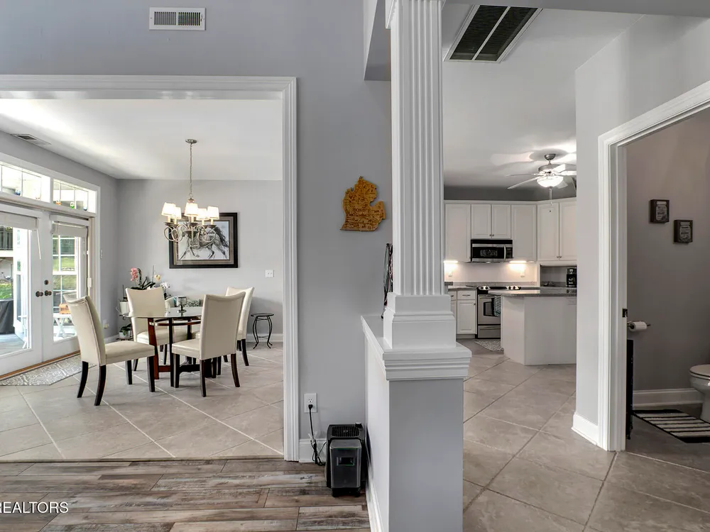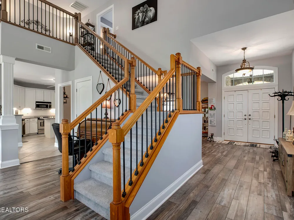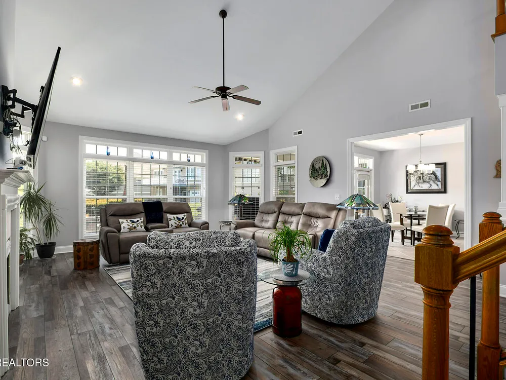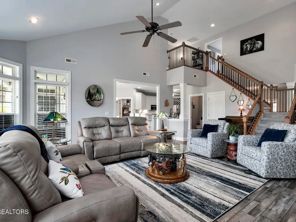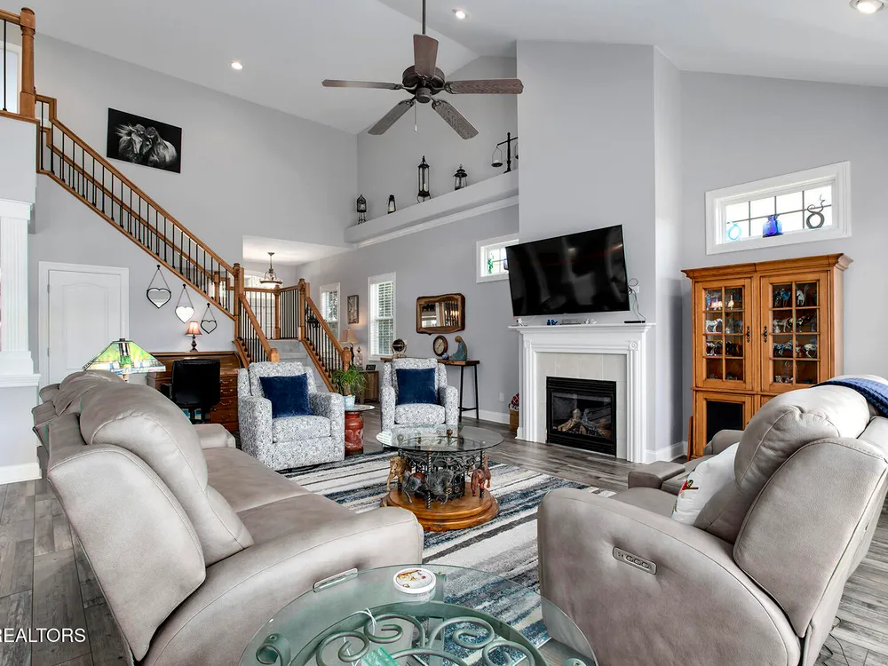 GOLF COURSE, POND, and WATERFALL VIEWS from the back patio. Landscaping maintenance is done for you. Just relax and enjoy this sunny location in this picturesque gated community where views of the Smoky Mountains and Tellico Lake are abundant. The living room with cathedral ceiling and COZY FIREPLACE provide ample room to entertain guests. The large main bedroom, ensuite, and walk-in closets offer the luxury and space you desire. This home has been impeccably maintained. Some of the UPDATES INCLUDE: luxury vinyl tile in the main living areas, new carpeting on stairs and guest bedrooms, driveway pavers and new patio, mini-split in garage for his man cave, painted inside and out. Large storage area in attic over garage. Contact agent for additional updates. Rarity Bay is a GATED community with 24/7 security. This is lakefront living at its best with a championship golf course, fitness center, pool, pickleball and tennis courts, dog park, social and charitable volunteer opportunities galore. On-site access to hiking trails and an equestrian center.