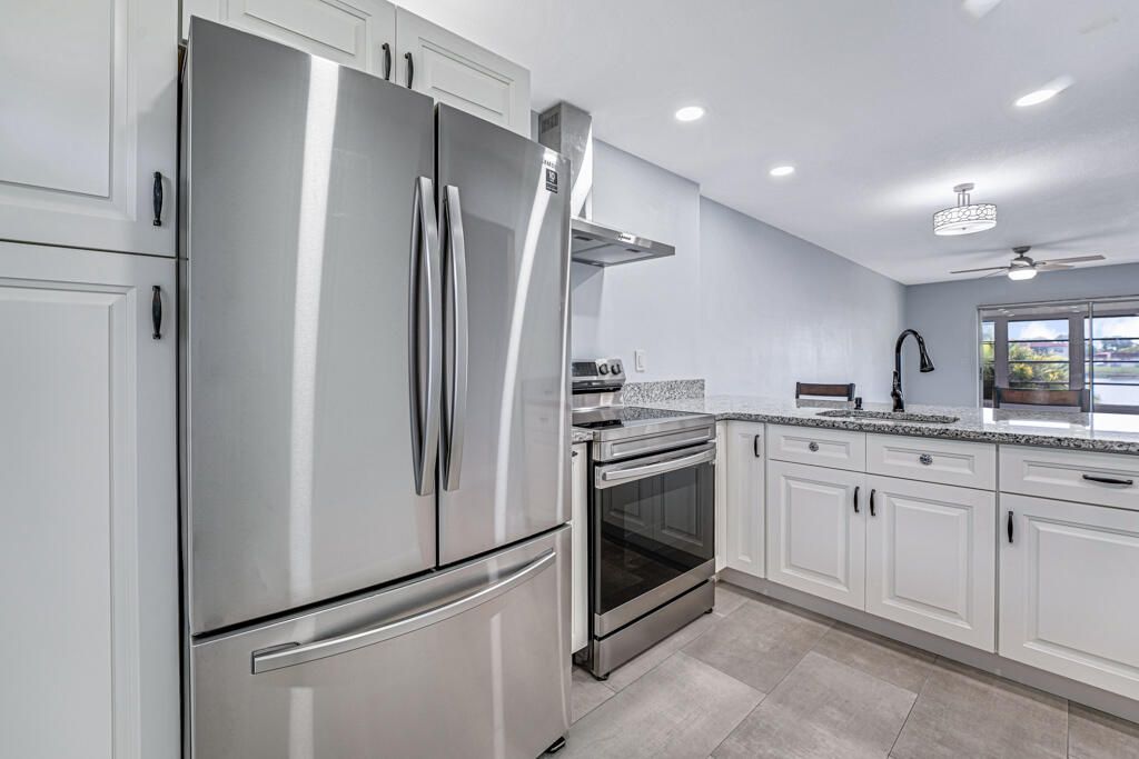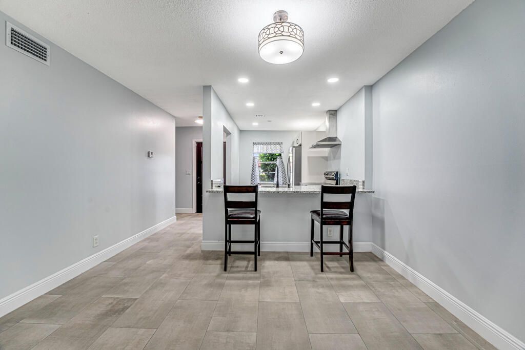 This beautifully renovated end-unit villa boasts modern upgrades throughout, including brand new appliances, custom kitchen cabinets, and luxurious granite countertops. New baseboards, doors (interior and exterior), and door hardware, along with matching shower sets, bathroom accessories, light fixtures, and cabinet pulls, create a cohesive and stylish design. The villa has been freshly painted, offering an elegant, contemporary feel in every room. Enjoy the convenience of a new full-size washer and dryer, as well as a master bedroom with an en-suite bath and a walk-in closet. The entire home features porcelain flooring, and the guest bathroom has been completely updated. The enclosed backyard porch showcases charming Mexican tile, adding character and warmth. A new 2024 2-ton A/C unit
