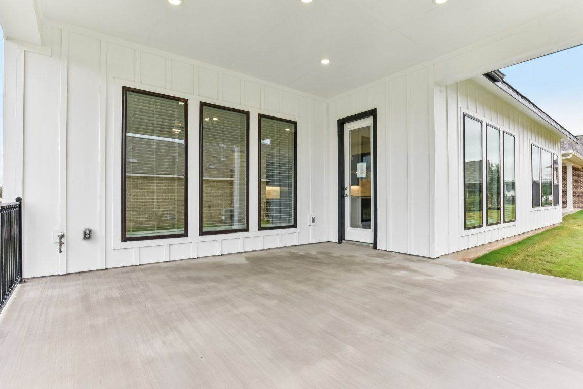 Auburn plan with upgraded kitchen, quartz countertops, tile flooring, tray ceilings in entry and master, optional study with double doors, optional half bath, optional cabinets in utility room with sink, upgraded bronze framed windows, 4' garage extension, enlarged covered patio