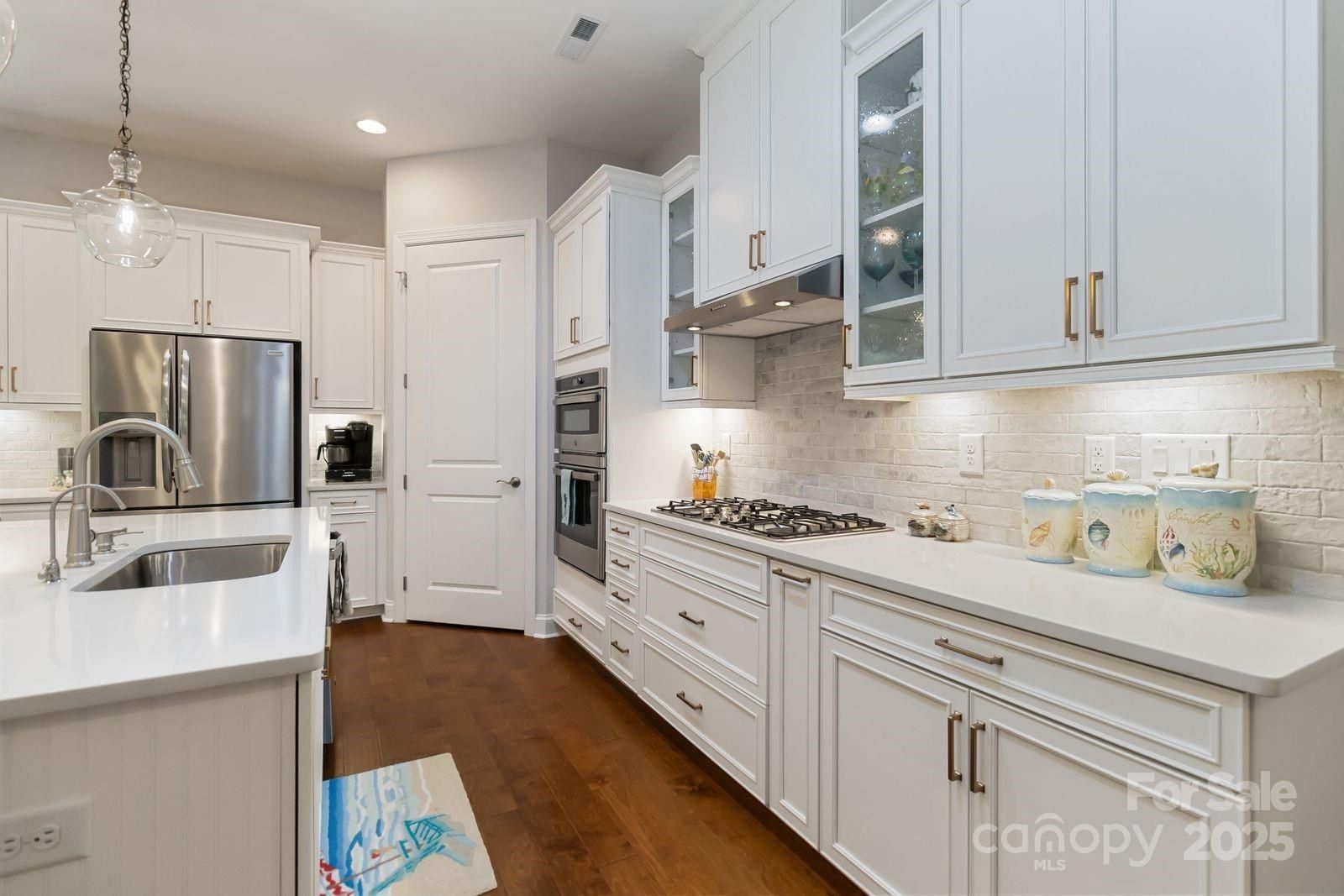- Convection Microwave, Dishwasher, Disposal, Down Draft, Exhaust Fan, Exhaust Hood, Gas Cooktop, Refrigerator, Wall Oven, Wine Refrigerator