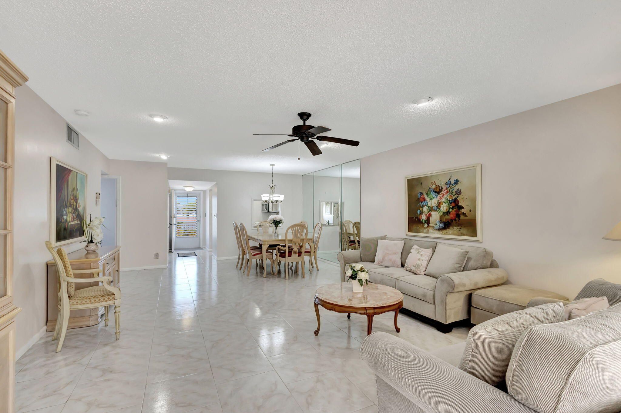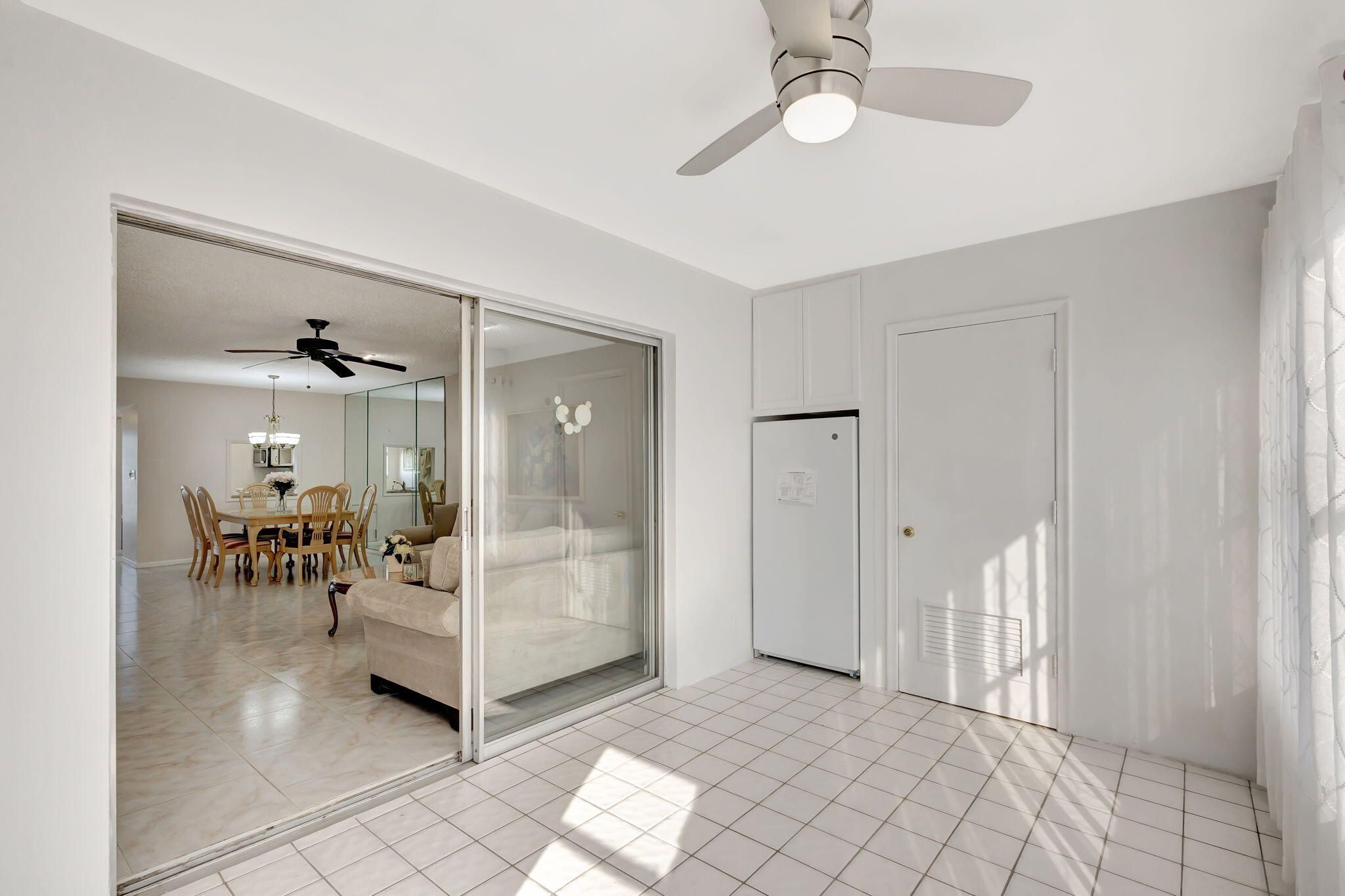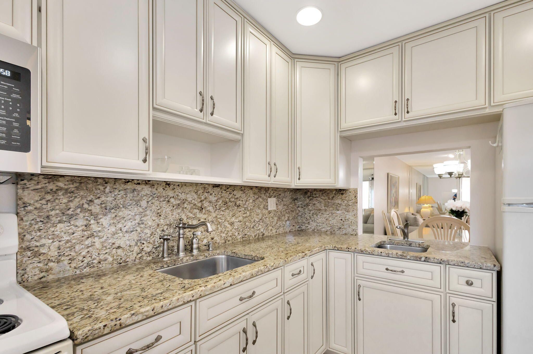LOVELY AND SPACIOUS 2 BED 2 FULL BATH UNIT. CUSTOM KITCHEN WITH TWO SINKS, PLENTY OF STORAGE SPACE, GRANITE COUNTER TOPS LARGE TILE FLOORING THROUGHOUT. NEWLY FURNISHED WASHER/DRYER IN UNIT. EXTRA LARGE ROOMS. MASTER BEDROOM HAS ENSUITE BATHROOM AND A VERY LARGE WALK IN CLOSET. CENTRAL AIR, LARGE ENCLOSED LANAI WITH ITS OWN AIR CONDITIONER AND EXTRA FREEZER. PLYMOUTH HAS ITS OWN POOL AND WATER IS INCLUDED IN THE MONTHLY MAINTENANCE SHORT WALK TO HASTING FITNESS CENTER AND THE CLUBHOUSE COME AND ENJOY RESORT STYLE LIVING IN THIS GATED COMMUNITY FOR ADULTS 55+. Clubhouse with theater, shows, movies, craft and card rooms, billiards, aerobics, yoga, and dance classes. Numerous heated outdoor pools throughout the community. Separate fitness center with gym , outdoor heated pool and a resi Numerous heated outdoor pools throughout the community. Separate fitness center with gym , outdoor heated pool and a resistance pool. Two guarded gates and 24 hour roving security patrol. GREAT LOCATION: close to shops, restaurants, PBI airport and beaches.