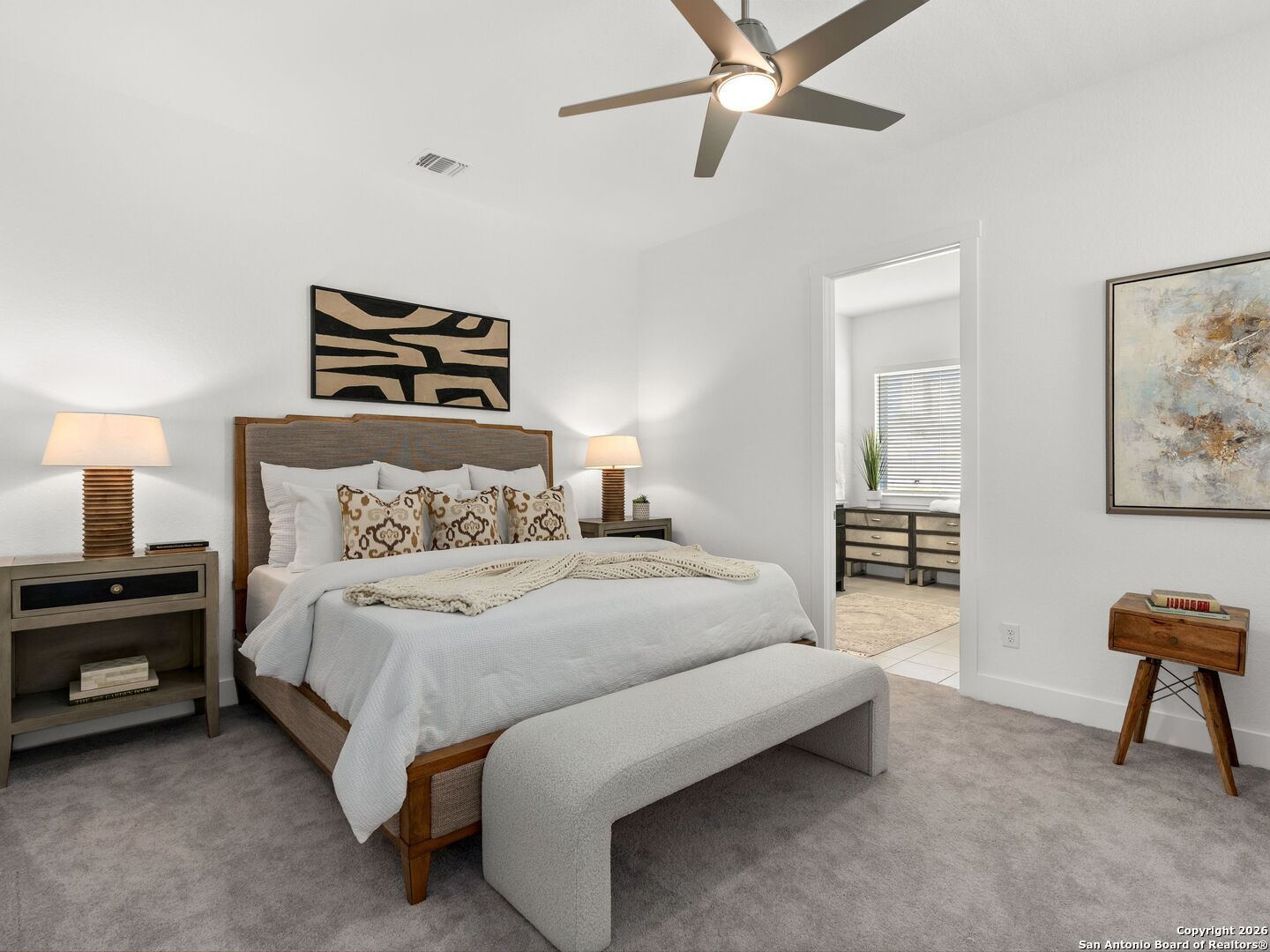 NOW AVAILABLE FOR LEASE OR LEASE PURCHASE . Walk across the street of your new home to a resort style amenity center designed for active adults! Enjoy a private club house, entertainment rooms, fitness center, pools, pickle ball and bocce courts. This Hill Country haven offers the ultimate blend of comfort and serenity. New construction by Toll Bros with immediate occupancy, one-story home in the Regency section (Active Adults 55+) embodies modern luxury while harmonizing with its natural surroundings. Open floor plan with plenty of natural light, gourmet kitchen with 5 burner gas cooktop and 10 foot island! Tile to ceiling in baths, backyard with stone fence and covered patio. The Esperanza community also has a lazy river, fitness center, walking and biking trails, sand volleyball, multiple pools, dog park, live music area, food truck court. Staged furnishings in some of the still photos. Quick 5 minutes to Center of Boerne.