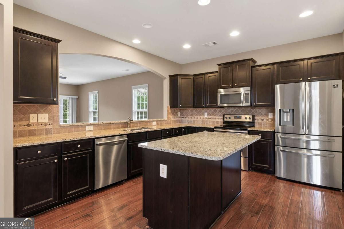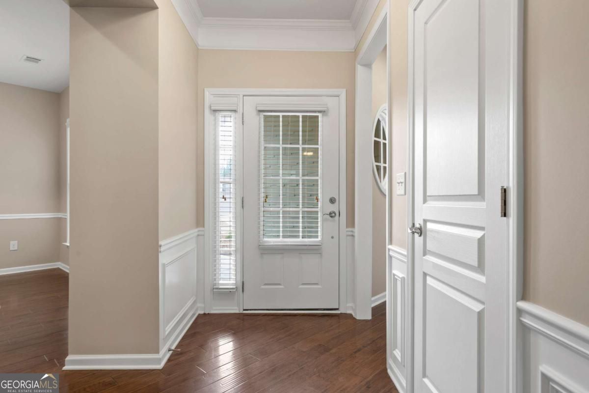 Discover the sought-after Surrey Crest model, built in 2015 and beautifully designed for comfort and style. A spacious chef-inspired kitchen welcomes you with gorgeous granite countertops, rich dark wood cabinets, and a large eat-in breakfast area perfect for everyday dining. The open living room features wide-plank hardwood floors and an abundance of natural light, with windows and doors that lead to the patio and a large, private backyard-an ideal setting for relaxing or entertaining. The owner's suite feels like a retreat, offering tray ceilings, a huge walk-in closet, and a well-appointed bath with double vanity and walk-in shower. A dedicated office with French doors provides the perfect space for work, hobbies, or quiet reading. The extended garage is a true bonus, complete with built-in cabinets and additional attic storage-ideal for tools, projects, or seasonal items. Enjoy all the unmatched amenities that Del Webb is known for, including indoor and outdoor pools, clubhouse, pavilion, community docks, boat and kayak storage, pickleball, tennis, bocce, dog park, walking trails, playground, lawn service, and so much more. Come see why this community is loved for its Active Adult Lifestyle-your next chapter begins here.