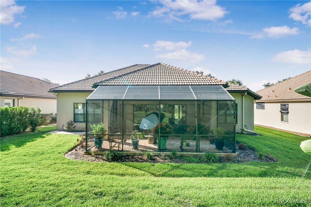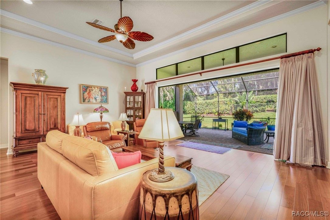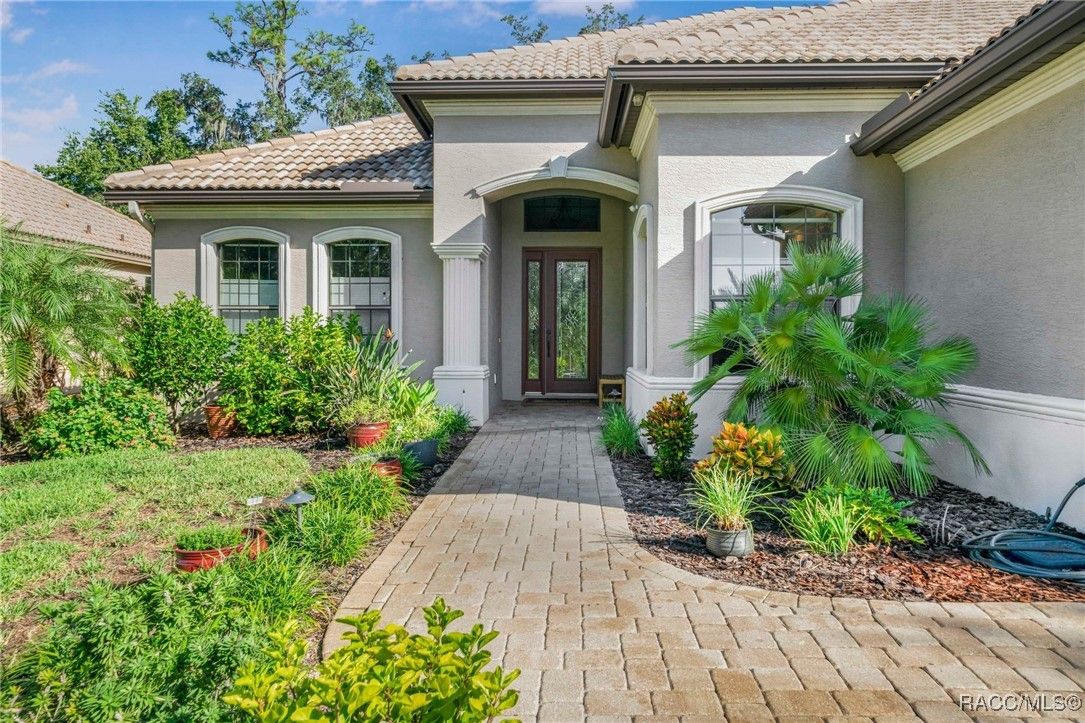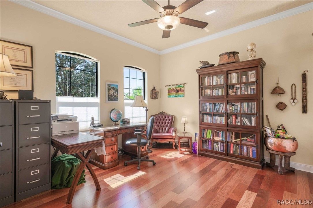 THIS BEAUTIFUL HOME is loaded with upgrades - beginning with the wide brick driveway and extra wide walkway to the entrance - right to the oversized two car garage with a designated golf cart space. The open floor plan features hardwood flooring and tile throughout the living area as well as crown molding. There are five ceiling fans throughout the home and the kitchen boasts an induction stove top, new garbage disposal and plenty of cabinets. The large primary suite features a soaking tub and huge closet. The guest bedroom and bath provide ample space for family and friends, as well as an additional room that is currently an office but can also be used as a bedroom. The half bath has been updated with a new vanity and all bathrooms have grab bars and towel racks. All this opens to an extended lanai and the gorgeous back yard beyond. East and west lanai screens were also recently installed for comfort during the hot summer days. The garage is insulated and has a mini split AC unit as well. Make this your new home and enjoy all the amenities Citrus Hills has to offer - swimming pools, restaurants, walking trails, golf and so much more!