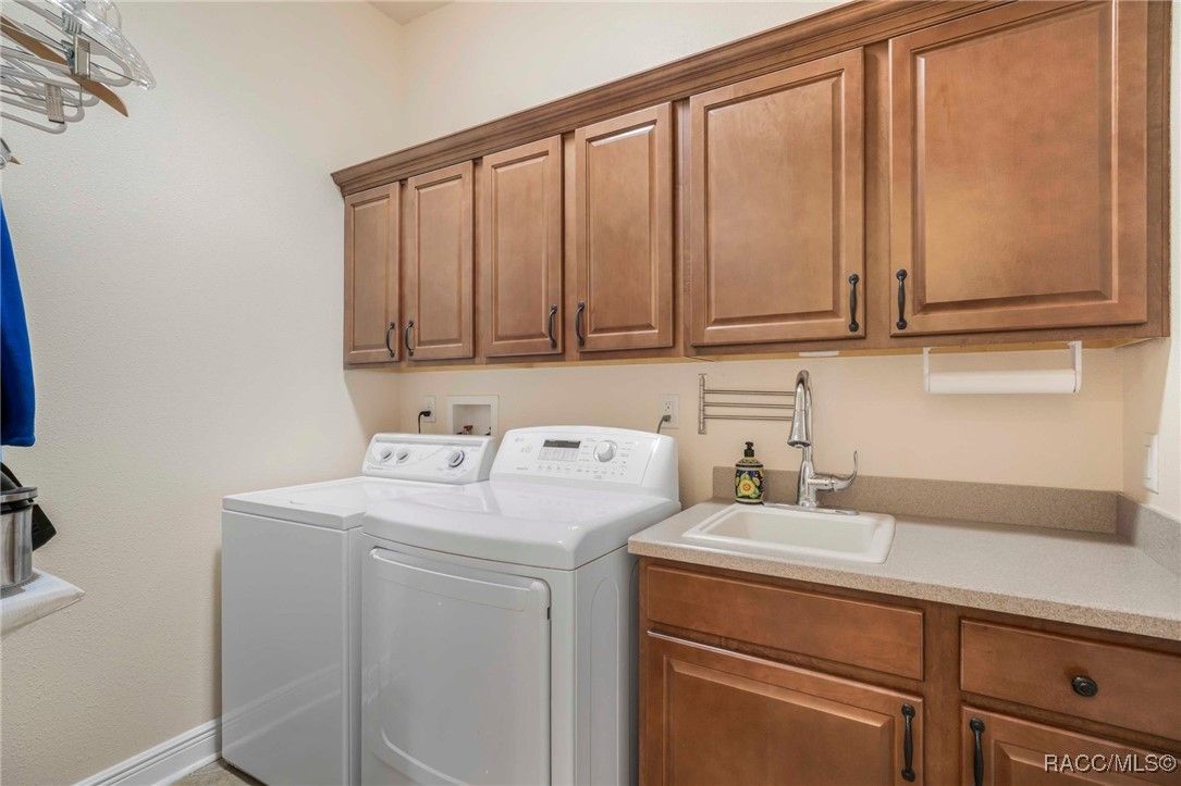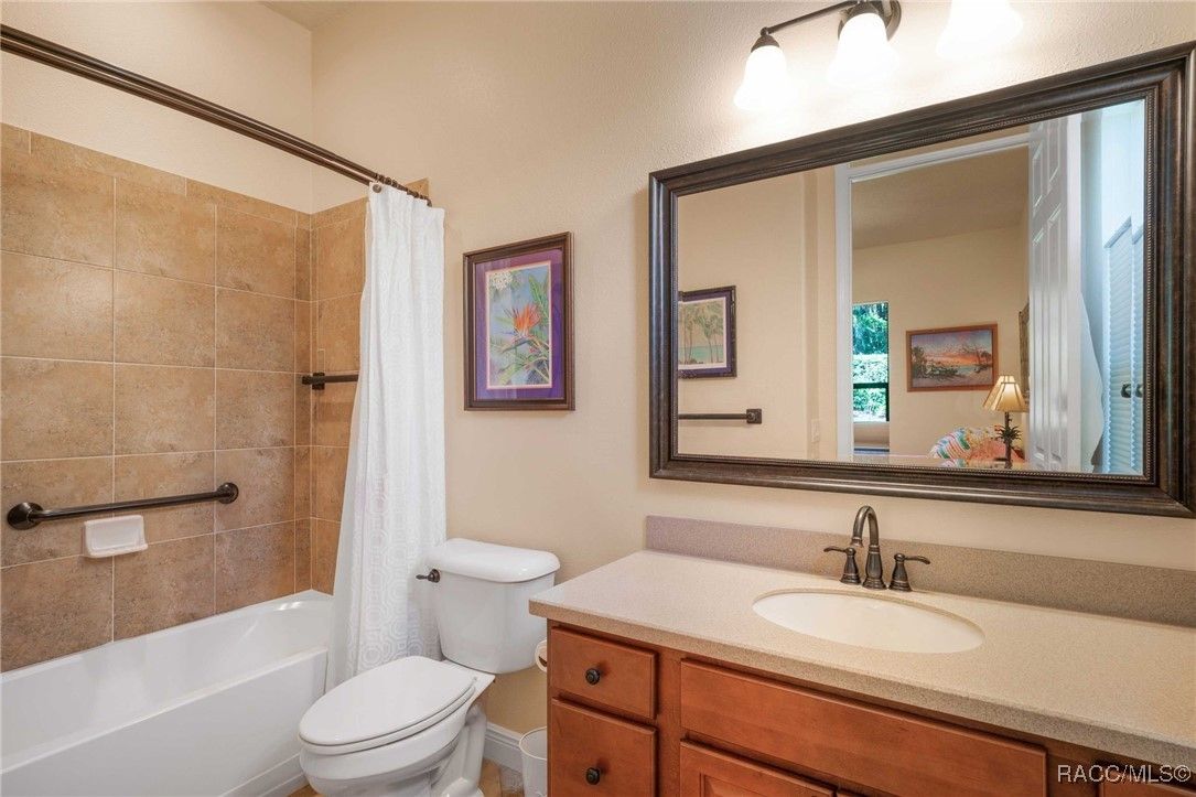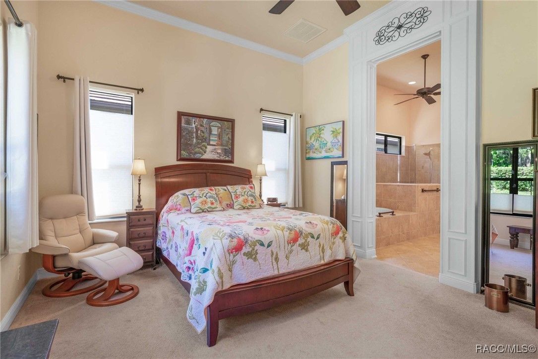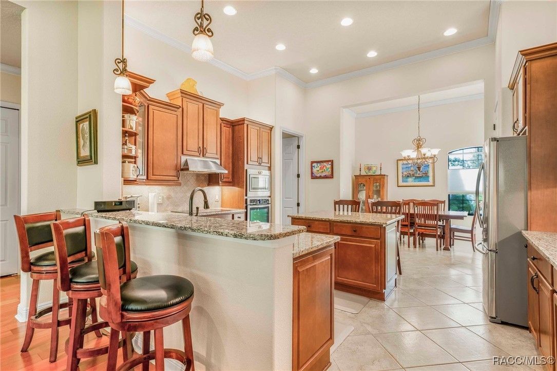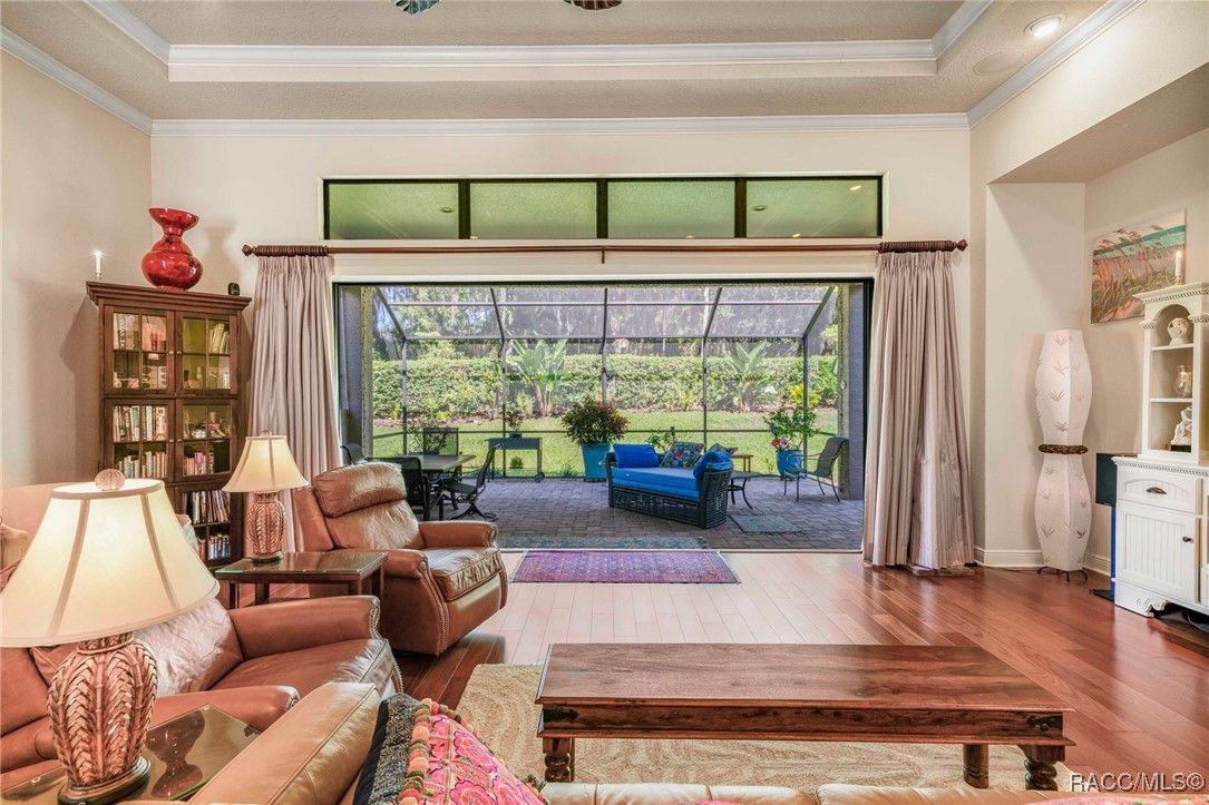 THIS BEAUTIFUL HOME is loaded with upgrades - beginning with the wide brick driveway and extra wide walkway to the entrance - right to the oversized two car garage with a designated golf cart space. The open floor plan features hardwood flooring and tile throughout the living area as well as crown molding. There are five ceiling fans throughout the home and the kitchen boasts an induction stove top, new garbage disposal and plenty of cabinets. The large primary suite features a soaking tub and huge closet. The guest bedroom and bath provide ample space for family and friends, as well as an additional room that is currently an office but can also be used as a bedroom. The half bath has been updated with a new vanity and all bathrooms have grab bars and towel racks. All this opens to an extended lanai and the gorgeous back yard beyond. East and west lanai screens were also recently installed for comfort during the hot summer days. The garage is insulated and has a mini split AC unit as well. Make this your new home and enjoy all the amenities Citrus Hills has to offer - swimming pools, restaurants, walking trails, golf and so much more!