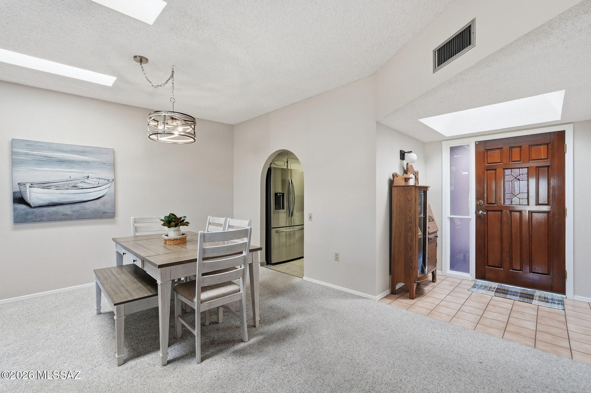 This well-maintained home is located in the desirable 55+ Canoa Hills Townhomes community where lots are designed for privacy. The spacious interior has been recently painted. A newly added skylight fills the home with abundant natural light. The spacious living and dining area features a charming kiva gas fireplace and a wet bar, perfect for entertaining. The primary bedroom offers a walk-in closet and a sliding door that opens directly to a private and low maintenance backyard. The primary bathroom has been tastefully updated with a newly tiled shower.A versatile den with pocket doors provides an ideal space for a home office or hobby room. Additional upgrades include new ceiling fans throughout and plantation shutters and a newer HVAC unit.