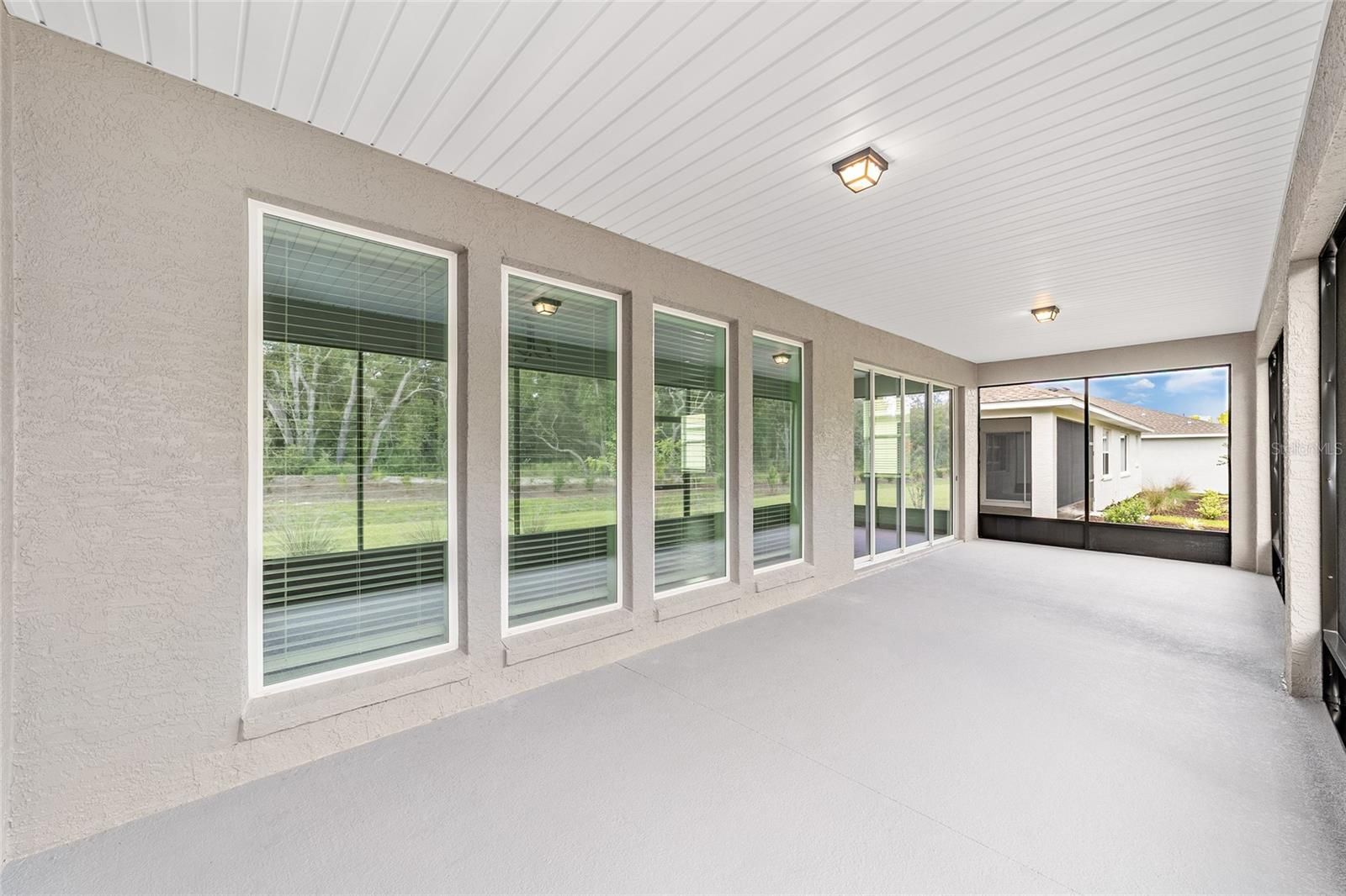 INCENTIVE! UP TO $15K IN CLOSING COST! Elegant Magnolia Model in LongLeaf Ridge at On Top of the World! Discover refined living in this beautifully crafted Magnolia model, featuring 2 bedrooms, 2.5 bathrooms, a flex room with French doors, a 2-car garage, and a golf cart garage. Designed with an open floor plan and elegant tray ceilings, this home blends modern sophistication with everyday comfort. The gourmet kitchen is a chef’s dream, showcasing staggered cabinets with crown molding, quartz countertops, stainless steel appliances, a built-in oven and microwave, a range cooktop, under-cabinet lighting, a walk-in pantry, and a spacious L-shaped island perfect for entertaining. The dining area boasts four floor-to-ceiling windows overlooking the backyard, while the living area features a 4-panel sliding glass door leading to the screened lanai — all with no rear neighbors for added tranquility. The primary suite offers a serene retreat with a tray ceiling, 3-panel window overlooking the backyard, and a luxurious ensuite complete with dual quartz vanities, a zero-entry tiled walk-in shower with built-in bench, and a large walk-in closet. The guest suite includes its own private ensuite with a quartz vanity and tub/shower combination, providing comfort and privacy for guests. Experience the unmatched lifestyle of On Top of the World — Ocala’s premier 55+ active adult community offering world-class amenities, golf, fitness, swimming, and countless social activities designed to enhance every day.