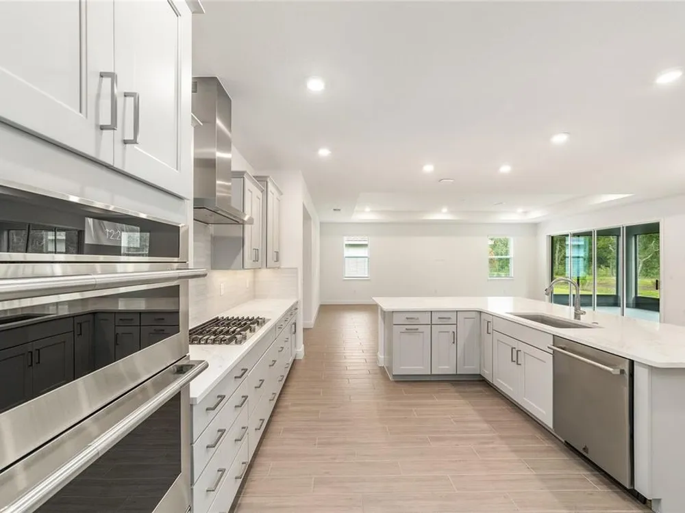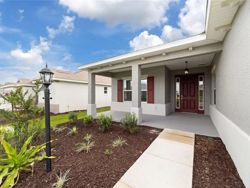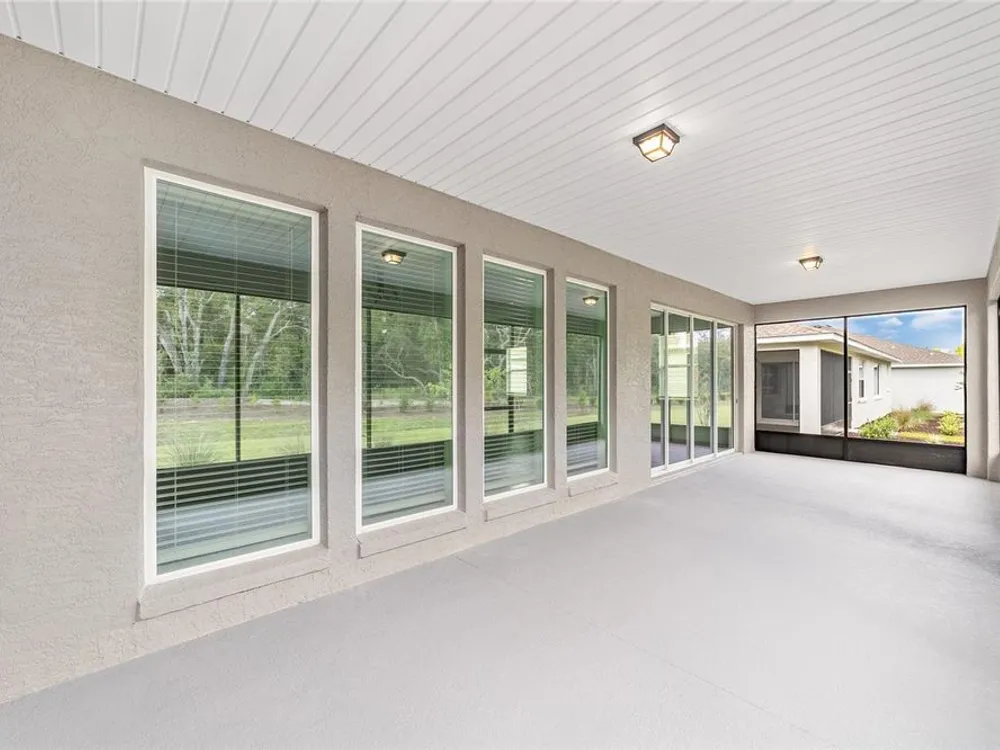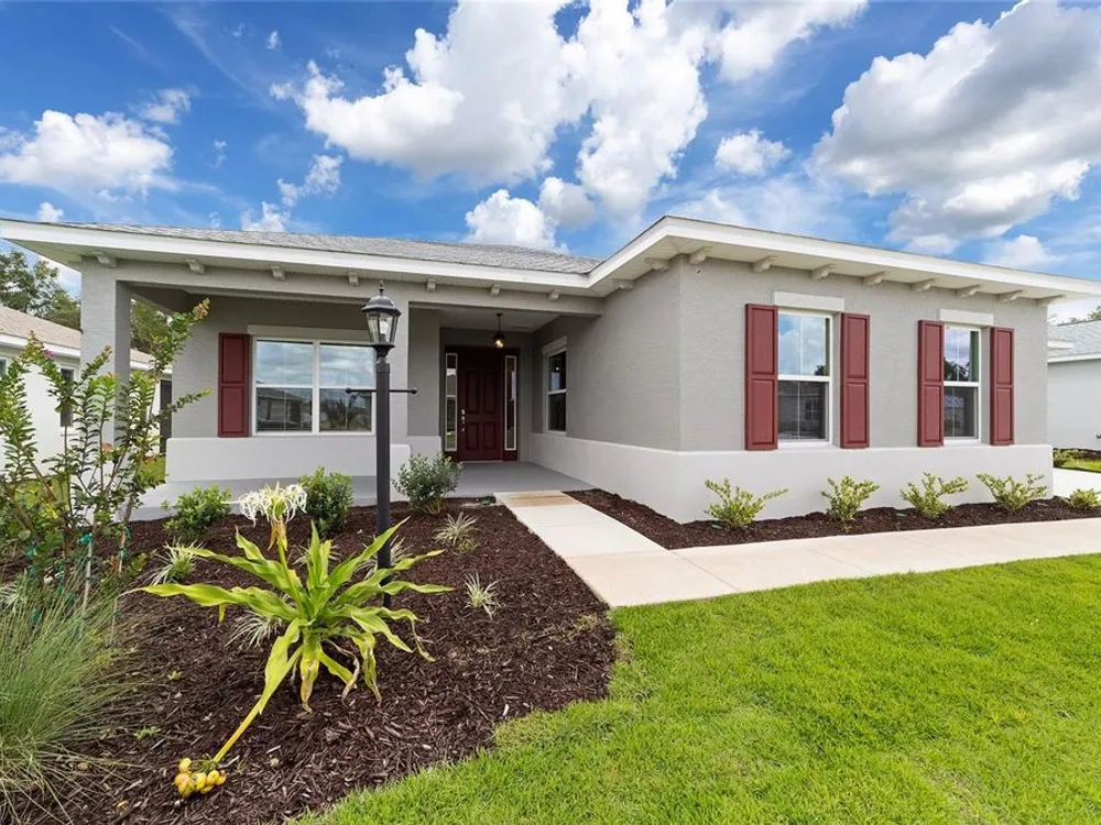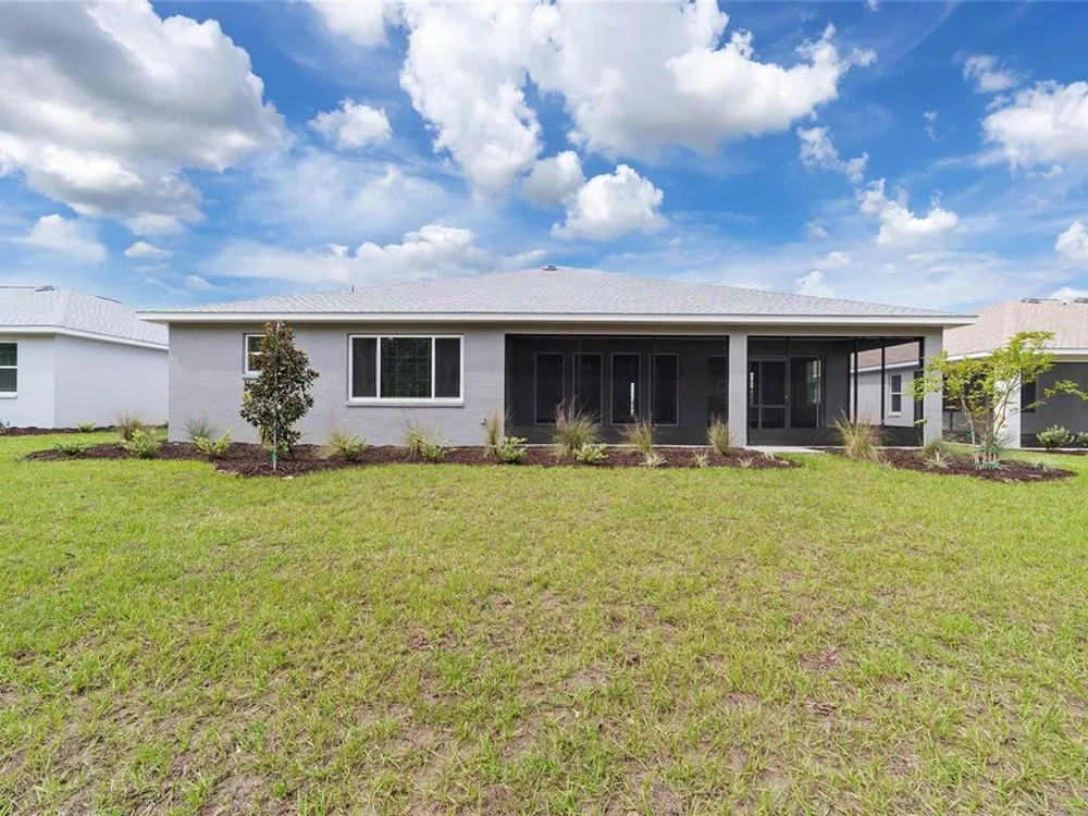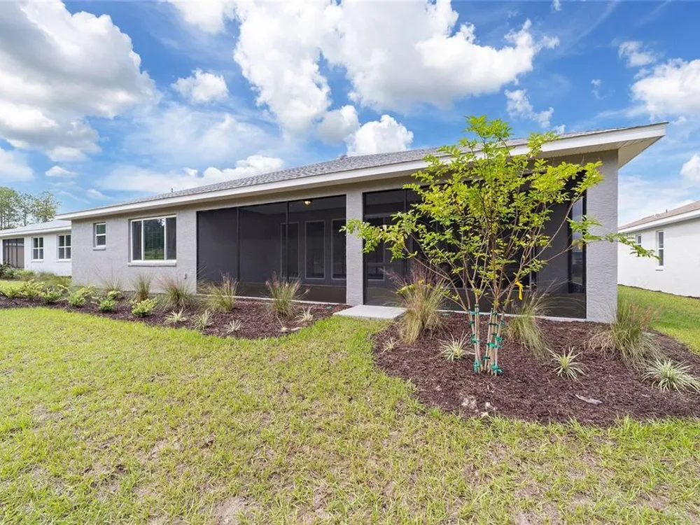 Elegant Magnolia Model in LongLeaf Ridge at On Top of the World! Discover refined living in this beautifully crafted Magnolia model, featuring 2 bedrooms, 2.5 bathrooms, a flex room with French doors, a 2-car garage, and a golf cart garage. Designed with an open floor plan and elegant tray ceilings, this home blends modern sophistication with everyday comfort. The gourmet kitchen is a chef’s dream, showcasing staggered cabinets with crown molding, quartz countertops, stainless steel appliances, a built-in oven and microwave, a range cooktop, under-cabinet lighting, a walk-in pantry, and a spacious L-shaped island perfect for entertaining. The dining area boasts four floor-to-ceiling windows overlooking the backyard, while the living area features a 4-panel sliding glass door leading to the screened lanai — all with no rear neighbors for added tranquility. The primary suite offers a serene retreat with a tray ceiling, 3-panel window overlooking the backyard, and a luxurious ensuite complete with dual quartz vanities, a zero-entry tiled walk-in shower with built-in bench, and a large walk-in closet. The guest suite includes its own private ensuite with a quartz vanity and tub/shower combination, providing comfort and privacy for guests. Experience the unmatched lifestyle of On Top of the World — Ocala’s premier 55+ active adult community offering world-class amenities, golf, fitness, swimming, and countless social activities designed to enhance every day.