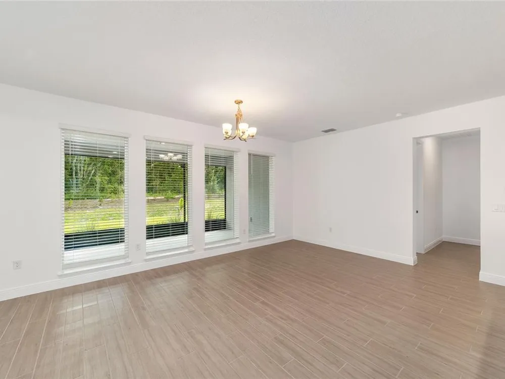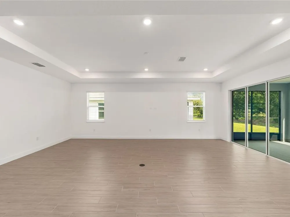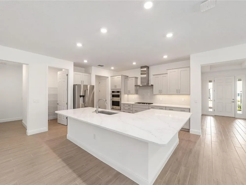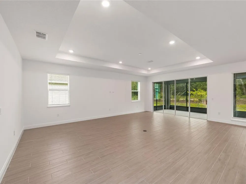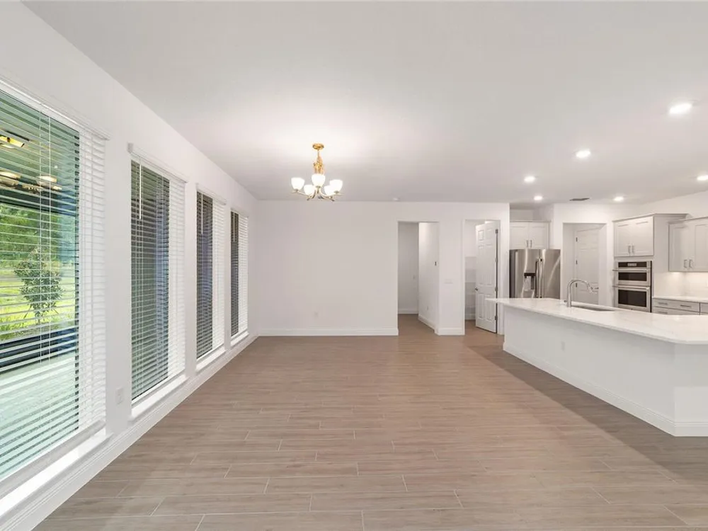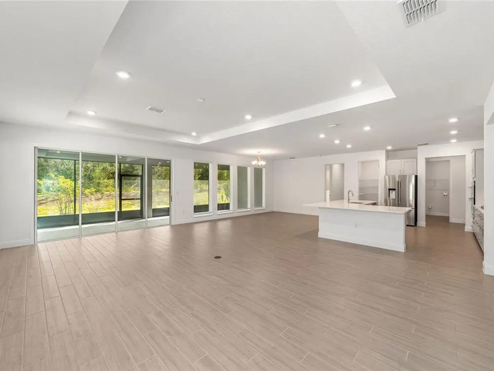 Elegant Magnolia Model in LongLeaf Ridge at On Top of the World! Discover refined living in this beautifully crafted Magnolia model, featuring 2 bedrooms, 2.5 bathrooms, a flex room with French doors, a 2-car garage, and a golf cart garage. Designed with an open floor plan and elegant tray ceilings, this home blends modern sophistication with everyday comfort. The gourmet kitchen is a chef’s dream, showcasing staggered cabinets with crown molding, quartz countertops, stainless steel appliances, a built-in oven and microwave, a range cooktop, under-cabinet lighting, a walk-in pantry, and a spacious L-shaped island perfect for entertaining. The dining area boasts four floor-to-ceiling windows overlooking the backyard, while the living area features a 4-panel sliding glass door leading to the screened lanai — all with no rear neighbors for added tranquility. The primary suite offers a serene retreat with a tray ceiling, 3-panel window overlooking the backyard, and a luxurious ensuite complete with dual quartz vanities, a zero-entry tiled walk-in shower with built-in bench, and a large walk-in closet. The guest suite includes its own private ensuite with a quartz vanity and tub/shower combination, providing comfort and privacy for guests. Experience the unmatched lifestyle of On Top of the World — Ocala’s premier 55+ active adult community offering world-class amenities, golf, fitness, swimming, and countless social activities designed to enhance every day.