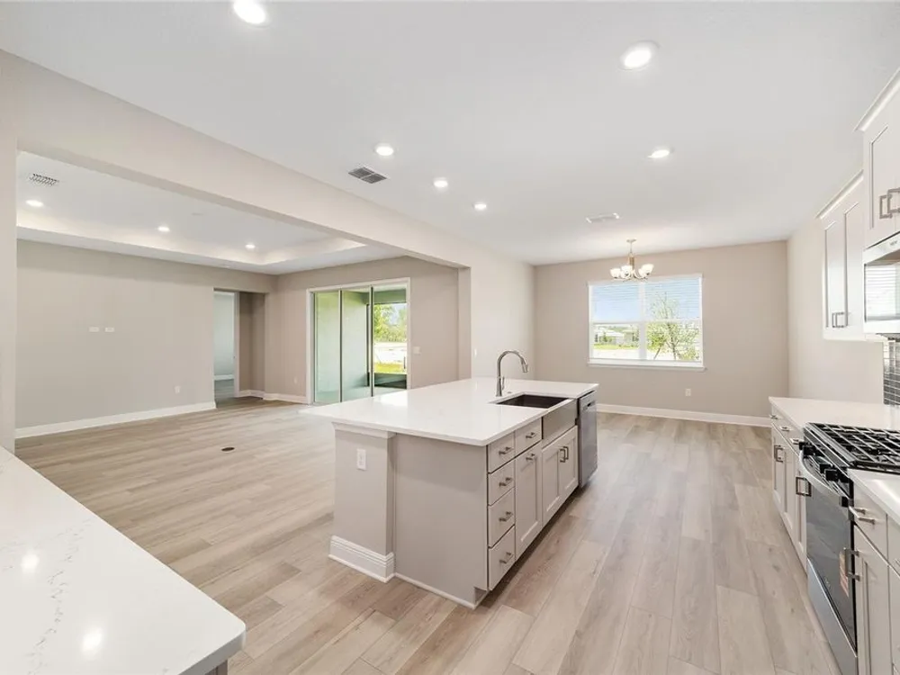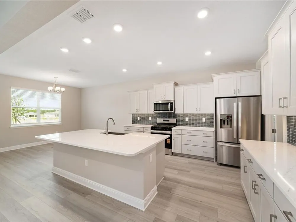 Stunning Beaumont in Longleaf Ridge! This beautiful new construction Beaumont model offers over 2,200 sq ft of stylish, open-concept living in the highly sought-after Longleaf Ridge neighborhood of On Top of the World. Featuring 2 bedrooms, 2 bathrooms, a versatile flex room with French doors, and a 2-car garage with golf cart parking, this home is designed for modern living and effortless comfort. The gourmet kitchen is a chef’s dream, showcasing stainless steel appliances, staggered cabinets with crown molding, under-cabinet lighting, quartz countertops, a large center island, and a spacious walk-in pantry. The great room features tray ceilings and a 3-panel sliding door that opens to the screened lanai—perfect for enjoying Florida’s indoor-outdoor lifestyle. The primary suite is a serene retreat with a tray ceiling, two windows overlooking the backyard, and a luxurious ensuite with a double quartz vanity, a zero-entry tiled shower with a built-in bench, and a generous walk-in closet. Bedroom two offers a roomy closet and is conveniently located near the second full bath, complete with a quartz-topped vanity and tub/shower combo. Located in the vibrant On Top of the World community, residents enjoy resort-style amenities, golf, recreation, and an active lifestyle surrounded by natural beauty and modern convenience.