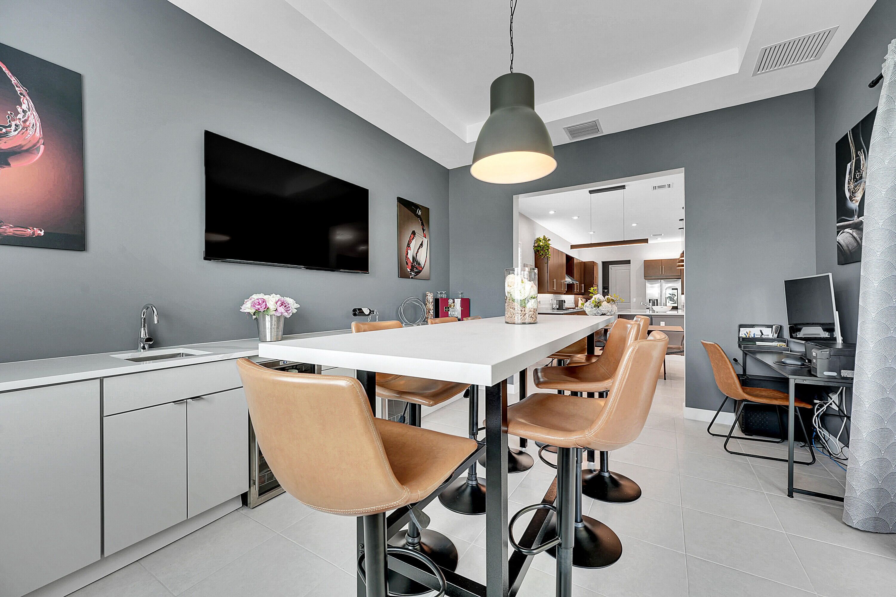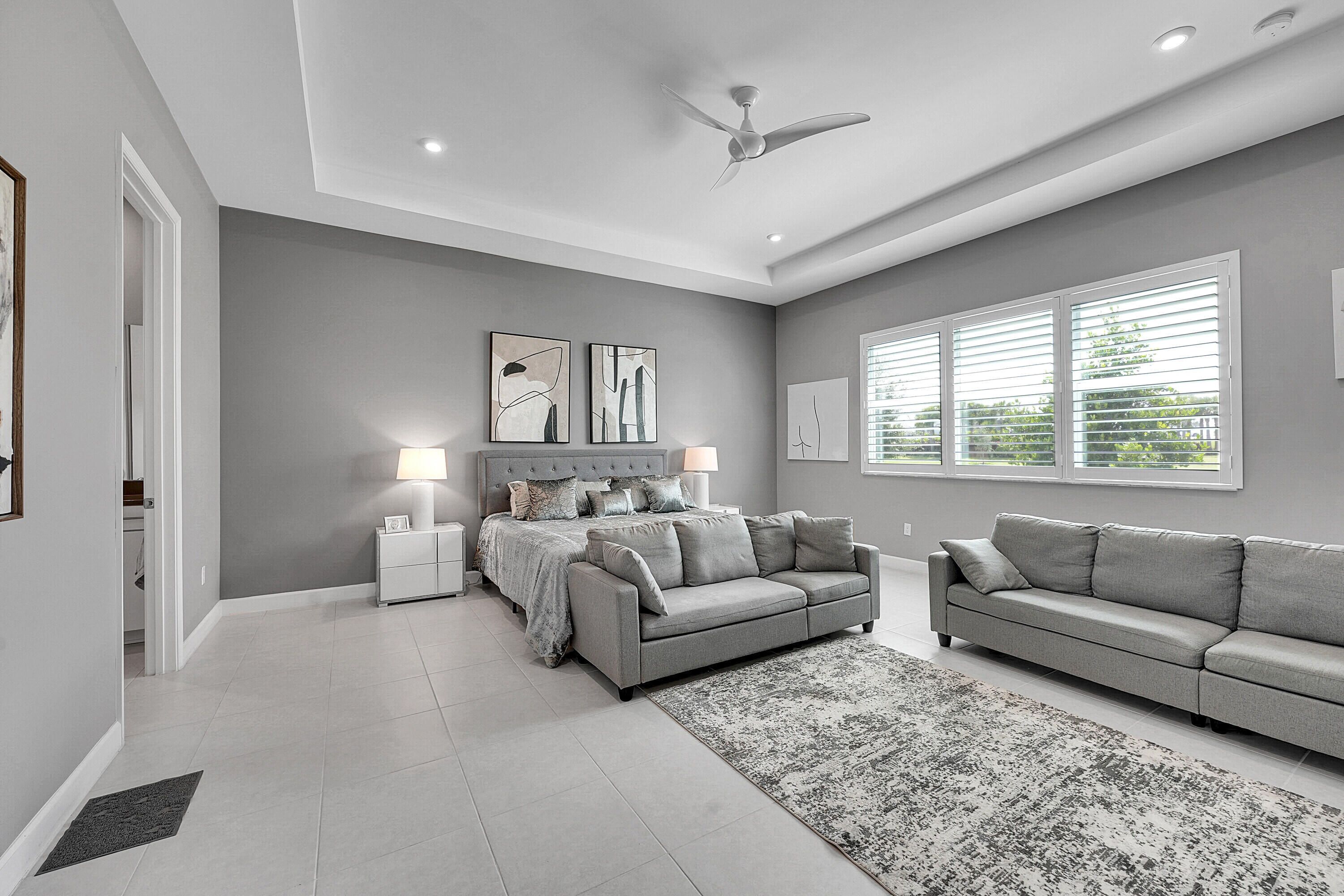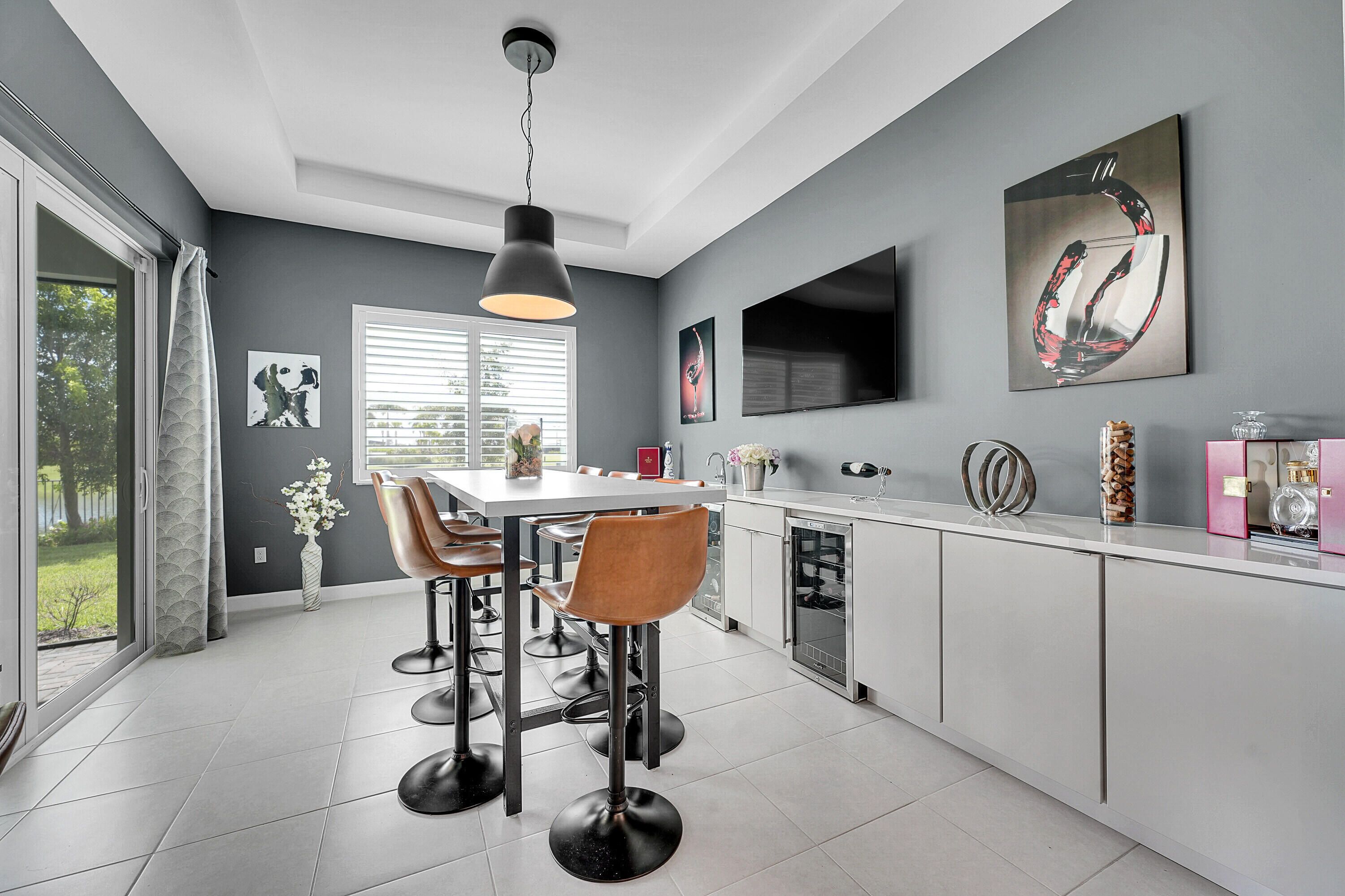 Built in 2022! Lakefront single-family home offers modern luxury living with a spacious open-concept design. Featuring impact windows with Plantation Shutters! Impact doors, a double-door entry, and a 2-car garage with resin flooring. The gourmet kitchen overlooks the family area and includes a large cooking island, upgraded wood cabinetry, a gas stove, a spacious pantry, under-cabinet LED l, lights, and a separate Custom quartz counter top wet bar with 2 wine coolers--perfect for entertaining. Fans and modern lighting with a dimmer. TV wall outlet connections. Two master suites, each with walk-in closets, and spa-like bathrooms with dual sinks. Primary bath with oversized walk-in showers with double shower heads. The primary master retreat
