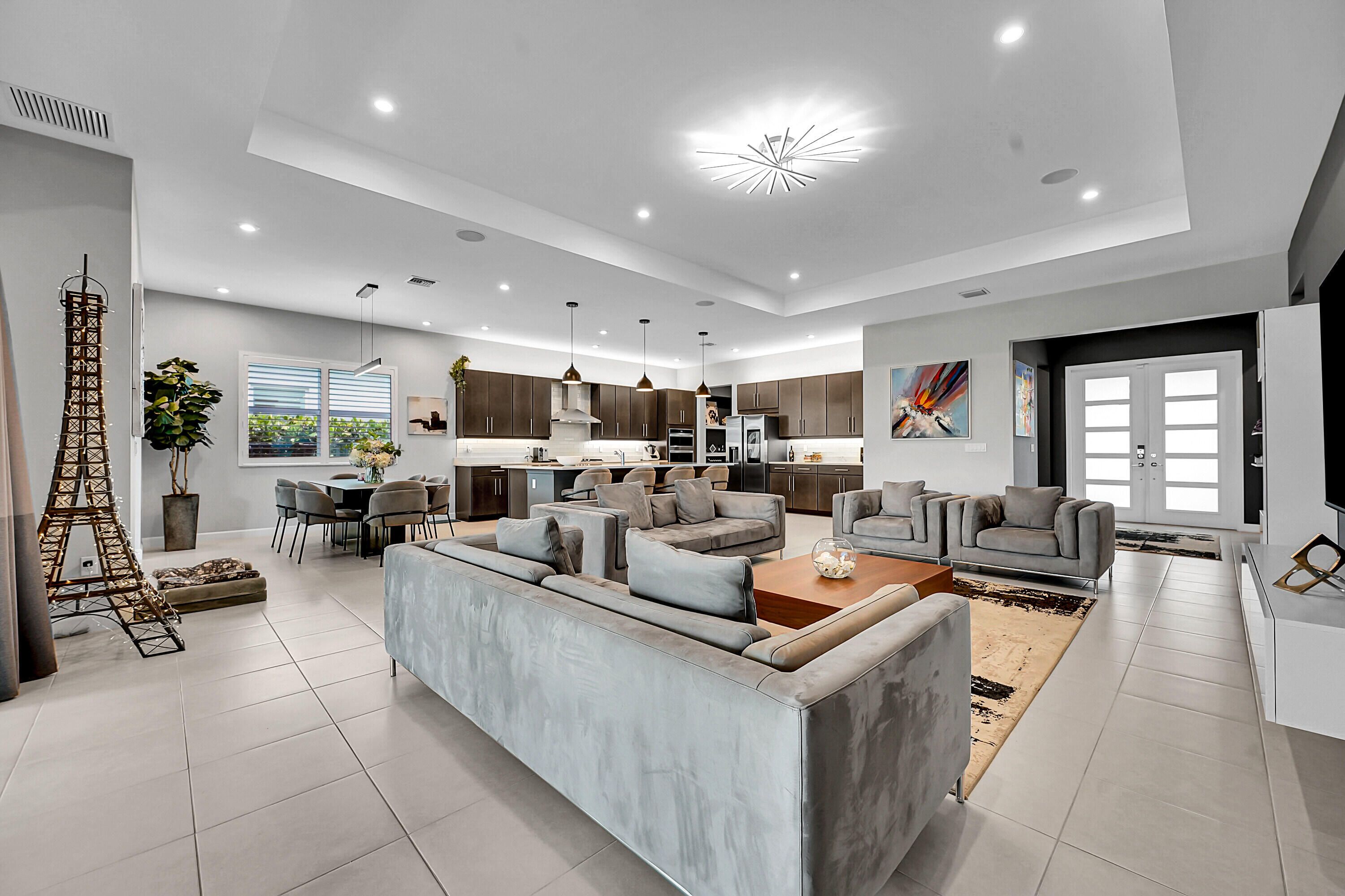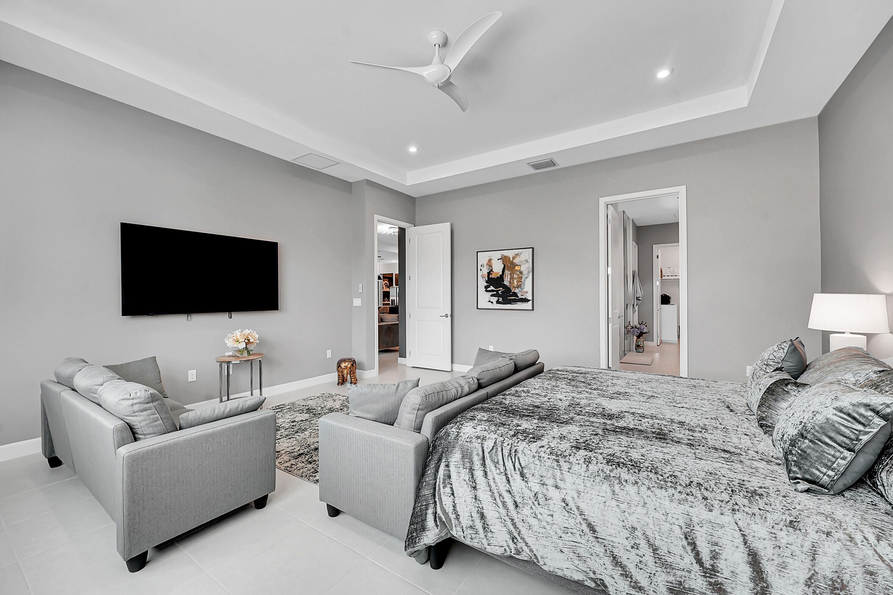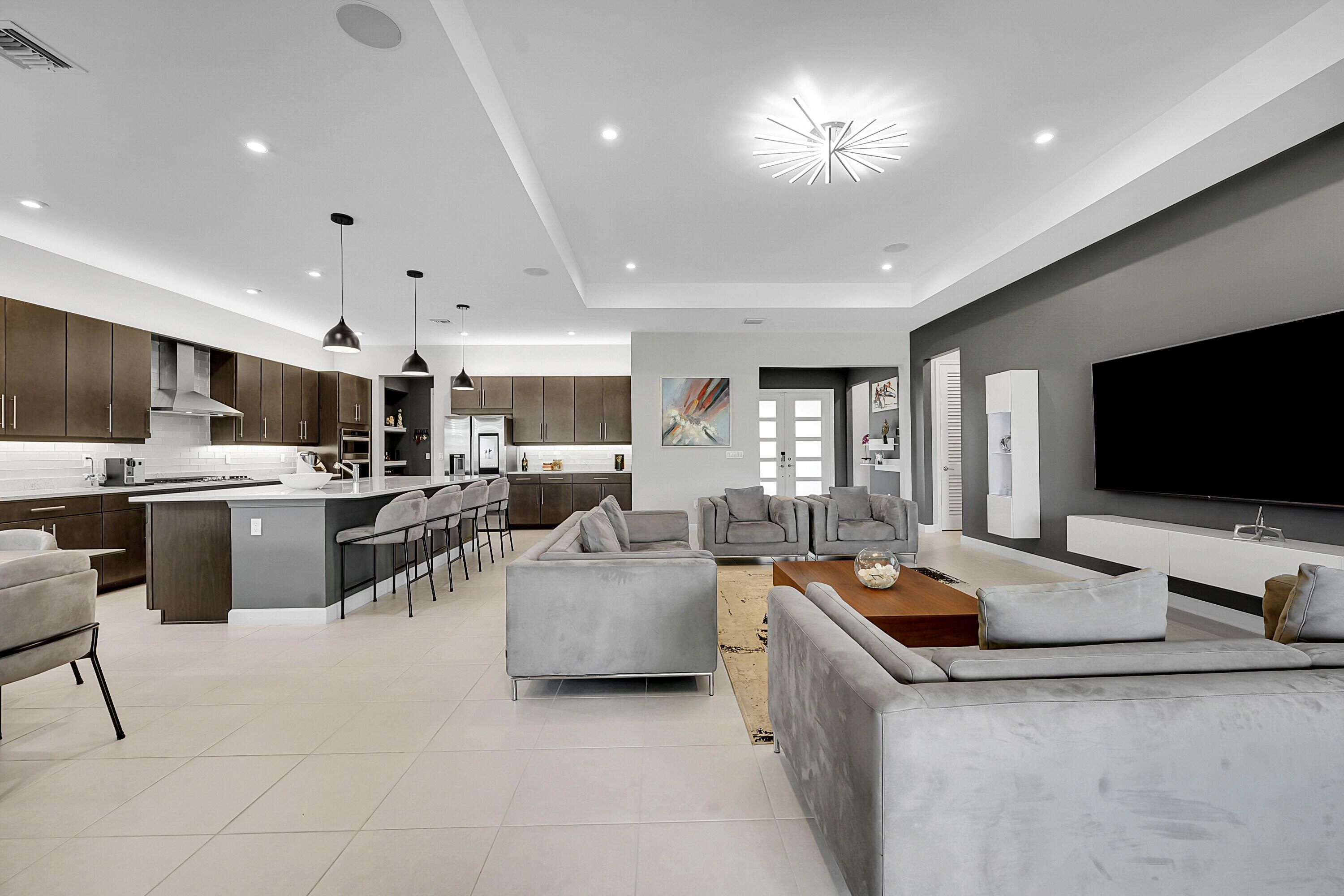 Built in 2022! Lakefront single-family home offers modern luxury living with a spacious open-concept design. Featuring impact windows with Plantation Shutters! Impact doors, a double-door entry, and a 2-car garage with resin flooring. The gourmet kitchen overlooks the family area and includes a large cooking island, upgraded wood cabinetry, a gas stove, a spacious pantry, under-cabinet LED l, lights, and a separate Custom quartz counter top wet bar with 2 wine coolers--perfect for entertaining. Fans and modern lighting with a dimmer. TV wall outlet connections. Two master suites, each with walk-in closets, and spa-like bathrooms with dual sinks. Primary bath with oversized walk-in showers with double shower heads. The primary master retreat