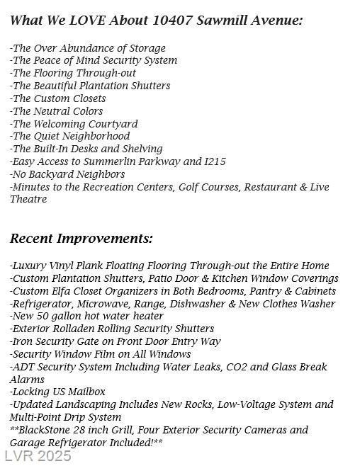 Listing courtesy of: Patricia E. LeBeau-Witty, Keller Williams MarketPlace Listing Agent Contact Information: (702) 493-6060