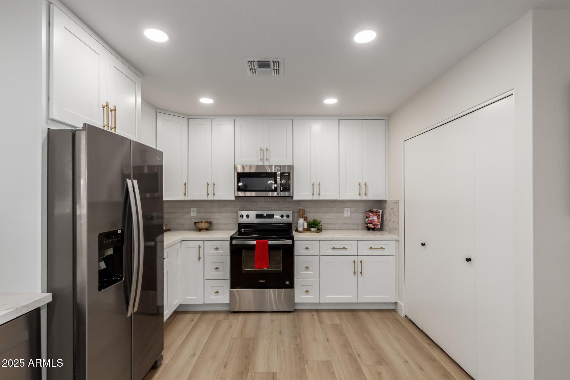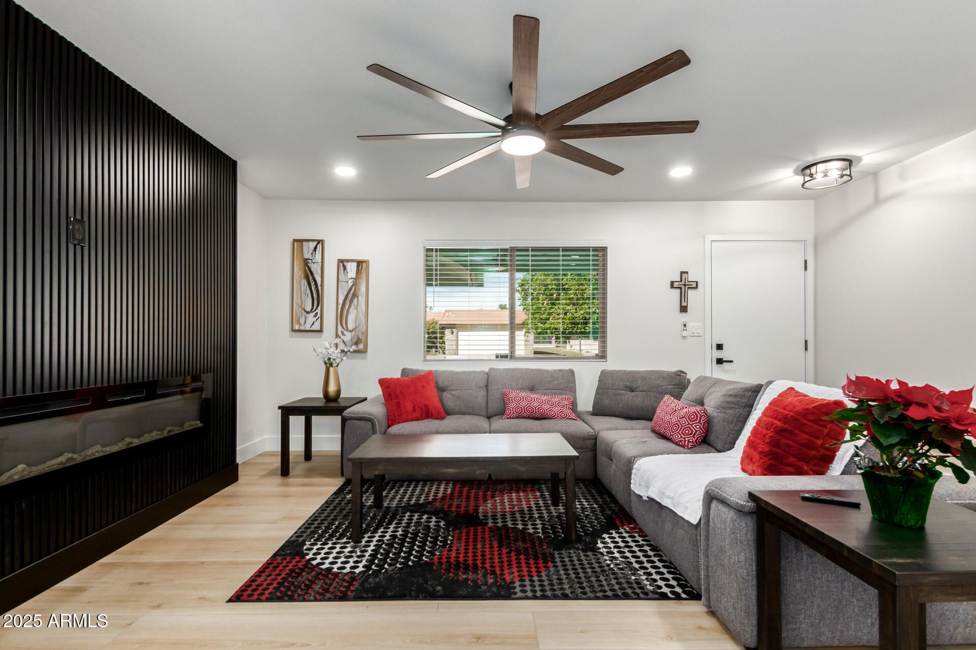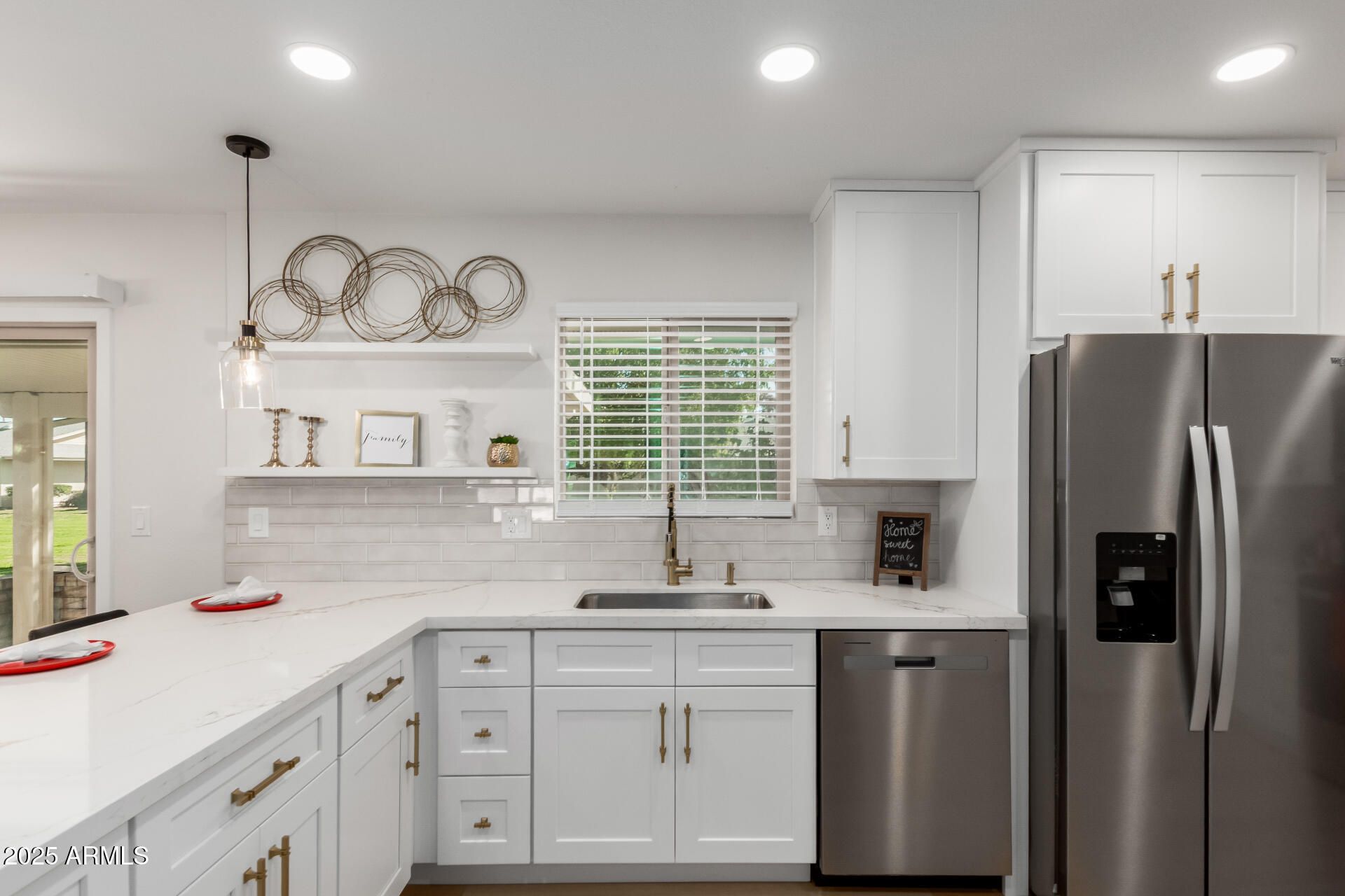 Discover this adorable 2-bedroom twin home situated in the vibrant adult community of Sun City! Explore the warm and inviting interior, showcasing wood-look flooring, recessed lighting, a fireplace to keep you cozy on chilly evenings, and stylish neutral colors. The pristine culinary space boasts white shaker cabinets, tile backsplash, quartz countertops, a pantry, and built-in appliances for a seamless cooking experience. The main suite promises a good night's sleep and offers carpet for added comfort, a closet, and a bathroom. Enjoy your morning brew under the covered patio and don't forget to visit the community's pool, spa, golf, and other amenities to fill your days with fun activities! Welcome home!