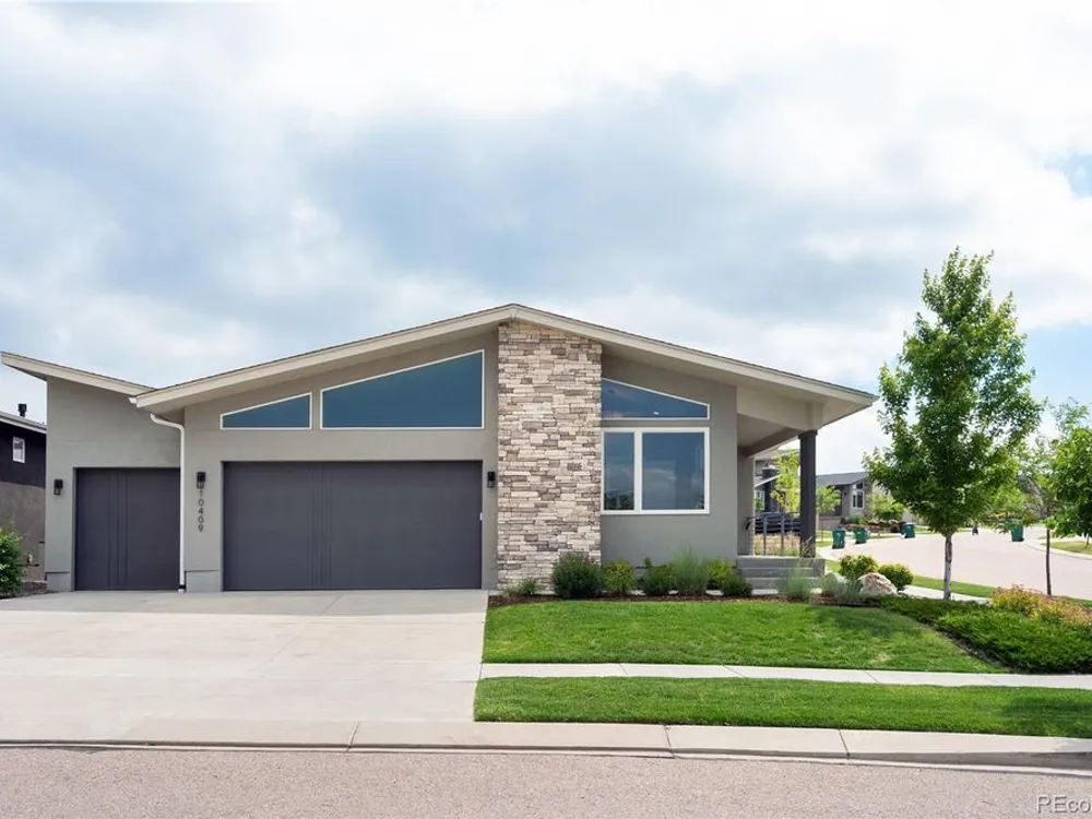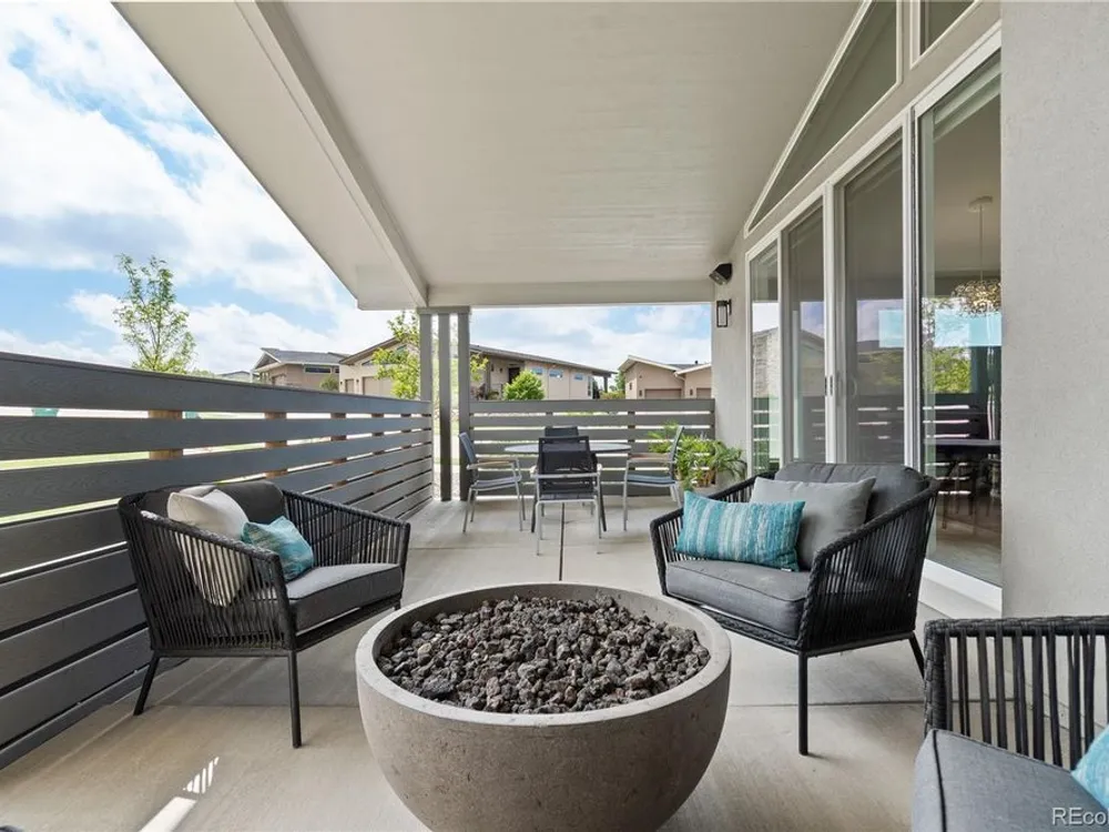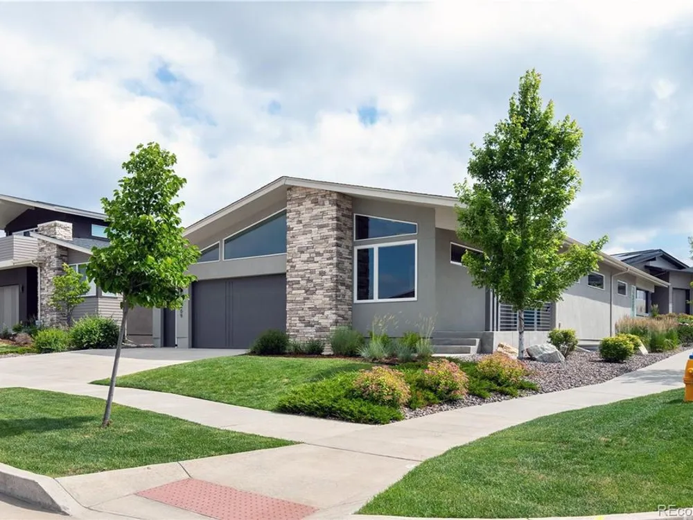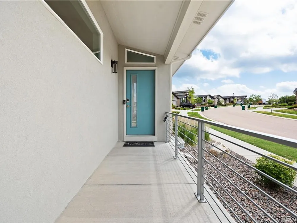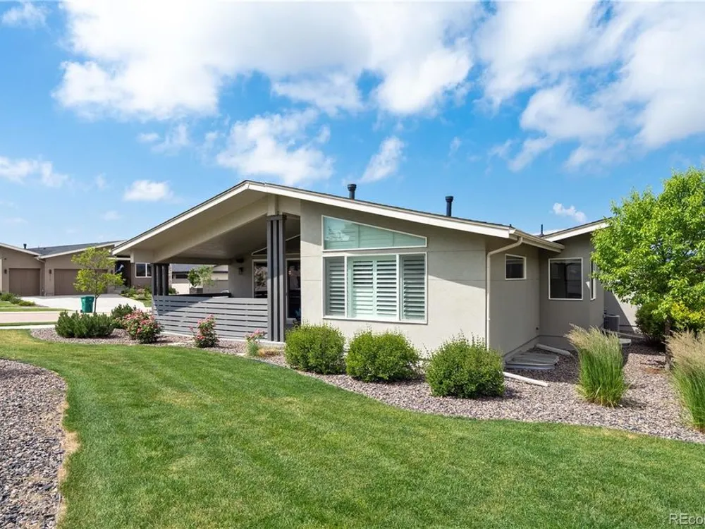 Welcome to this stunning 4-bedroom, 5-bath, 3-car garage ranch-style home in the highly sought-after Élan section of Cordera. Formerly a model and Parade of Homes showcase, this mid-century modern gem is filled with high-end designer upgrades and custom finishes throughout—including custom window treatments throughout the home. Step inside to an open-concept floorplan that seamlessly connects the kitchen, living, and dining areas—perfect for both daily living and entertaining. The great room features a dramatic 12-foot brick fireplace wall, while the entry makes a statement with a custom wood accent wall. The gourmet kitchen impresses with quartz countertops, a striking herringbone backsplash, upgraded appliances, and a unique display cabinet on the island. The main level includes a luxurious primary suite with an upgraded bathroom, a second bedroom with its own ensuite full bath, a stylish powder bath for guests, and a conveniently located laundry room. The fully finished lower level is designed for versatility and comfort, offering a spacious family room with a gas fireplace, wet bar, a yoga room with a mirrored wall, an additional bedroom, two more bathrooms, and an oversized storage room—ideal for a future bedroom, home theater, or fitness studio. Step outside to enjoy the expansive covered concrete patio, complete with a gas line for a firepit, ambient lighting, outdoor speakers, and a privacy wall—an ideal space for relaxing or entertaining. Take in beautiful Front Range views from the front porch, and enjoy the convenience of a 3-car garage with professionally coated floors for easy cleaning and durability. Located close to top-rated schools, shopping, restaurants, hospitals, and Powers Boulevard, this low-maintenance community includes lawn care, irrigation system maintenance, and snow removal—perfect for those who travel often or prefer easy living. All furniture in the home is available for purchase, making this an exceptional turnkey opportunity.