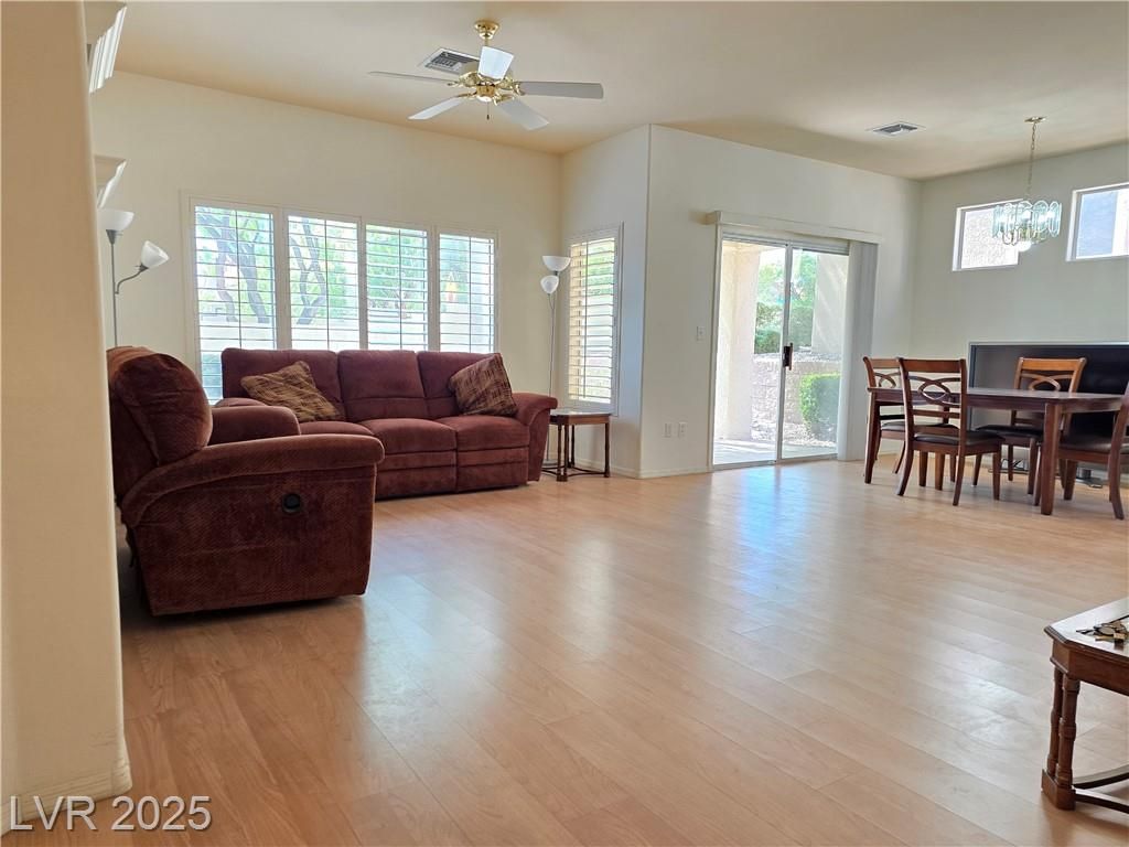 Welcome to your new home in the highly sought-after Del Webb Sun City Summerlin community! This desirable Warwick model is move-in ready and offers 2 bedrooms, 2 full bathrooms, and a bright open floor plan filled with natural light. The kitchen features ample cabinet space, a pantry, and easy access to the dining area, making it perfect for both everyday living and entertaining. Plantation shutters throughout add a touch of charm, while the spacious living room provides comfort and flexibility. The primary suite includes dual sinks and a walk-in shower, while the second bedroom and bath are ideal for guests or a home office. Enjoy maintenance-free (HOA Maintained) landscaping, a covered patio, and the convenience of built-in garage storage and golf cart space. Sun City Summerlin residents enjoy world-class amenities including golf, fitness centers, pools, tennis, and countless clubs and activities. Don’t miss your chance to live in one of Las Vegas’s premier 55+ communities!