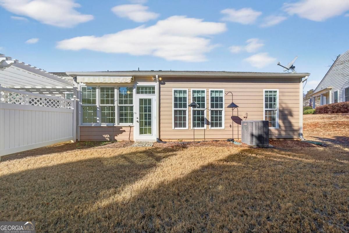 Welcome to effortless living in the highly sought-after Lock & Leave section of Del Webb Lake Oconee. This beautifully maintained Muirfield Villa offers the perfect blend of comfort, style, and low-maintenance convenience in one of the community's most desirable settings. Situated on a professionally landscaped lot with a private backyard shaded by mature trees, this home provides a peaceful outdoor retreat ideal for relaxing mornings or casual entertaining. Inside, you'll find a bright open-concept floor plan designed for easy everyday living. A dedicated office at the front of the home offers the perfect space for hobbies, reading, or working from home. Brand-new luxury vinyl plank flooring flows seamlessly throughout the entire home, complemented by modern lighting fixtures. The kitchen features upgraded quartz countertops, stainless steel appliances, and opens beautifully into the living and dining areas, creating an inviting space for gathering. Just off the kitchen, the sunroom is a true standout feature-filled with natural light and offering serene views of the private backyard. Both bathrooms have been thoughtfully renovated, including new countertops and a new shower insert in the guest bath. The spacious primary suite boasts an upgraded seamless shower in the en suite bath, delivering a fresh, modern feel. Additional highlights include a two-car garage with added attic storage for extra convenience. Villa fees cover roof and exterior maintenance (including gutter cleaning), irrigation system and water, exterior insurance, and a termite bond with regular inspections-providing true lock-and-leave peace of mind. Residents of Del Webb Lake Oconee enjoy an active adult lifestyle with exceptional amenities including lake access, boat storage, a full fitness center, indoor and outdoor swimming pools, tennis, pickleball, walking trails, and a vibrant social calendar. If you've been searching for low-maintenance living without sacrificing style or community, 1041 Flat Rock Street is ready to welcome you home.