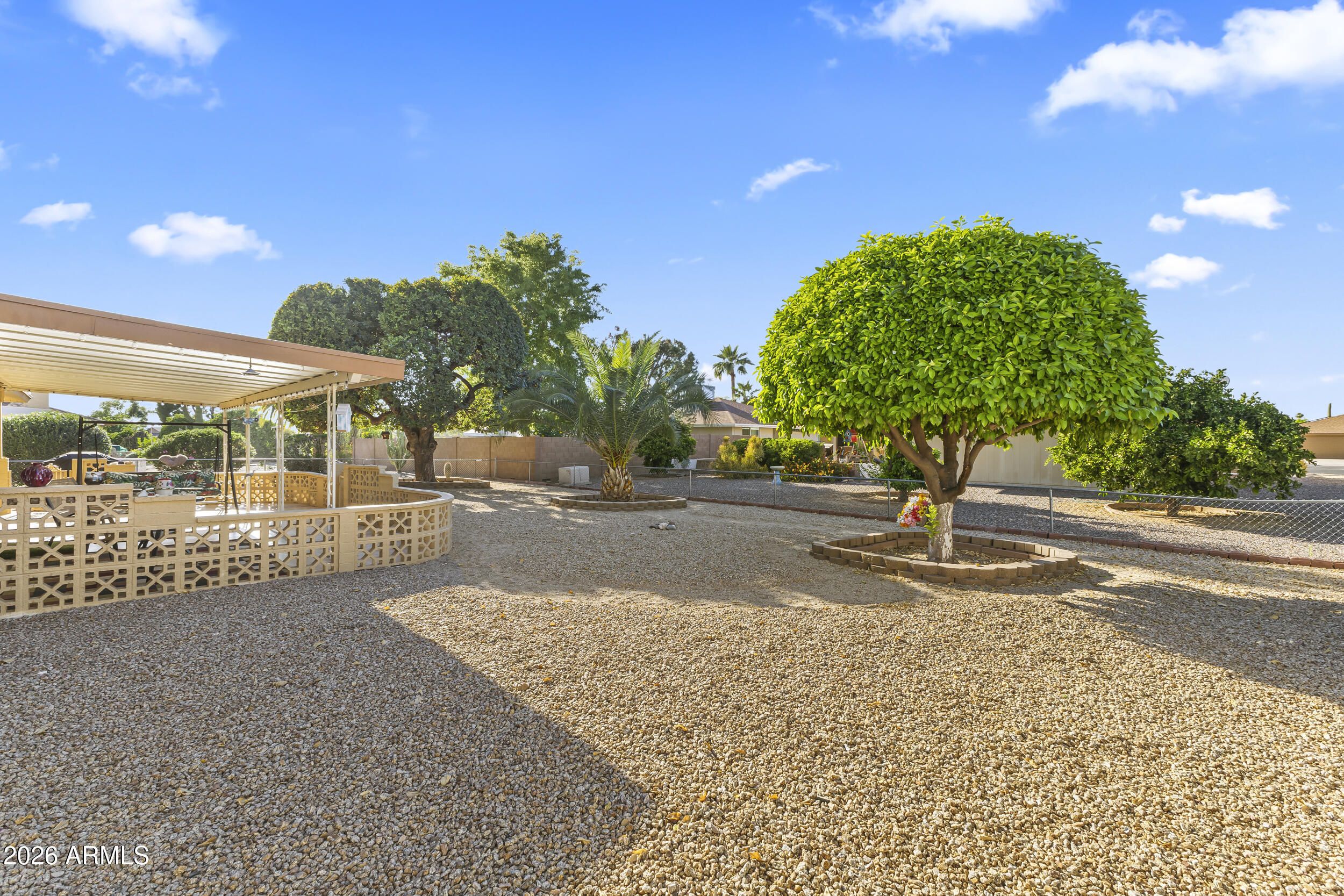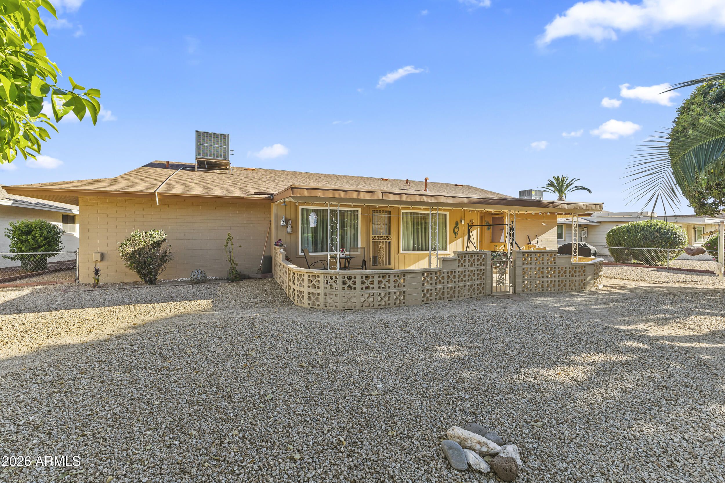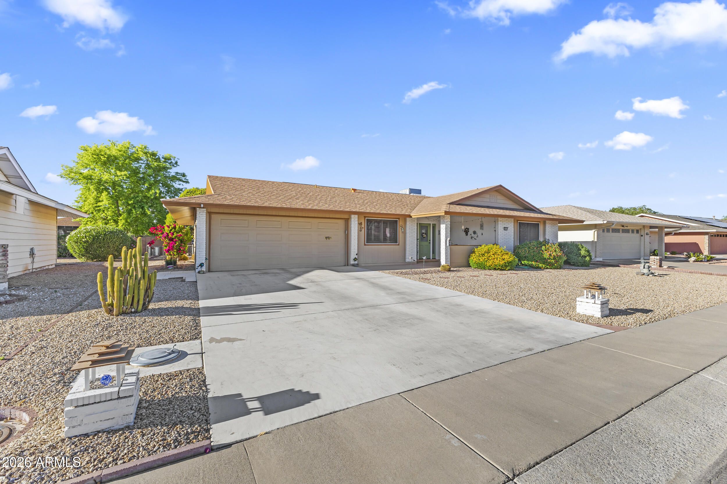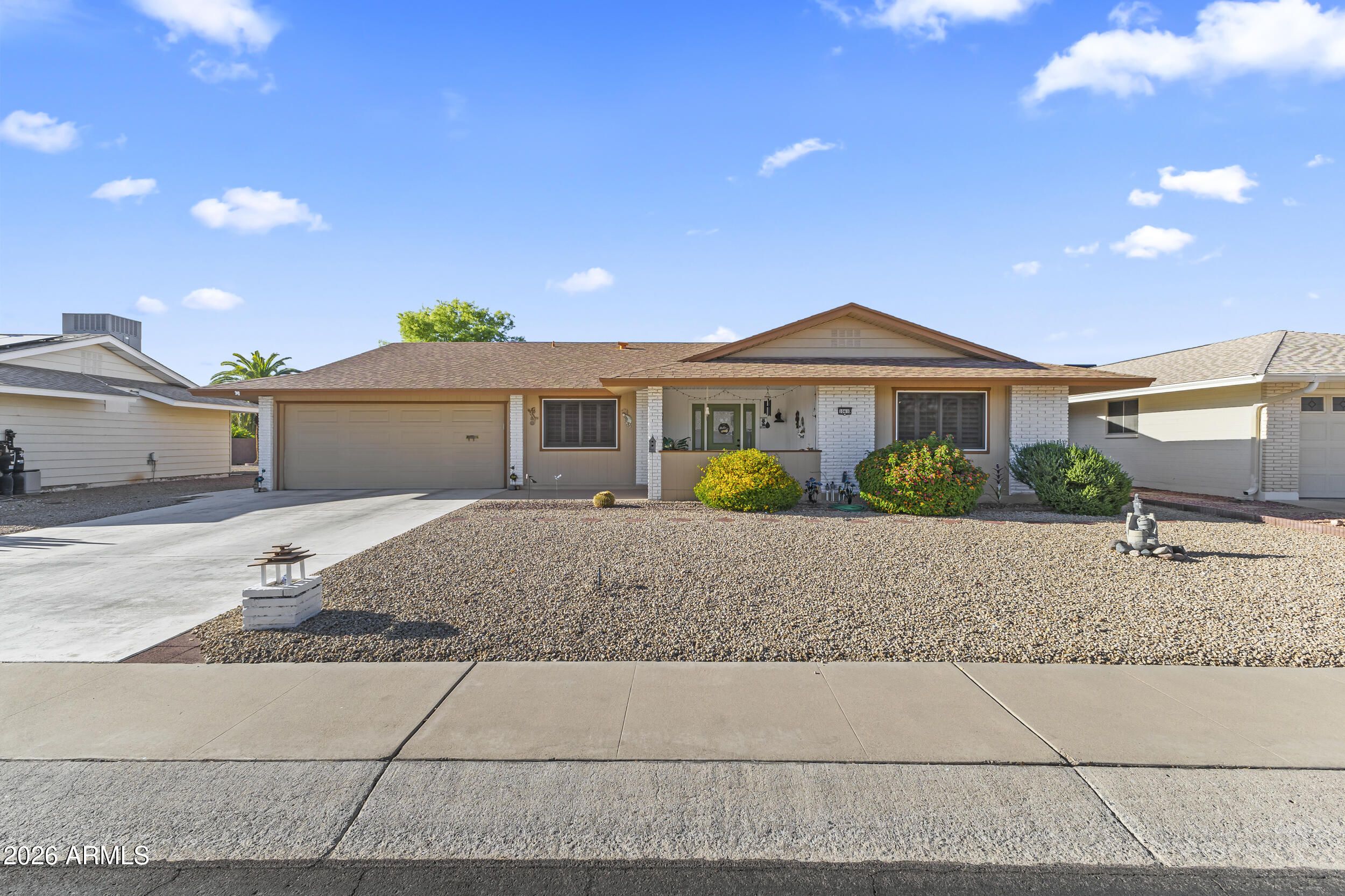 EXPANDED Coconino floor plan with Extensive UPDATES! This beautifully updated 2-Bedroom, 2-Bath, 2-Car Garage home features GRANITE countertops in the Kitchen, LVP and Tile flooring, Dual-Pane windows, updated Baseboards, and remodeled Primary shower and vanities. Additional upgrades include Sun Screens, Shutters, popcorn ceiling removal, updated Front Door, garage door opener, Fresh paint, and a Fully fenced yard--plus so much more! Located in the sought-after 55+ Active Adult Community of Sun City, residents enjoy access to Pickleball, Golf, Bowling, 7 Recreation Centers, and a wide variety of Amenities and Activities. Don't miss the opportunity to see this CHARMING home--see this CUTE home today!