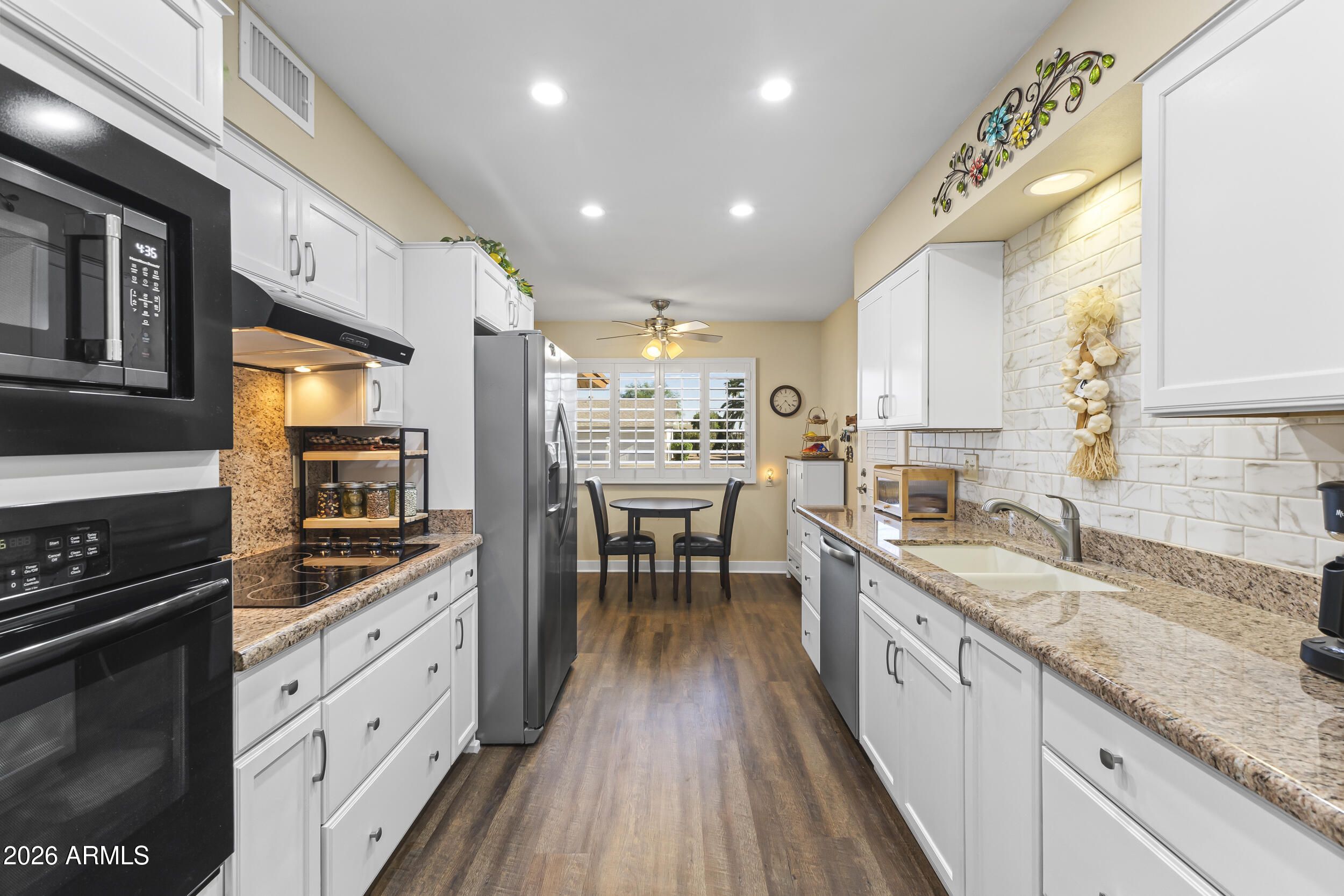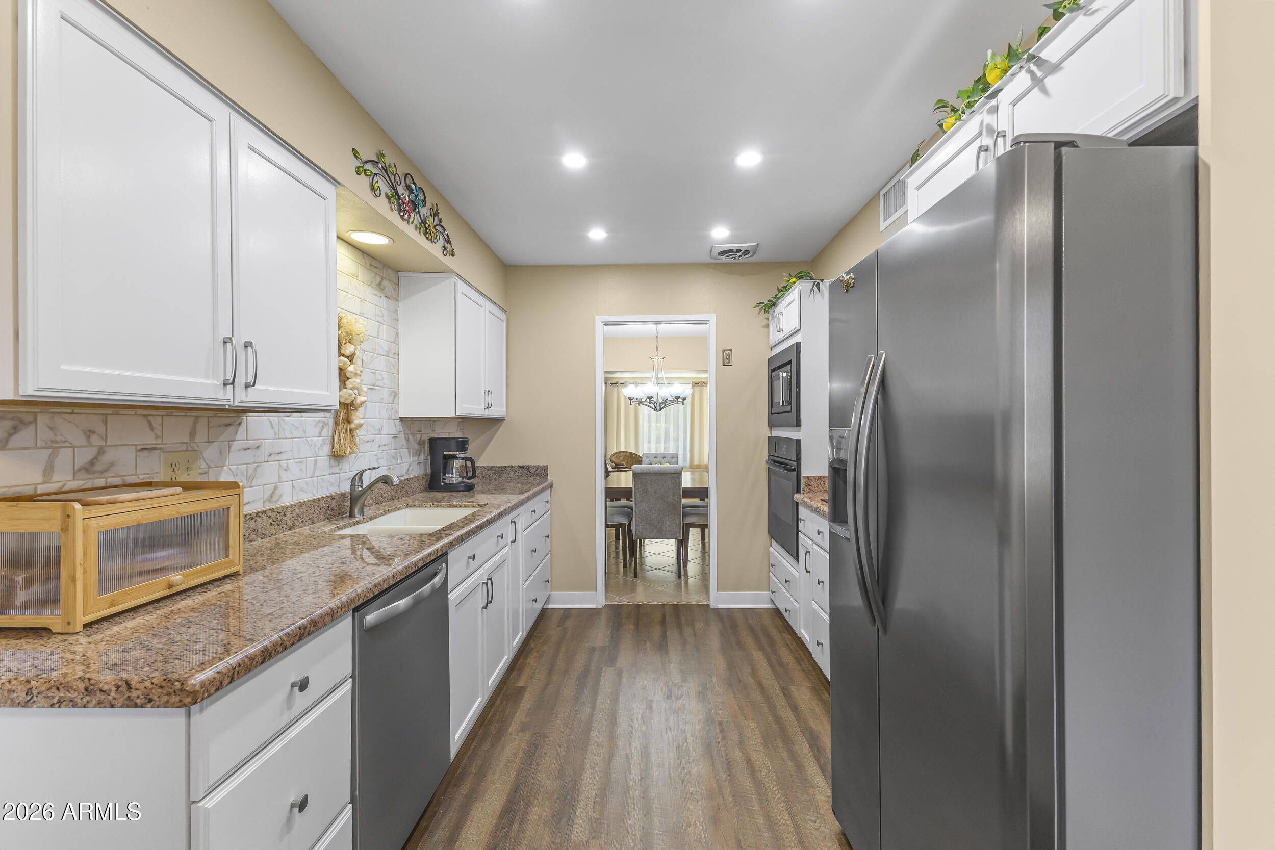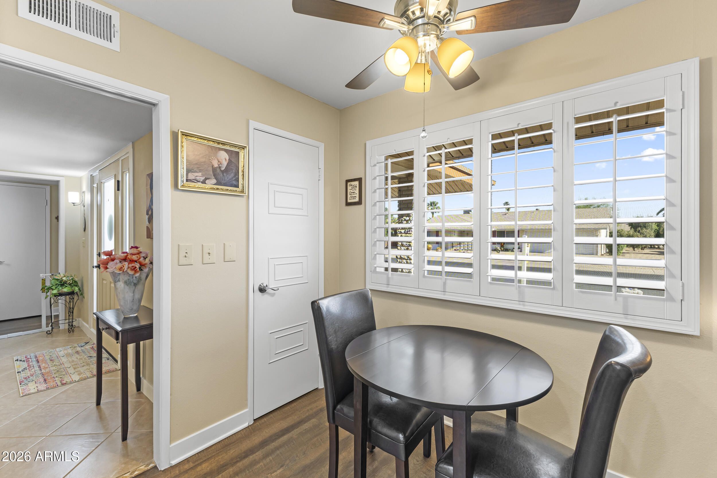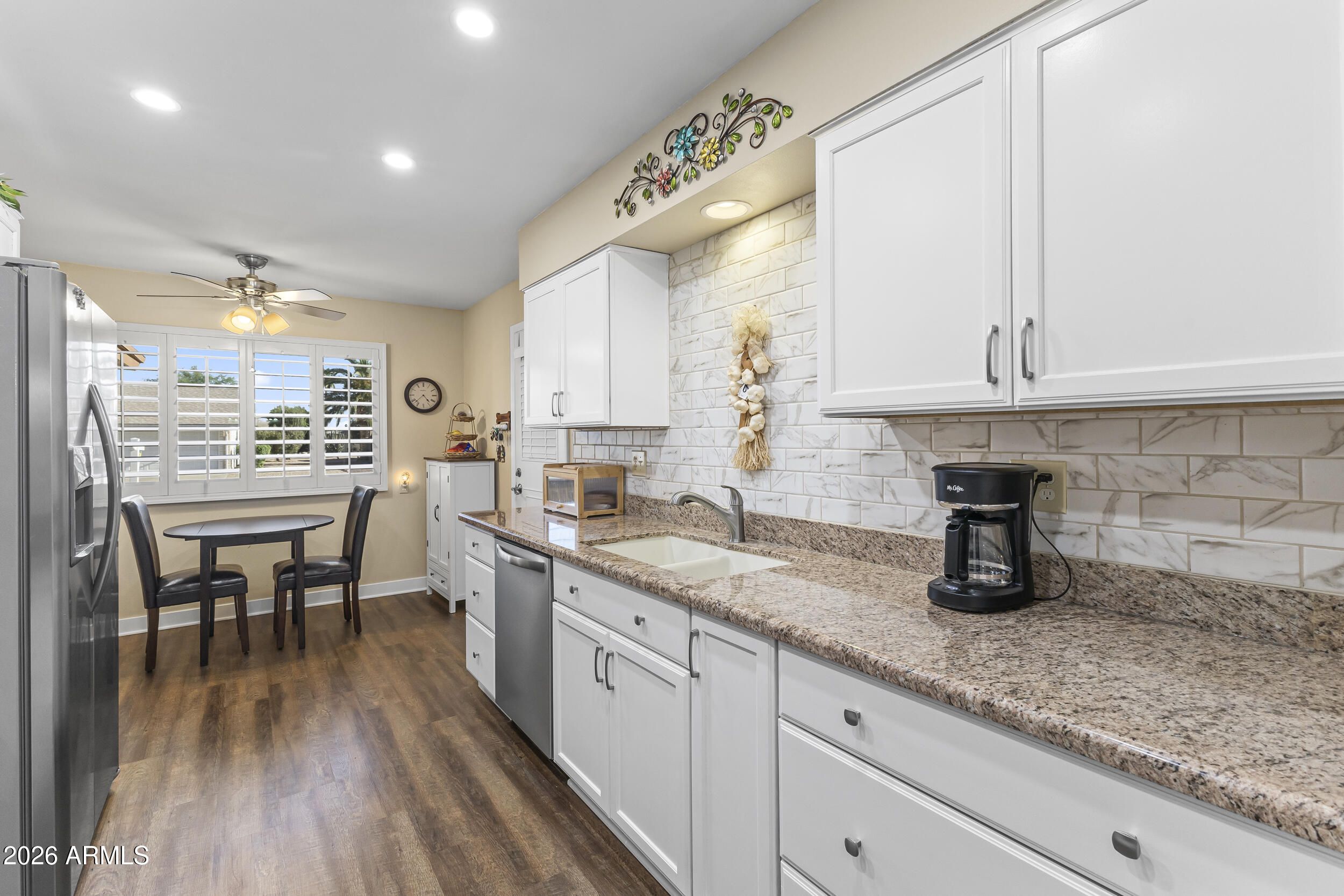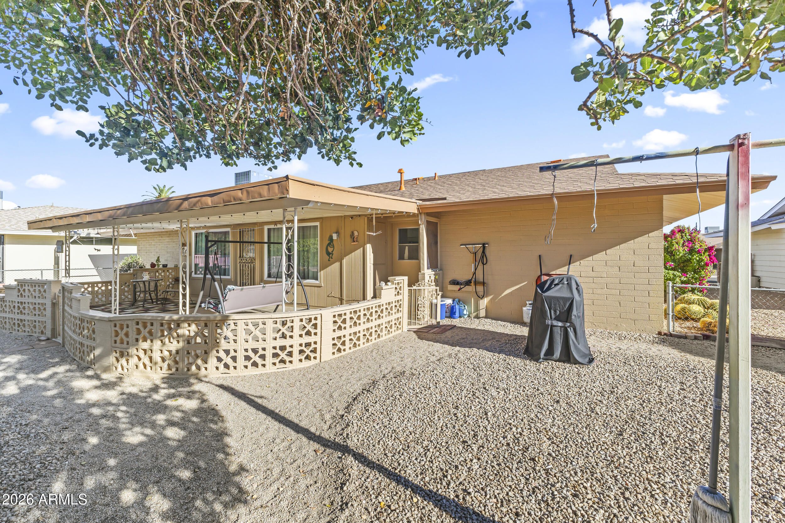 EXPANDED Coconino floor plan with Extensive UPDATES! This beautifully updated 2-Bedroom, 2-Bath, 2-Car Garage home features GRANITE countertops in the Kitchen, LVP and Tile flooring, Dual-Pane windows, updated Baseboards, and remodeled Primary shower and vanities. Additional upgrades include Sun Screens, Shutters, popcorn ceiling removal, updated Front Door, garage door opener, Fresh paint, and a Fully fenced yard--plus so much more! Located in the sought-after 55+ Active Adult Community of Sun City, residents enjoy access to Pickleball, Golf, Bowling, 7 Recreation Centers, and a wide variety of Amenities and Activities. Don't miss the opportunity to see this CHARMING home--see this CUTE home today!