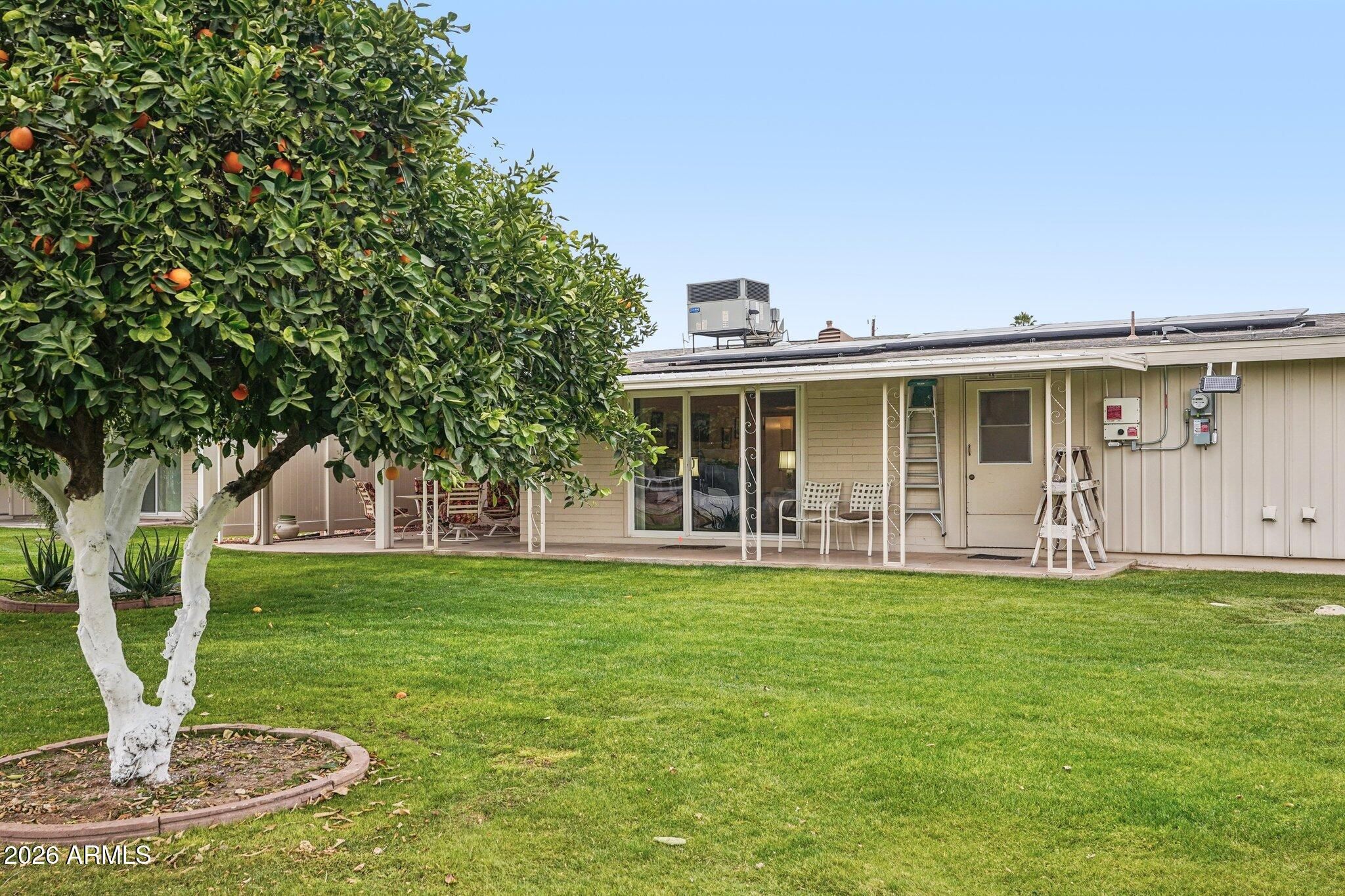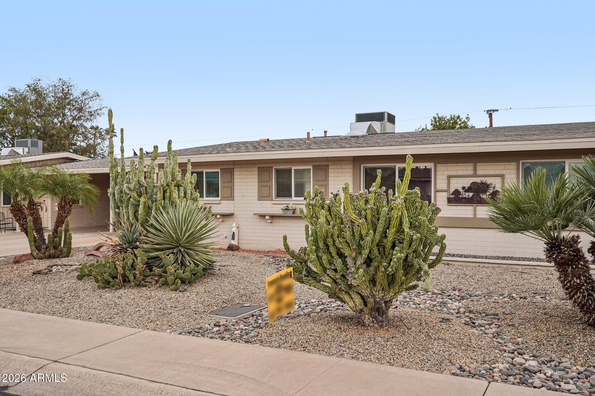 Imagine mornings on your private patio overlooking a lush greenbelt with lemon and orange trees, and evenings enjoying Arizona sunsets with friends and family. This Gemini Twin offers includes PAID SOLAR, helping you enjoy comfort with energy savings. Inside, the 2 bedroom, 2 bath layout has an open living area, new toilets and fresh carpet in the bedrooms. The laundry area offers flexibility - abundant storage, a workshop area, or a hobby space. Major improvements for added peace of mind, including a newer HVAC system (2020), new electrical panel, and a new sewer line. Even better, roof repair and maintenance are covered by the HOA, giving you one less thing to worry about. Greenbelt views, fruit trees, energy efficiency, thoughtful updates AND in Sun City with all it has to offer!