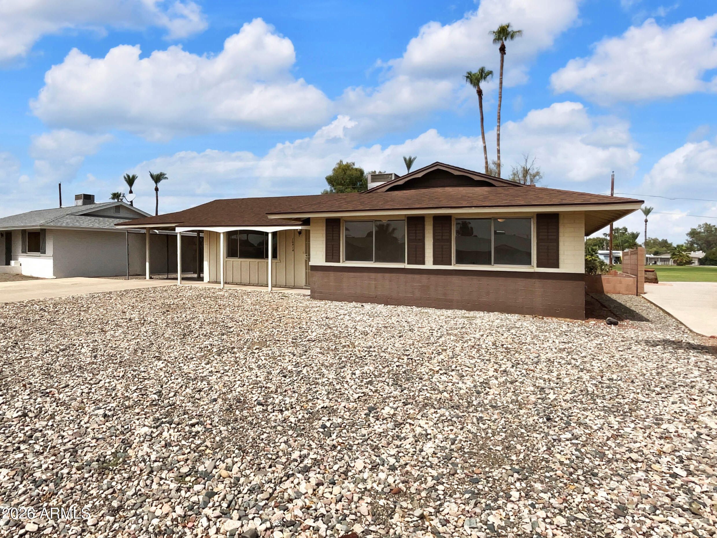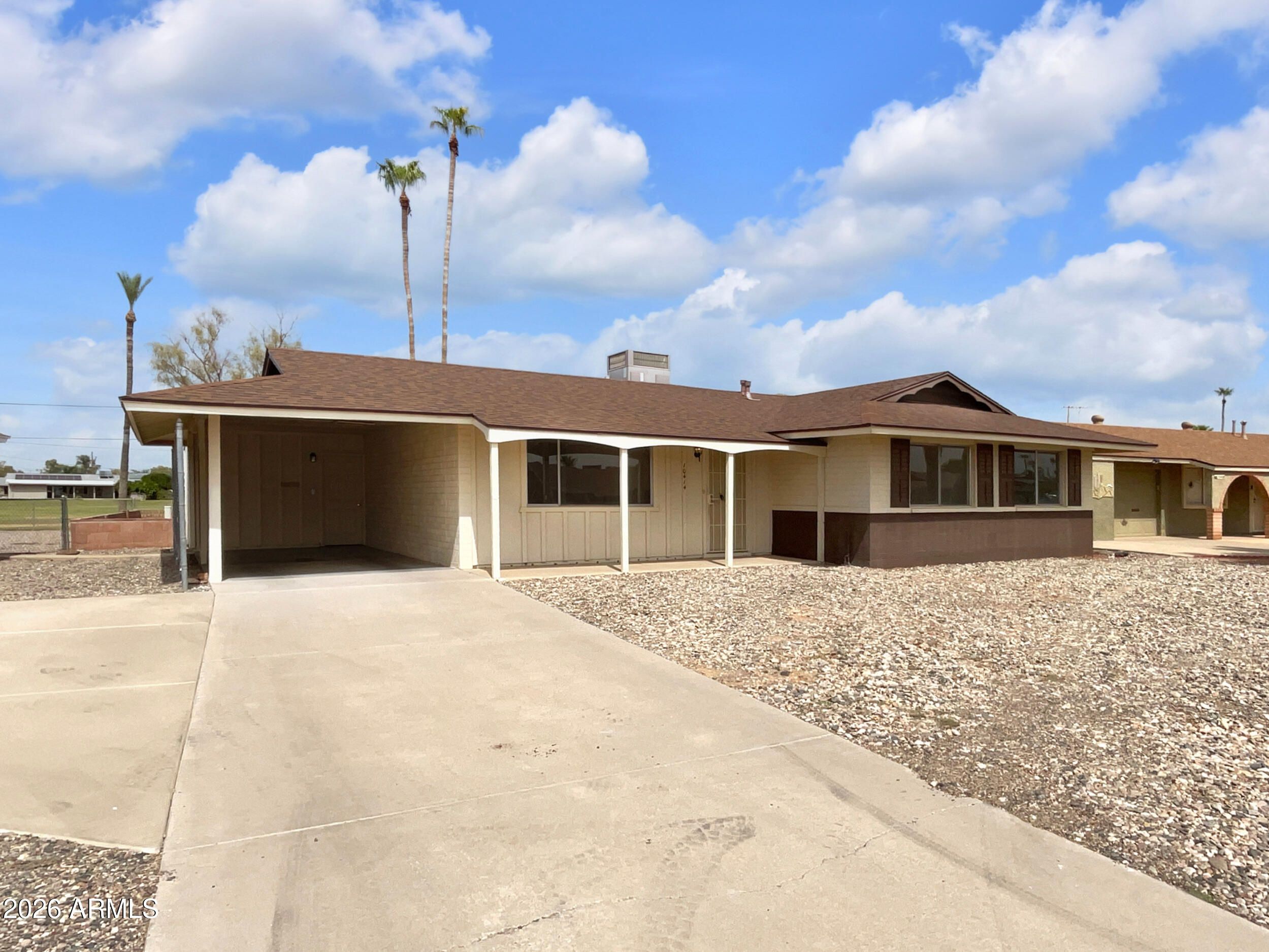 Sun City golf course lot recently updated! Welcome to this 55+ community home, boasting a neutral color paint scheme that enhances its fresh interior paint. The kitchen is a chef's dream, equipped with all stainless steel appliances and new cabinets. The exterior of the home is just as impressive, featuring low maintenance landscaping that adds to its curb appeal. Enjoy outdoor living with a patio, the fenced in backyard provides privacy and security. perfect for entertaining or simply relaxing while enjoying the golf course. This property is a must-see for those seeking a turn-key home. 100-Day Home Warranty with buyer activation