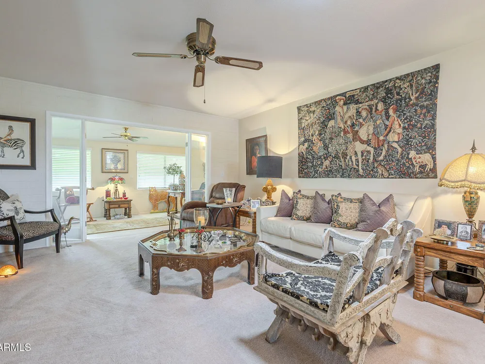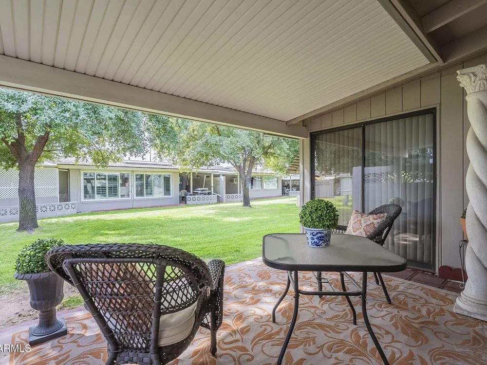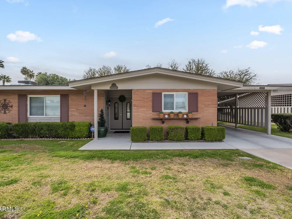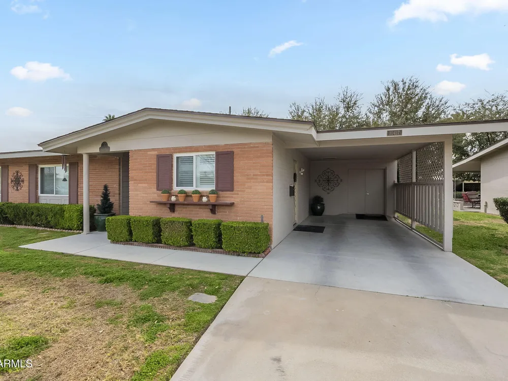 Tucked away in a peaceful corner of the community, this beautifully maintained end-unit home offers the perfect blend of privacy, comfort, and modern convenience. Step inside to find a freshly painted interior with steam-cleaned floors throughout — move-in ready and waiting for you! The updated kitchen (2022) is bright and functional, ideal for both casual meals and entertaining. Recent upgrades give you peace of mind, including a sewer line replaced in 2022 (with a 20-year warranty), roof replaced in 2019 (HOA responsibility), and a new AC system installed in 2019. Enjoy serene views of lush greenbelt spaces both front and back, providing a natural extension of your living area. The carport may be converted to a garage with HOA approval, offering flexibility to suit your needs. Located in the heart of Sun City, AZ, this home includes access to the community's world-class recreation centers, golf courses, swimming pools, fitness facilities, and endless social clubs all part of the Sun City lifestyle that residents love. With its combination of privacy, thoughtful updates, and community amenities, this charming home is a true gem easy to love, and even easier to live in!